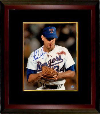 When the New York Mets scout first laid eyes on high school sophomore pitcher Nolan Ryan, he wrote in his report, "has the best arm I've seen in my life." After 27 seasons of major league baseball, Hall of Famer Nolan Ryan never let up. He set 53 major league records including seven no-hitters and 5,714 strikeouts, numbers that only begin to describe the illustrious career of one of baseball's best pitchers. The "Ryan Express" has hand signed this Texas Rangers Famous Bloody Lip Fight 16x20 Photo. Steiner Sports Hologram and Certificate of Authenticity. Custom Black Mat and Premium Mahogany Frame as shown.
