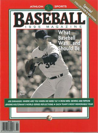 This is an Athlon Sports 1995 MLB Baseball Magazine with Texas Rangers Hall of Fame Great Nolan Ryan on the cover. This Special Collector's Edition has history and great moments throughout baseball. "What Baseball Was... and Should Be"