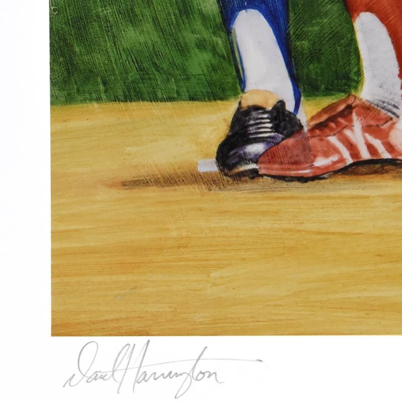 "Nolan Ryan" is a limited edition lithograph on paper by David Harrington, numbered and hand signed by the artist. Includes Letter of Authenticity. Measures approx. 37" x 24.5" (border), 31" x 21" (image).