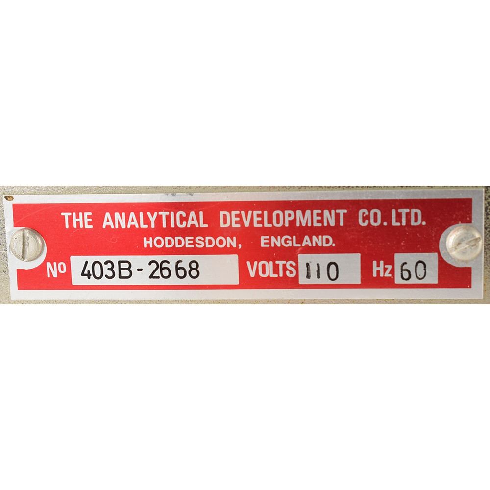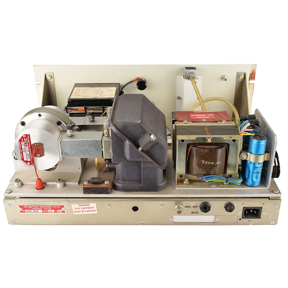 Rack-mountable non-dispersive infrared carbon monoxide sensor manufactured by P. K. Morgan Ltd of Chatham, Kent, England, measuring 19Àù x 7Àù x 13Àù, with the front panel featuring a sample inlet, air gauge tube, digital carbon monoxide readout, and knobs for "Span," "Zero," and "Flow." In very good to fine condition.