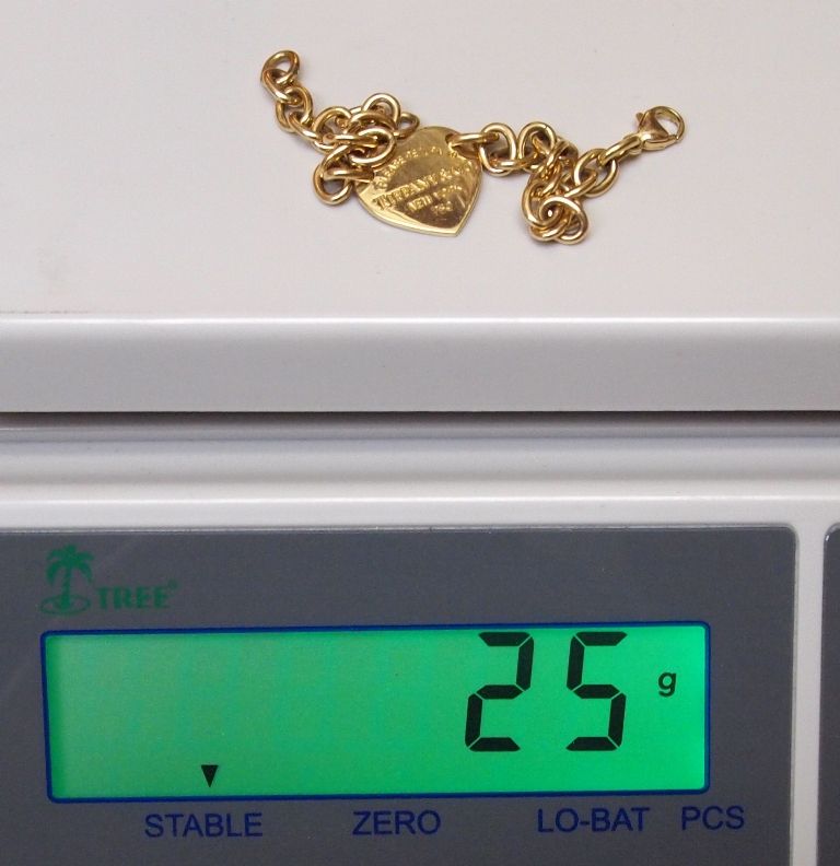 Non-Native 18k Gold 750 Heart Link Bracelet - Tiffany & Co. - 7.5" 24.7g