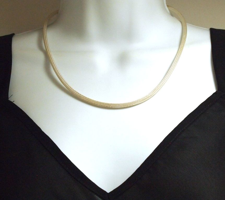 Measures 19" around by 3/16" wide. Comes with an anti-tarnish coating.
