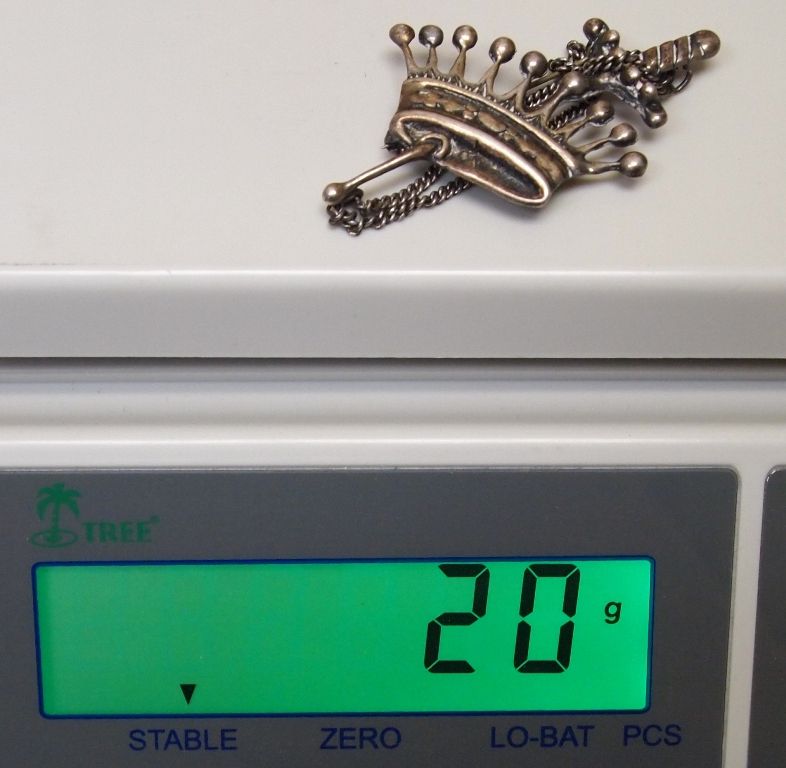 Non-Native Pawn Sterling Silver Crown & Sword Pin with Chain - Rohner