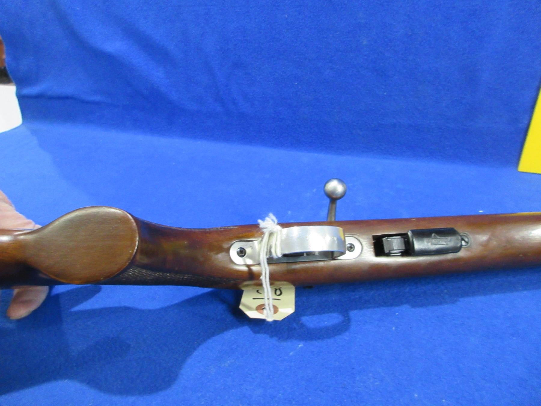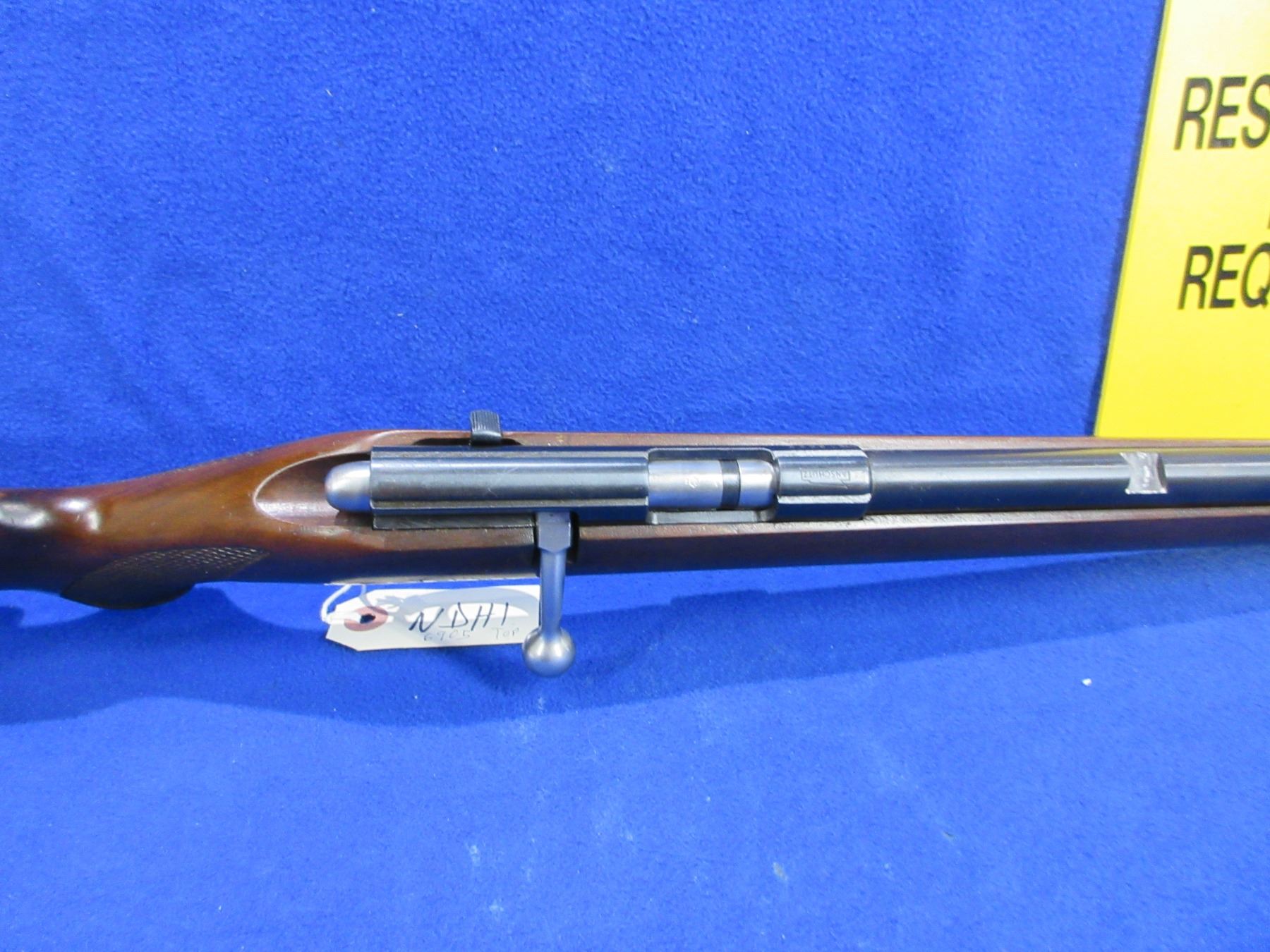 Non-Restricted - Anschutz Model 1400 in 22 LR - This bolt action rifle with removable magazine appears to be in good to very good working order. Barrel is 21 3/4", rifling is very good, bluing is good to very good, has no sights but has integral rail, stock is good to very good with usage marks, butt plate good. Ser #915992