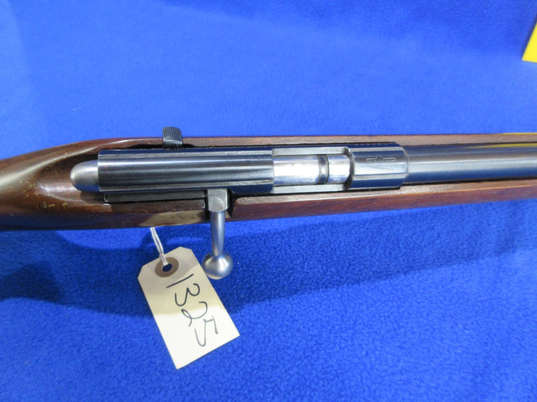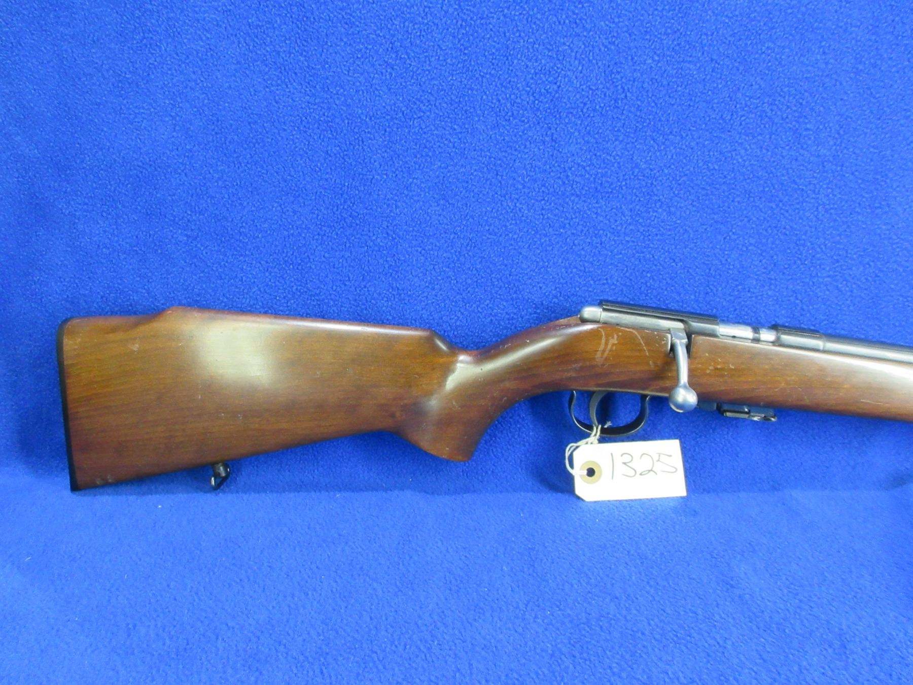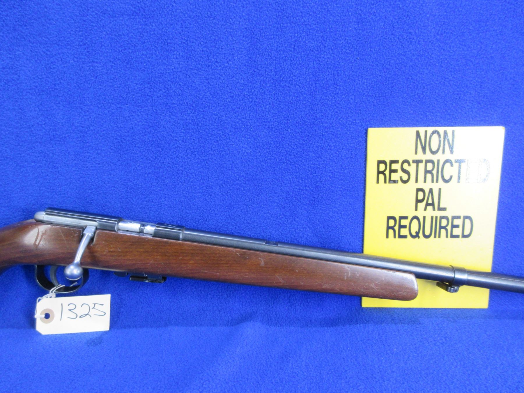 Non-Restricted - Anschutz Model 1400 in 22 LR - Made in West Germany, this is a bolt action rifle with removable magazine, action appears to be in good to very good working order. Barrel is 21 3/4", rifling is good to very good, bluing is good with some very light pitting, has front sight, rear sight missing but has integral rail, stock is good with usage marks, length of pull is 13 1/4", butt plate good, comes with swivels. Ser #757958