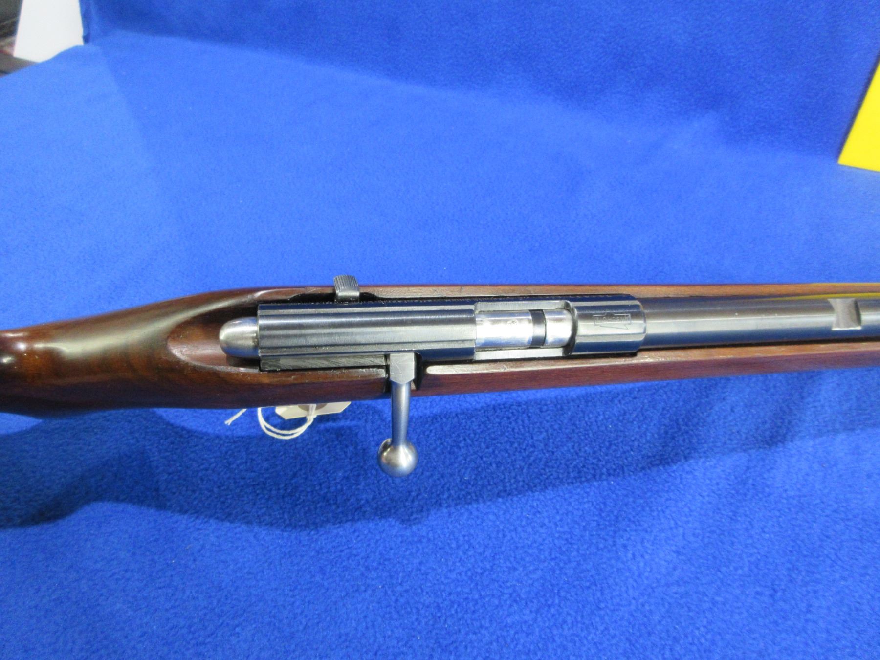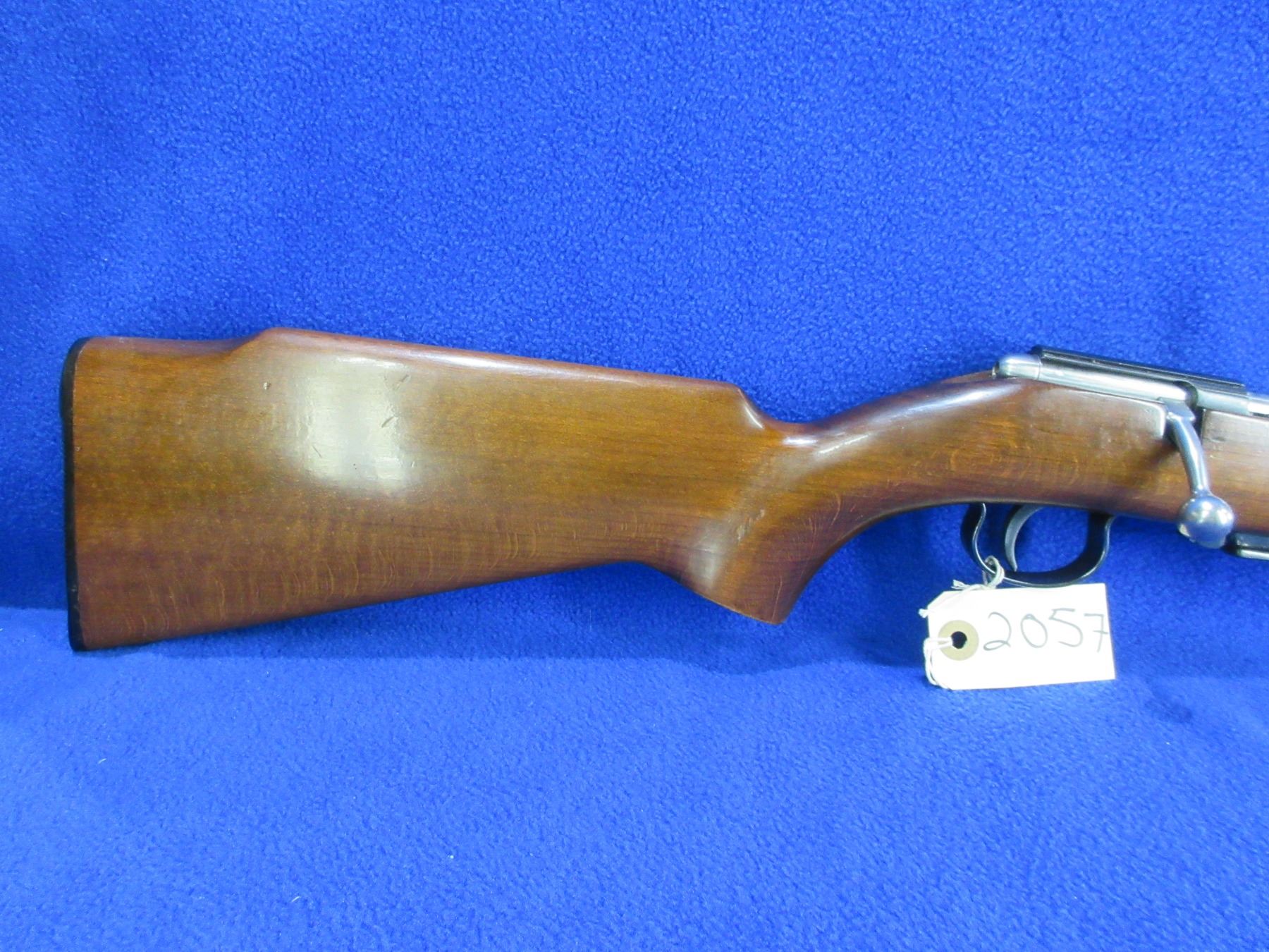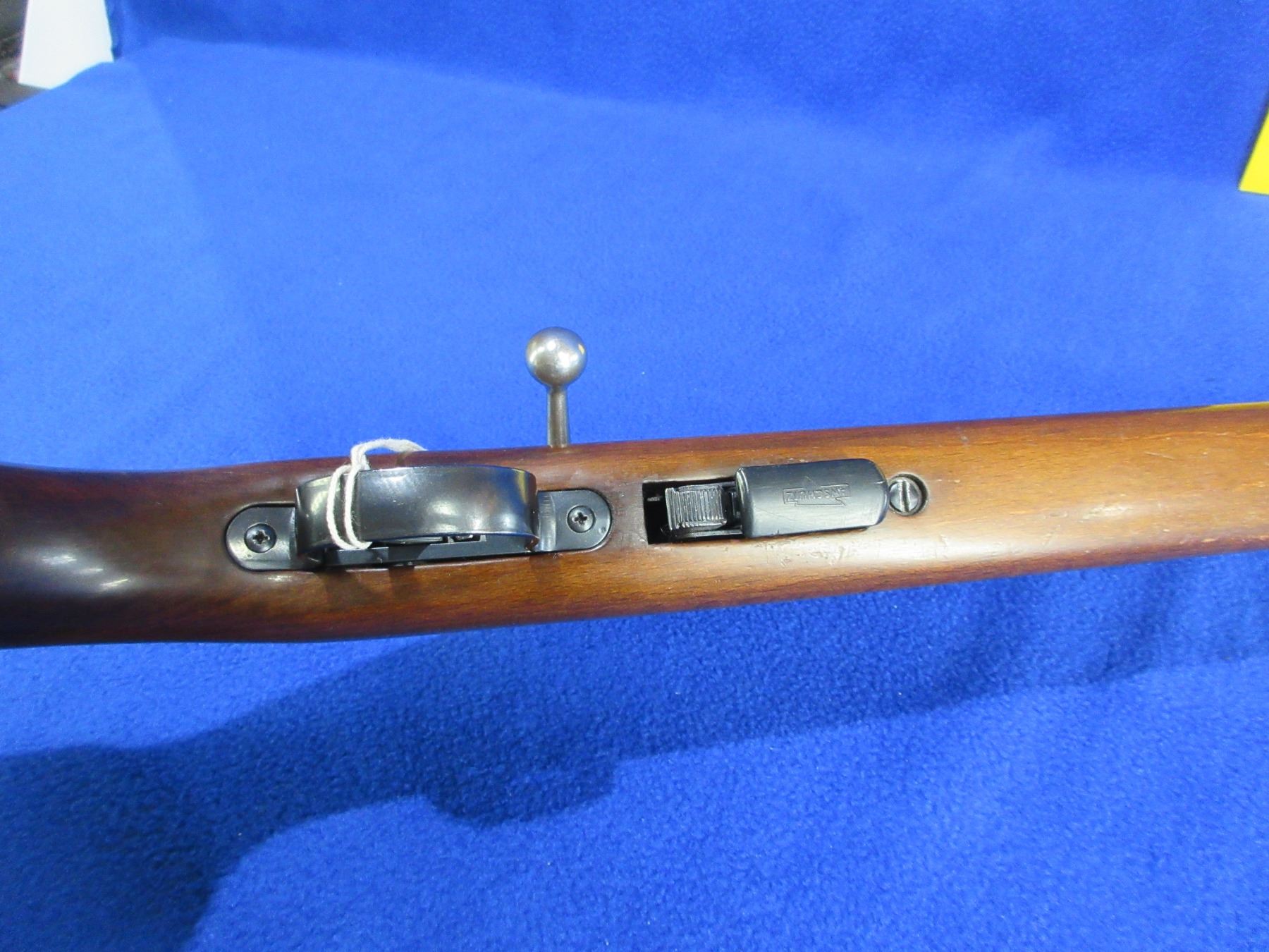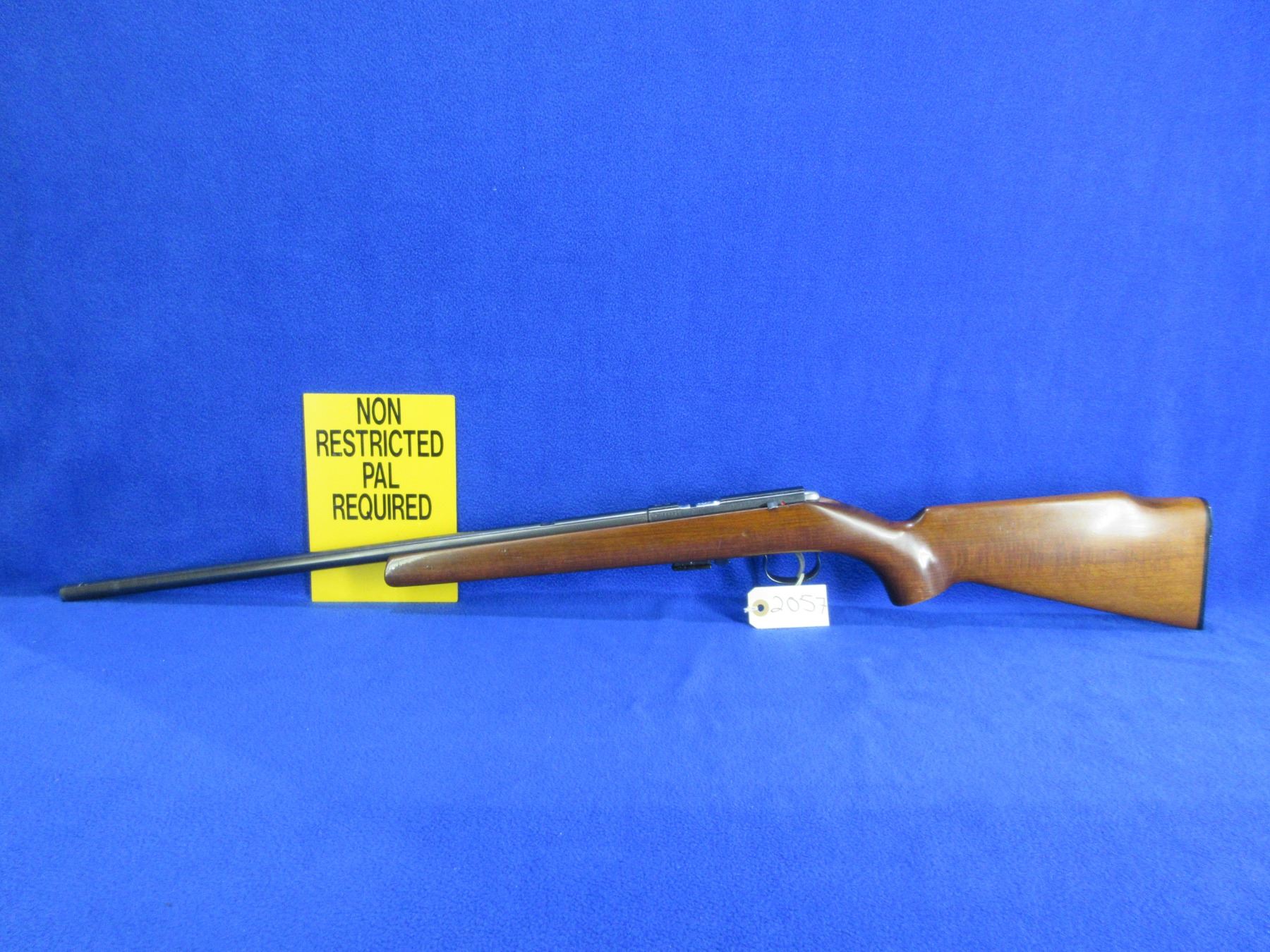 Non-Restricted - Anschutz Model 1400 in 22 LR - This is a bolt action rifle with removable magazine, action appears to be in good to very good working order. Barrel is 21 3/4", rifling is good to very good, bluing is good, has no sights but has integral base, stock is good with usage marks, length of pull is 13 1/2", butt plate good. Ser #720587