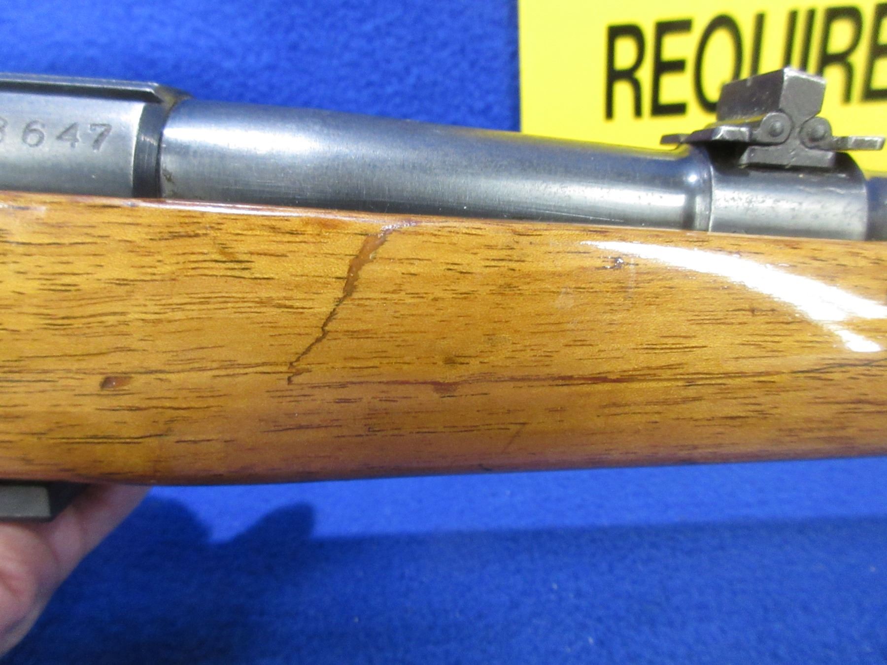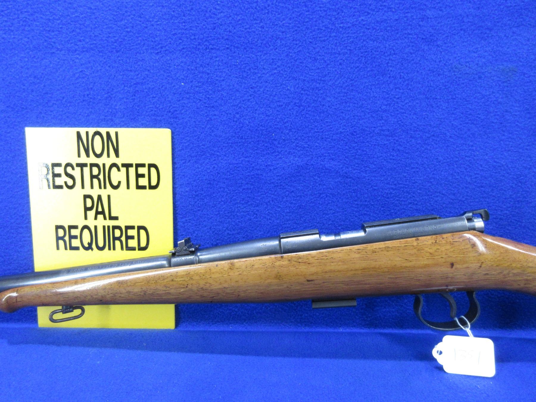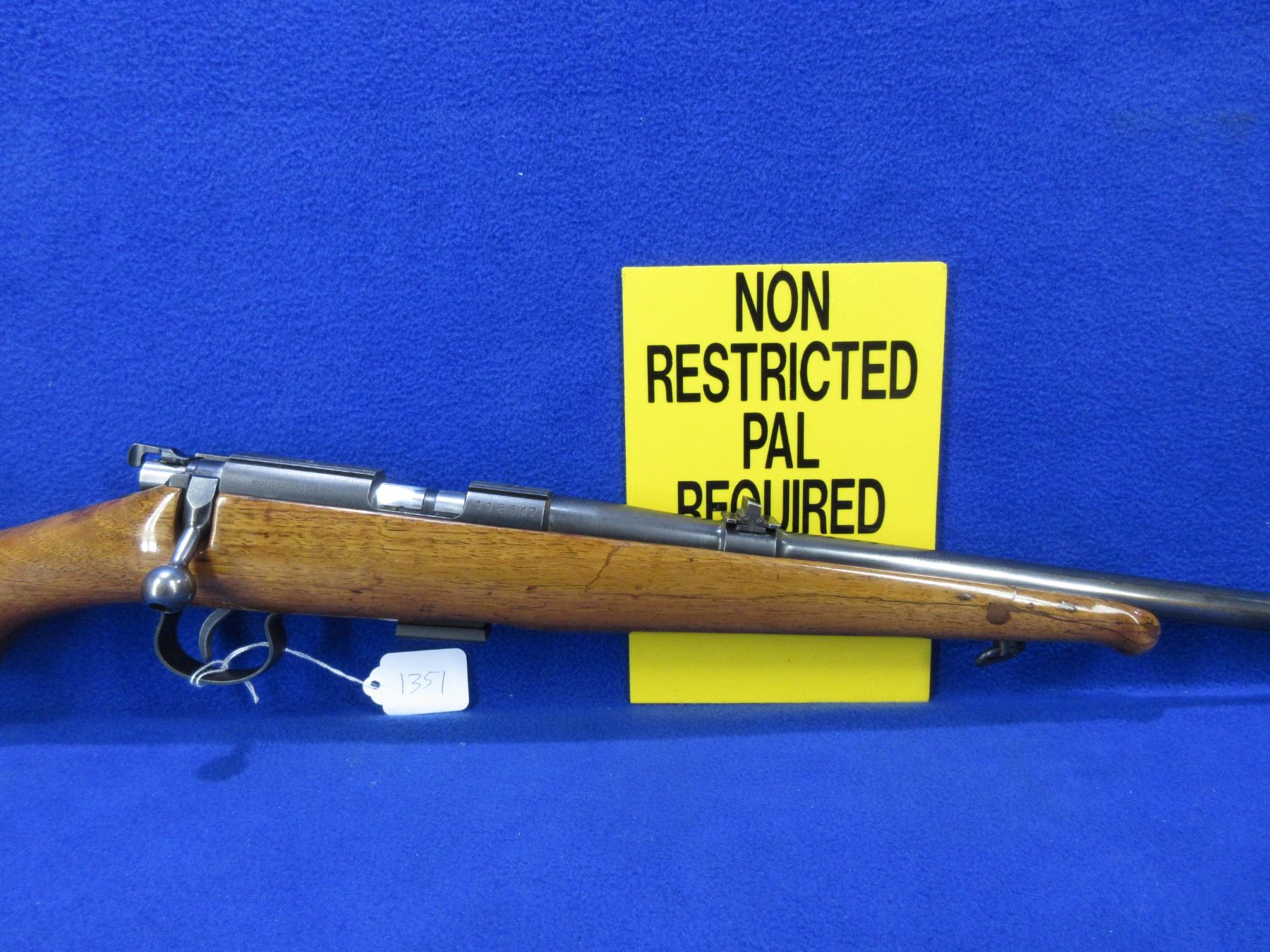 Non-Restricted - BRNO Model 1 in 22 LR - This bolt action rifle with plastic magazine appears to be in good to very good working order. Barrel is 22 3/4", rifling is good to very good, bluing is good to very good, has both sights and integral scope groove, stock has been broken and repaired in the forearm tip area and has been refinished, butt plate good, comes with swivels. Ser # 118647