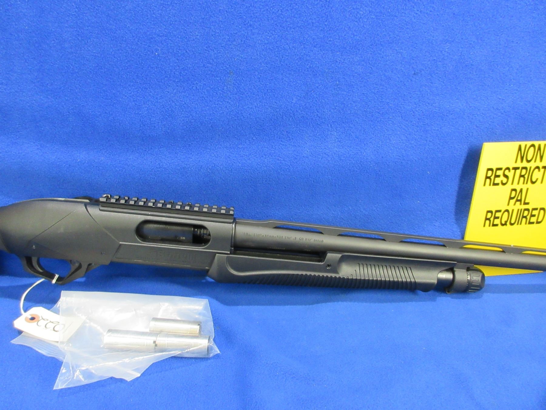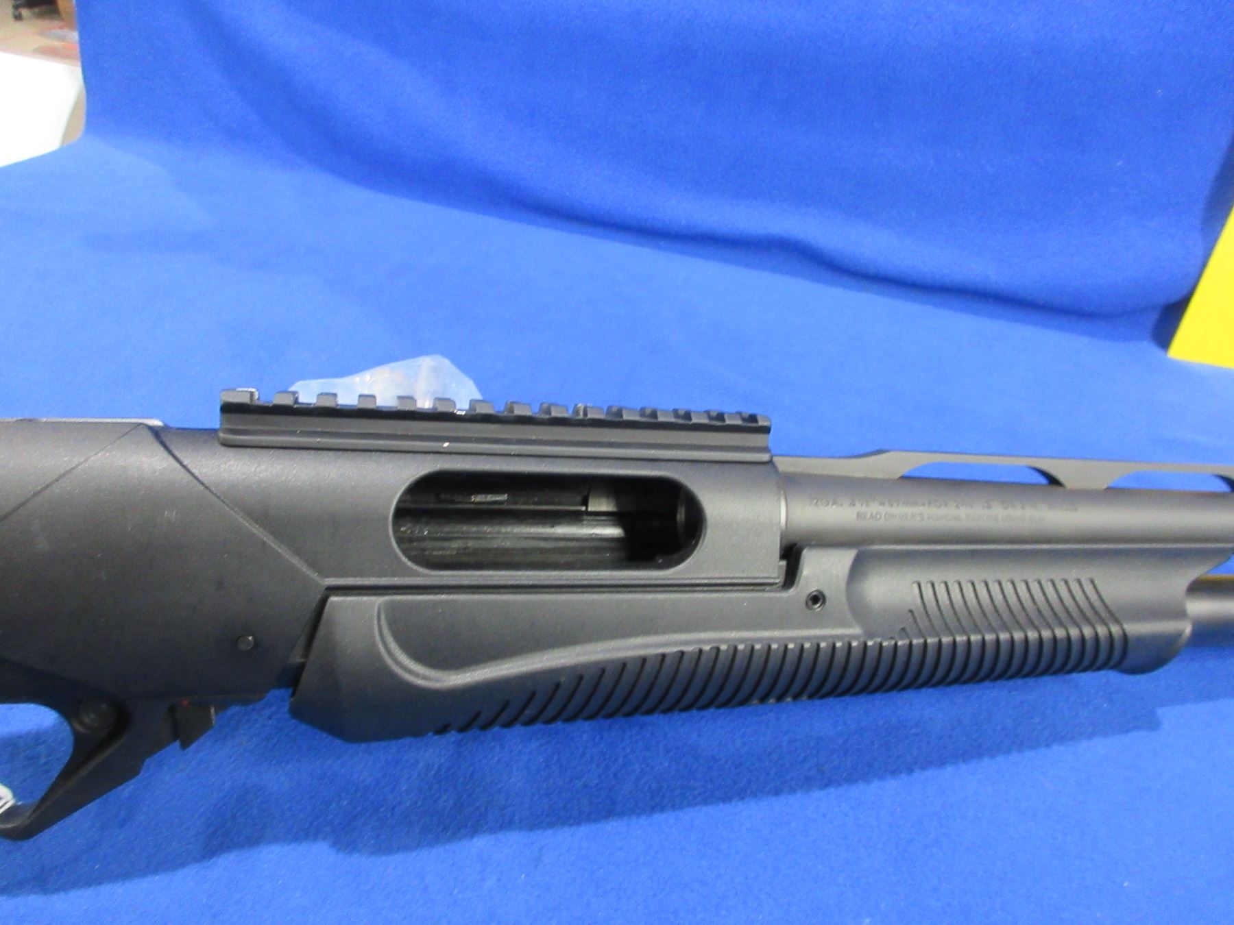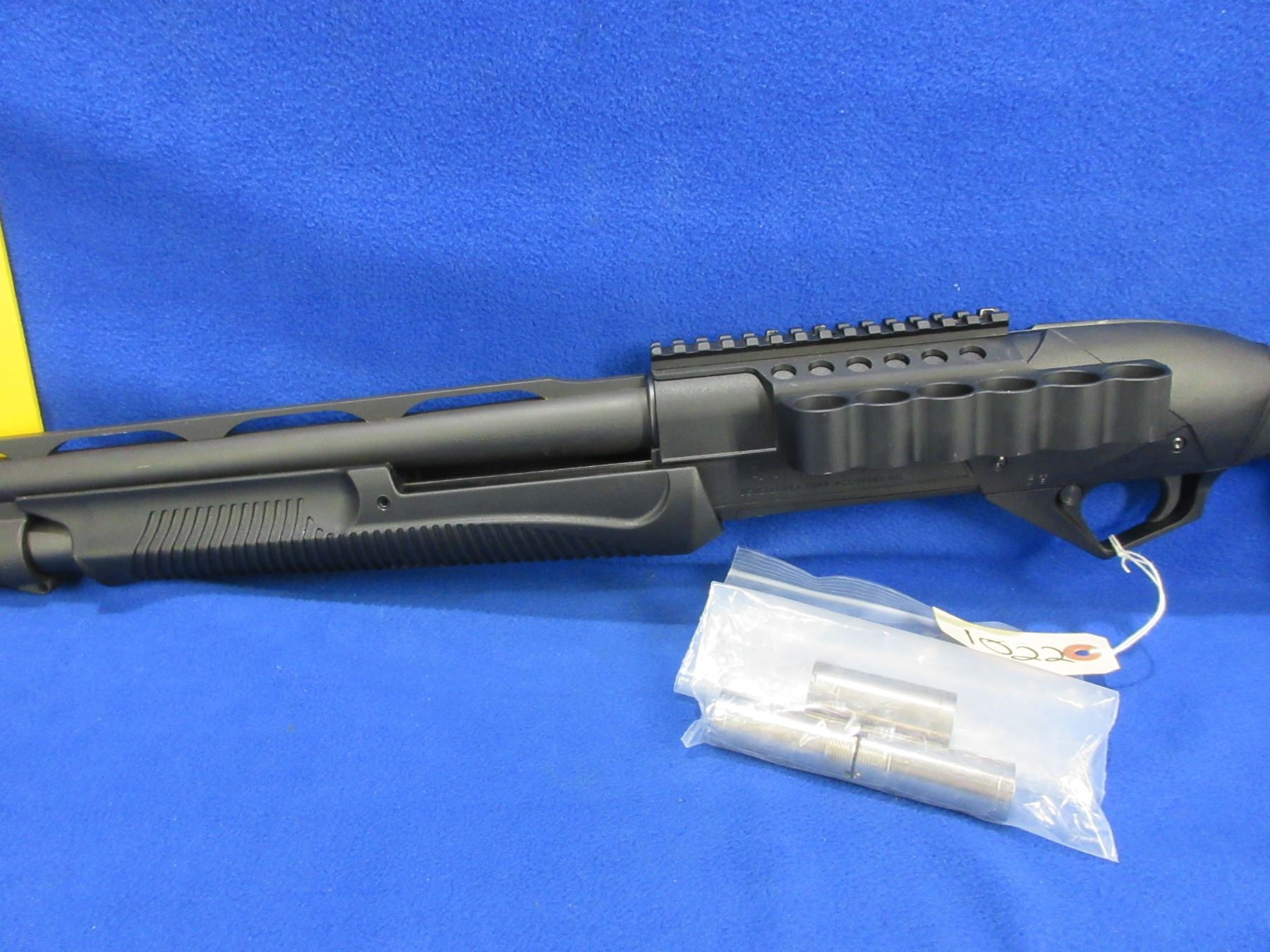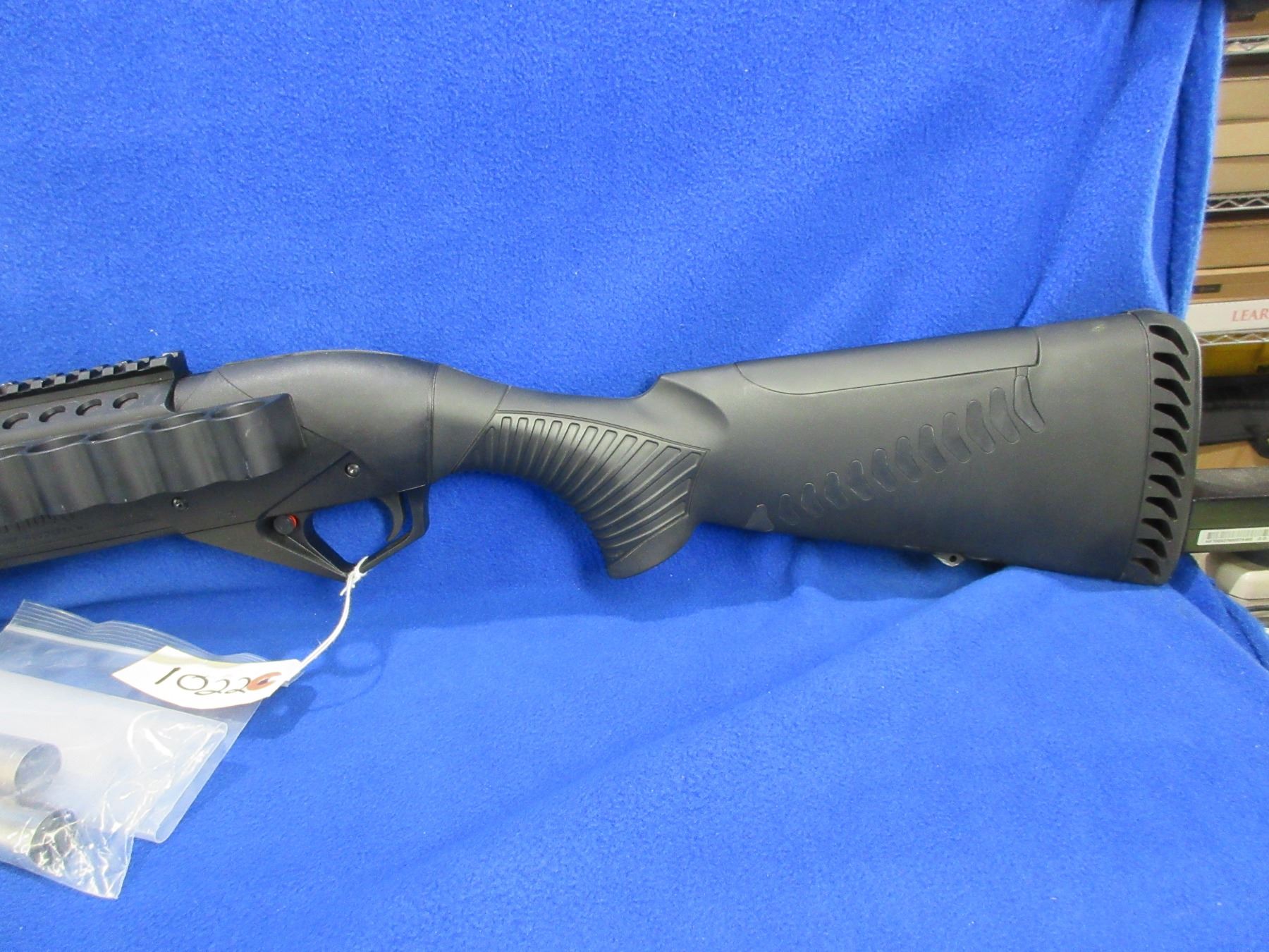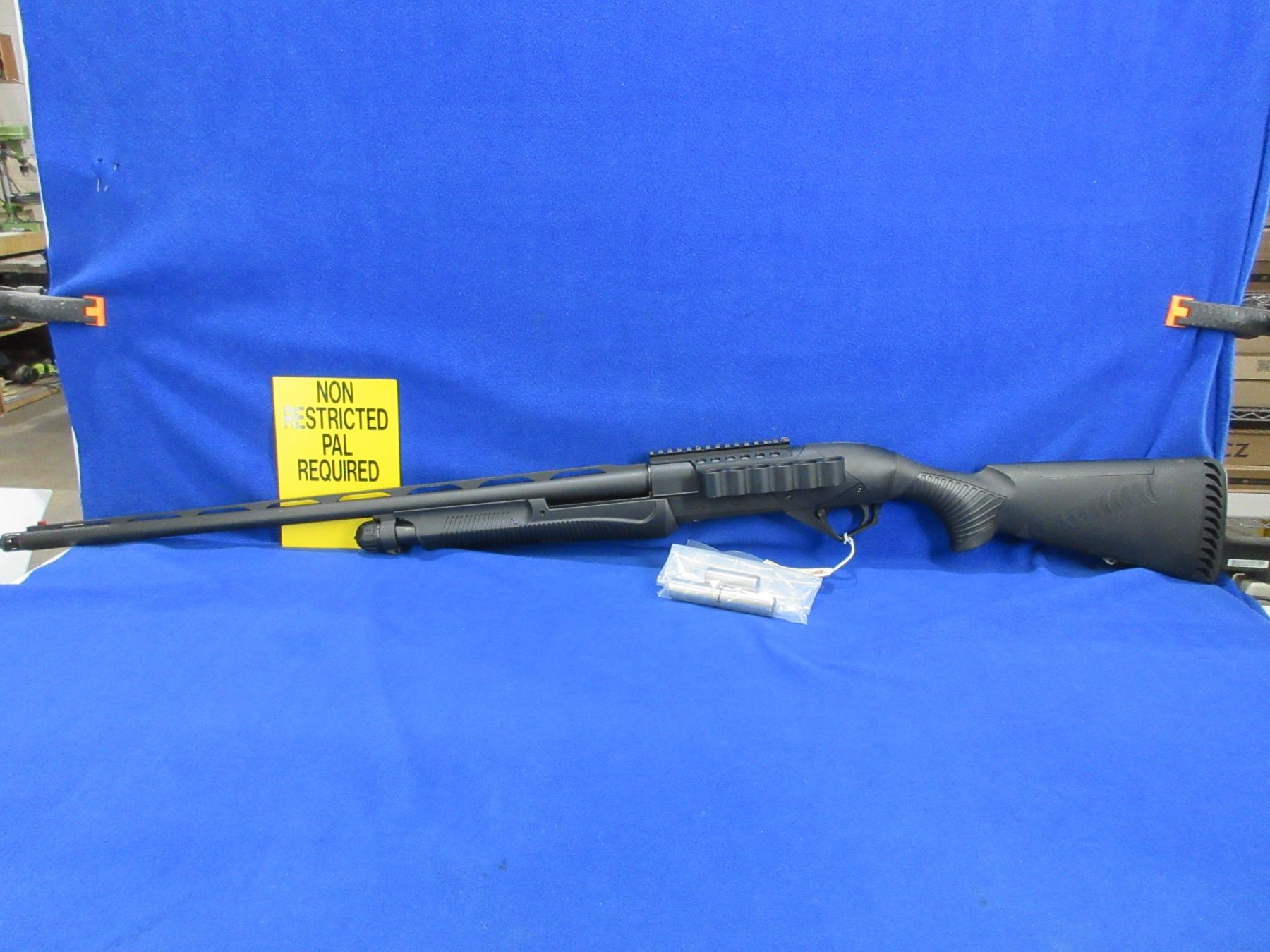 Non-Restricted - Benelli Super Nova in 12 Ga. 3 1/2" - This pump action shotgun appears to be in good to very good working order. Vent rib barrel is 27 1/2" with four removable chokes, bore is good, black finish is good to very good, has fiber optic front sight and bead mid sight, Picatinny rail with shotshell holder, synthetic stock is good to very good, forearm is good to very good, rubber recoil pad good. Ser # Z1038388B