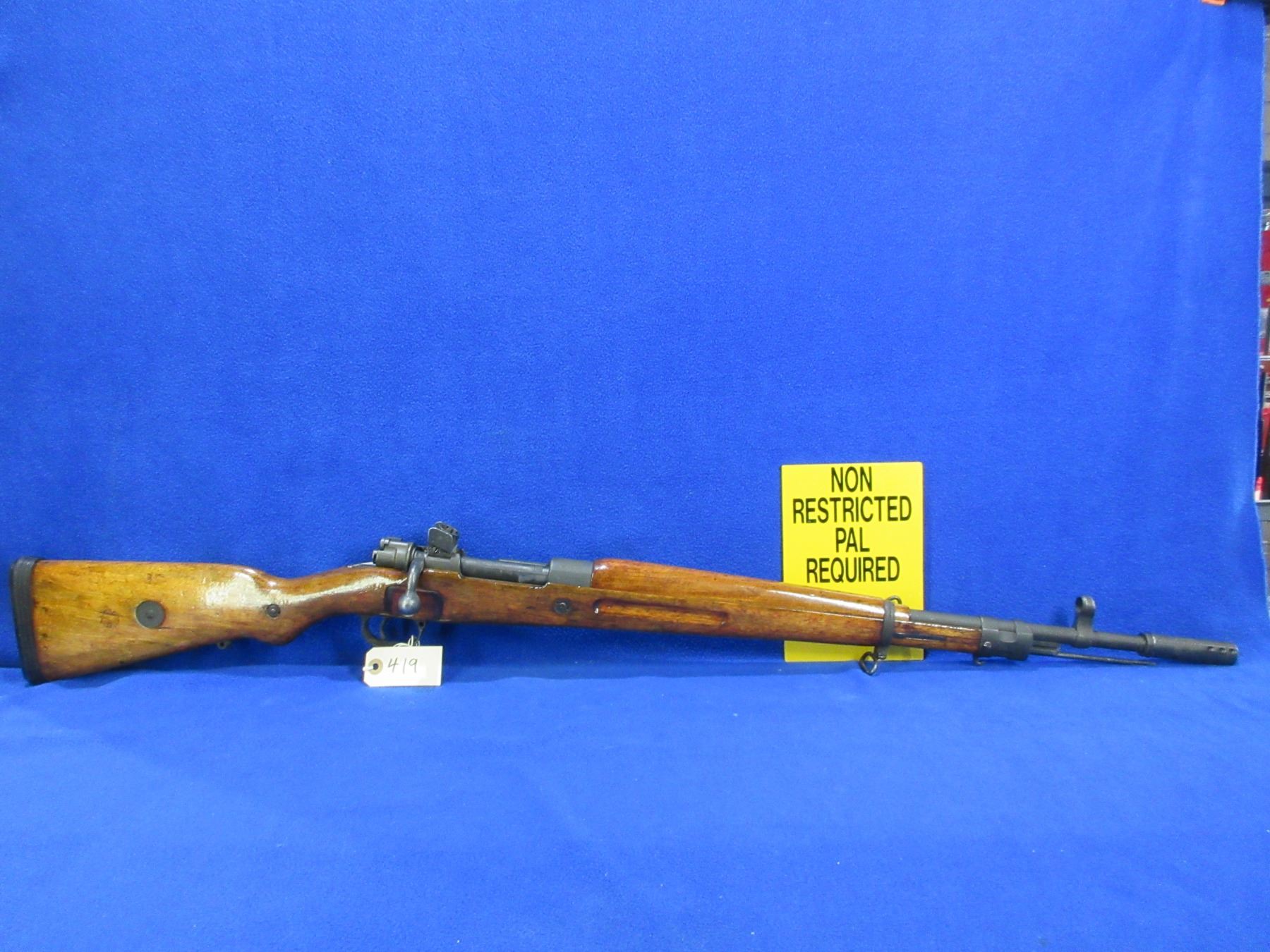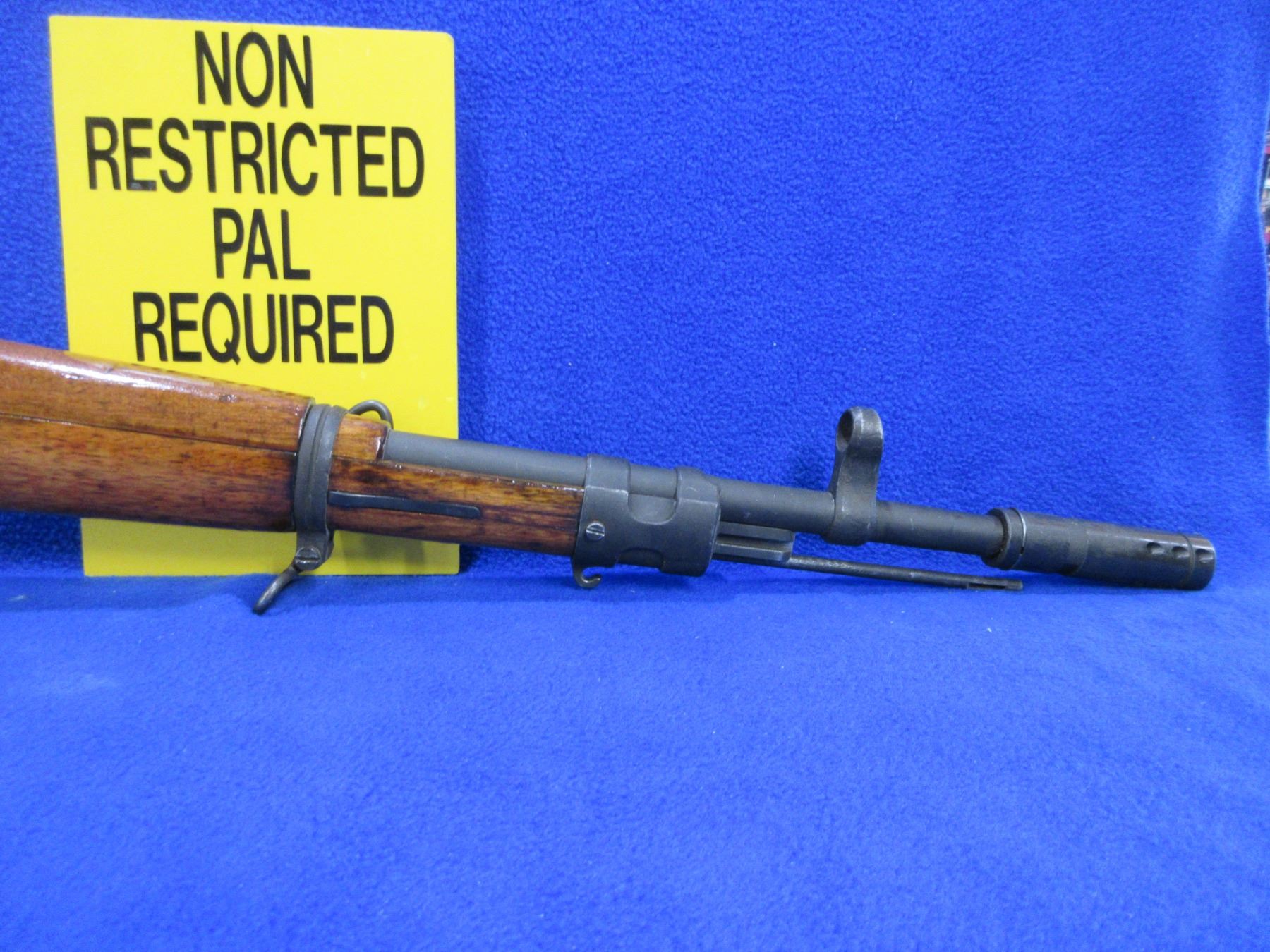 Non-Restricted - Brazilian Mauser M968 in 7.62X51 - This is a bolt action rifle with floor plate magazine, action appears to be in good to very good working order. Barrel is 22", rifling is good, Parkerized finish is good to very good, has both peep sights, stock is good to very good with usage marks, length of pull is 13", rubber recoil pad, comes with 2 front swivels, 2 rear swivel studs and a flash suppressor. Ser # 97723