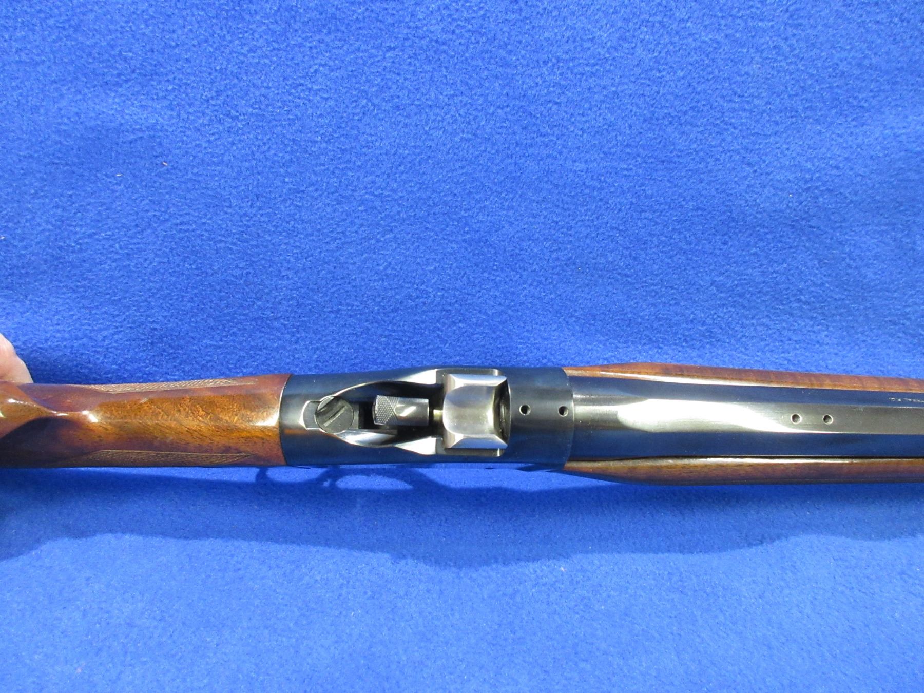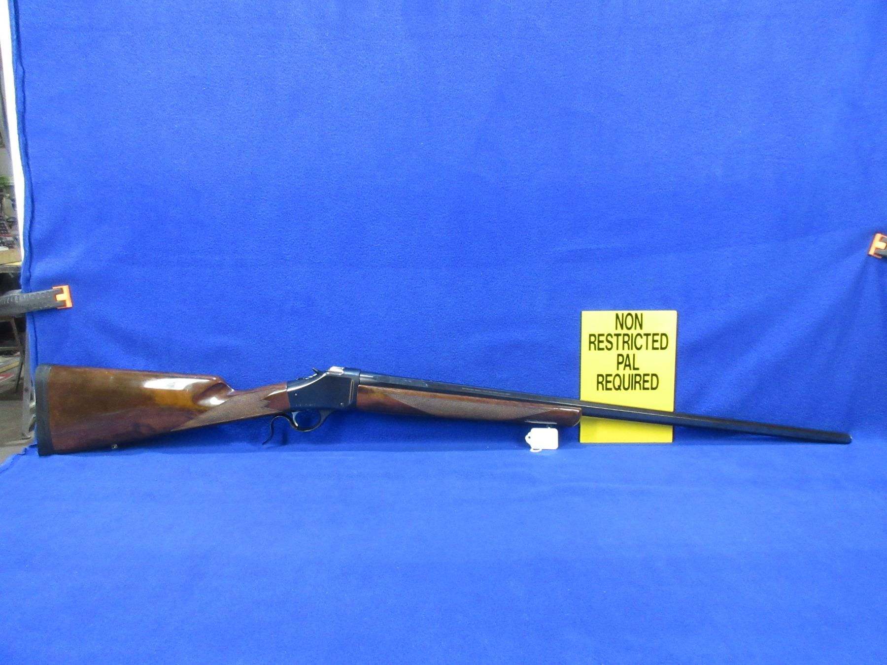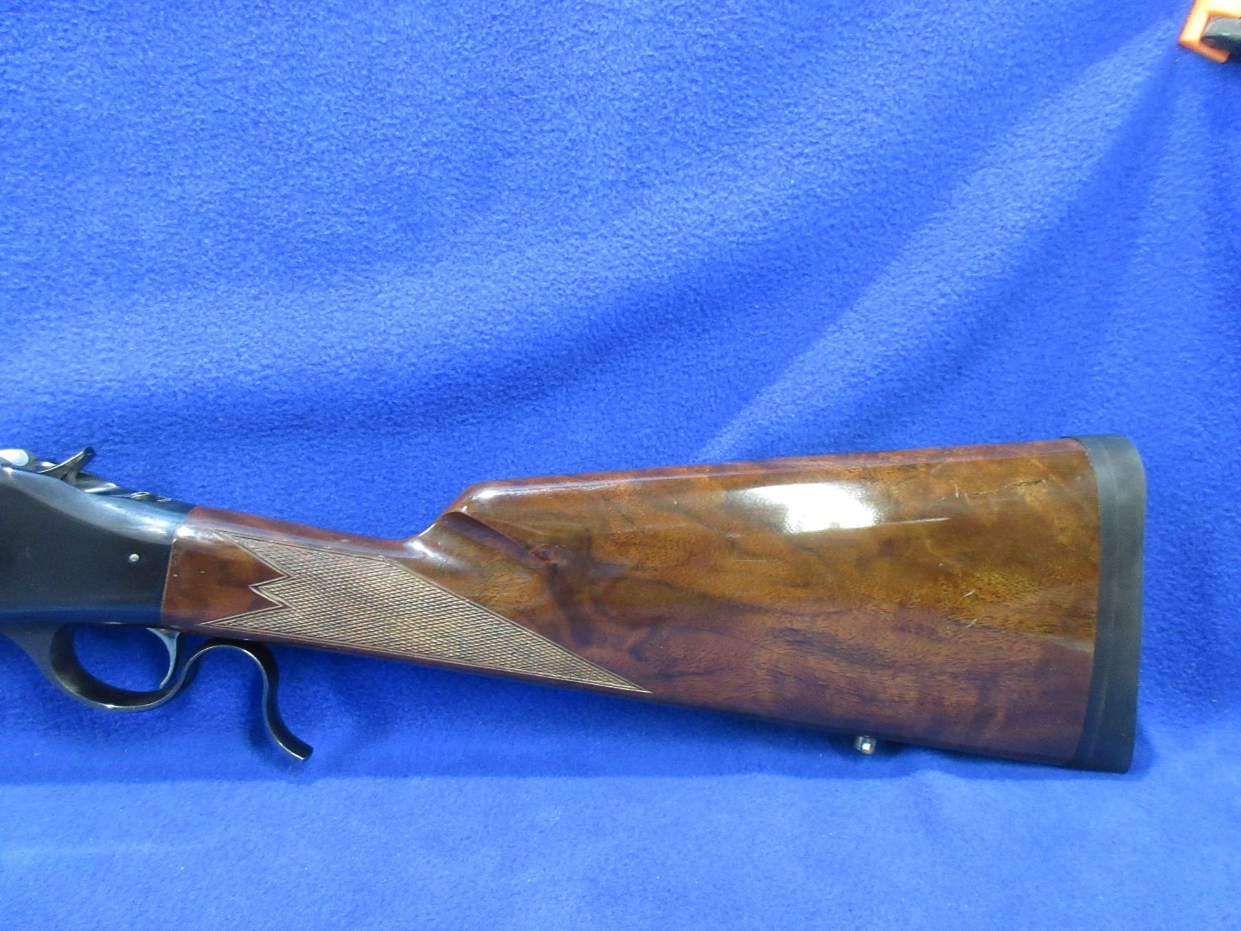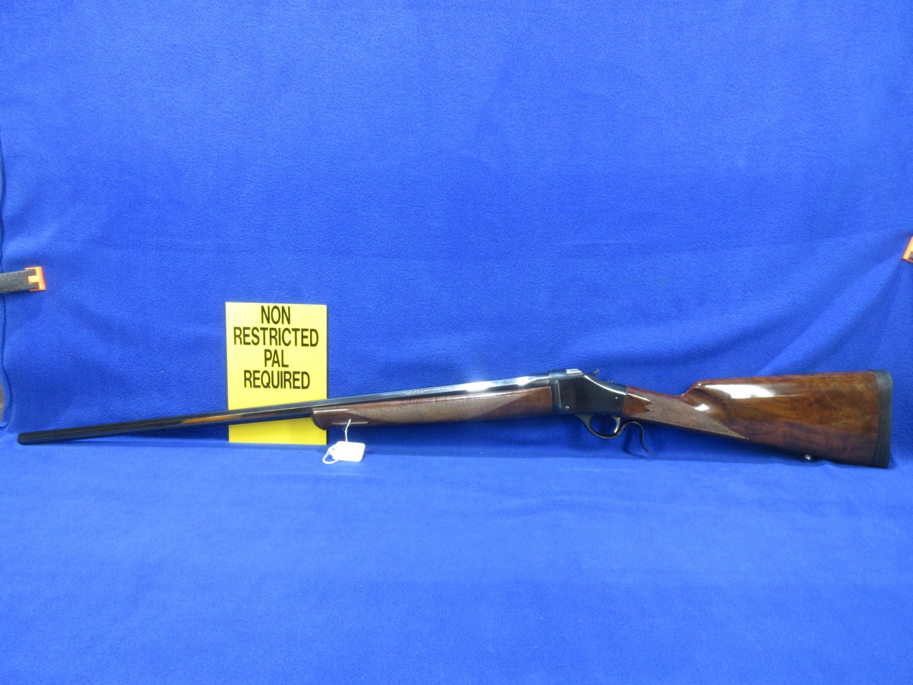 Non-Restricted - Browning Model 1885 High Wall in 270 Win. - This single shot falling block rifle appears to be in very good working order. Octagon barrel is 28", rifling is very good, bluing is very good, has no sights but is drilled and tapped, stock and forearm are good to very good with a few handling marks, rubber butt plate very good. Ser # 01211PN247