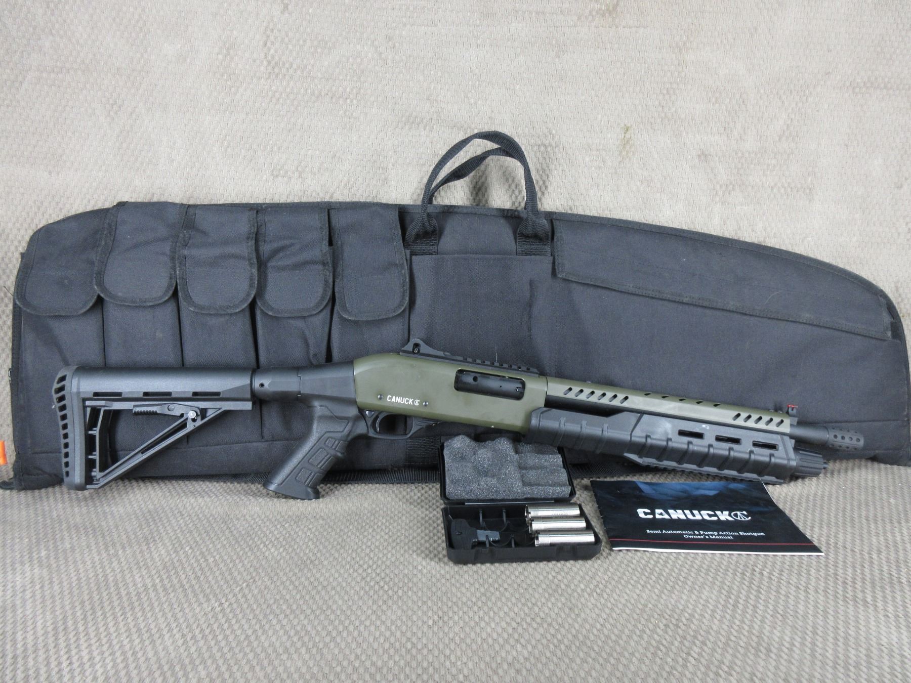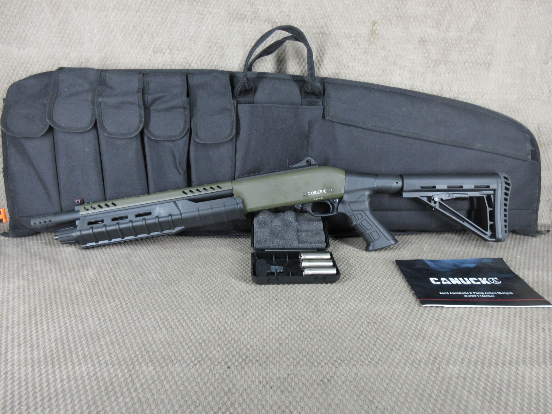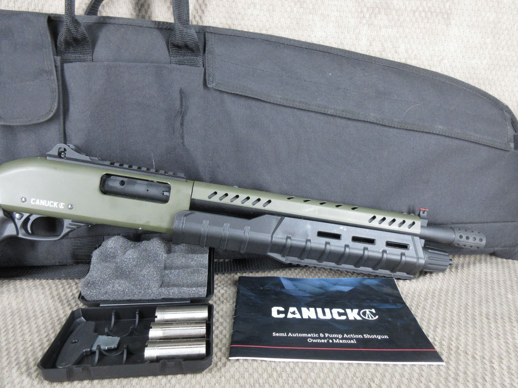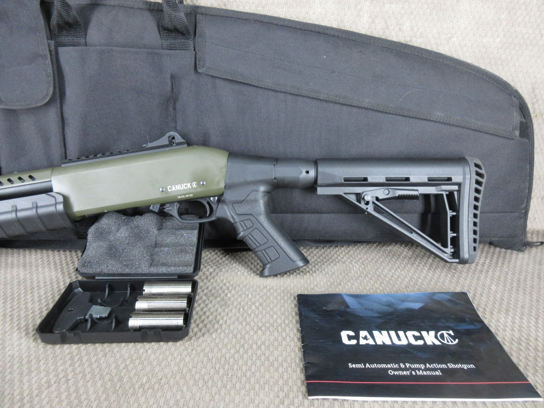 Non-Restricted - Canuck Sentry Pump Shotgun 12 Ga 3" - This pump action shotgun has barely been used & everything is like new on it. Comes with 13" barrel, 3 chokes, owners manual and soft case.