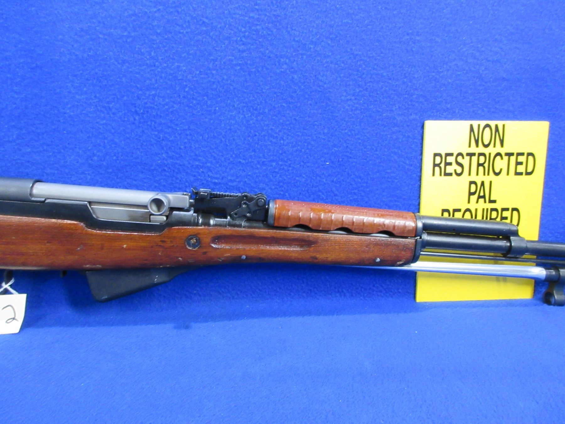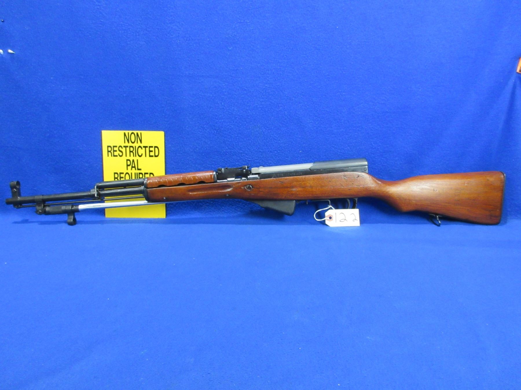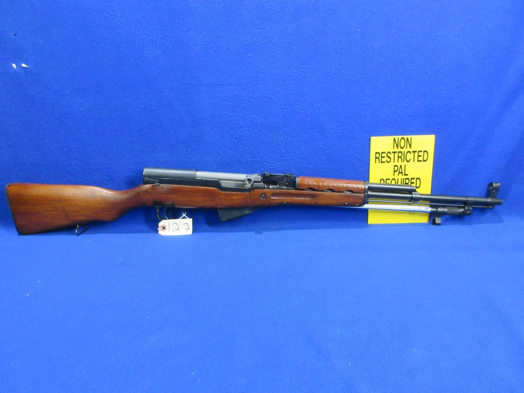 Non-Restricted - Chinese SKS in 7.62x39 - This semi-auto rifle with internal magazine appears to be in good to very good working order. Barrel is 20 1/4", rifling is good to very good, bluing is good to very good, has both sights, stock is good with usage marks but appears refinished and has a small crack under front by bayonet, barrel guard is plastic, metal butt plate good. Comes with bayonet and swivels. Ser # 24051306