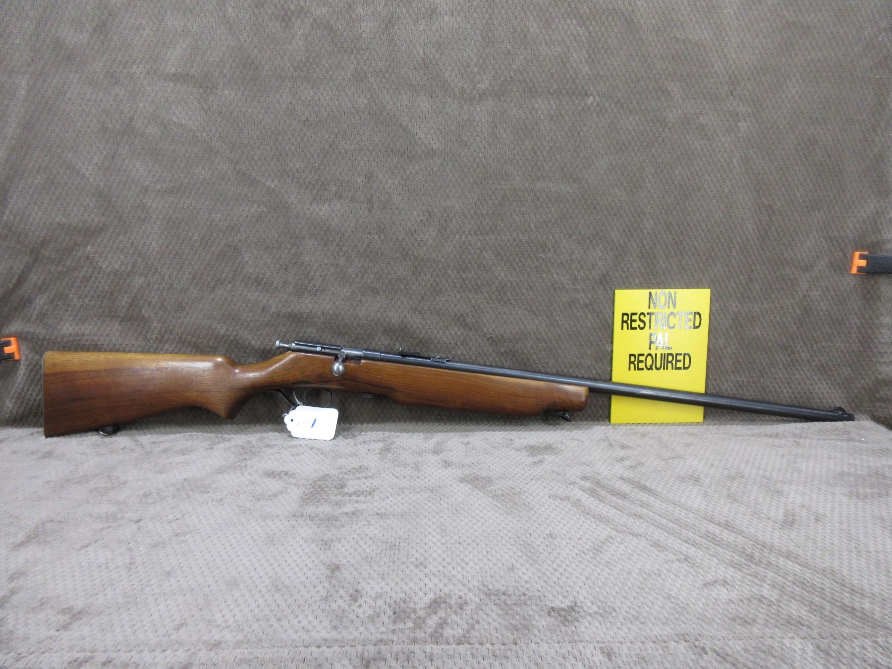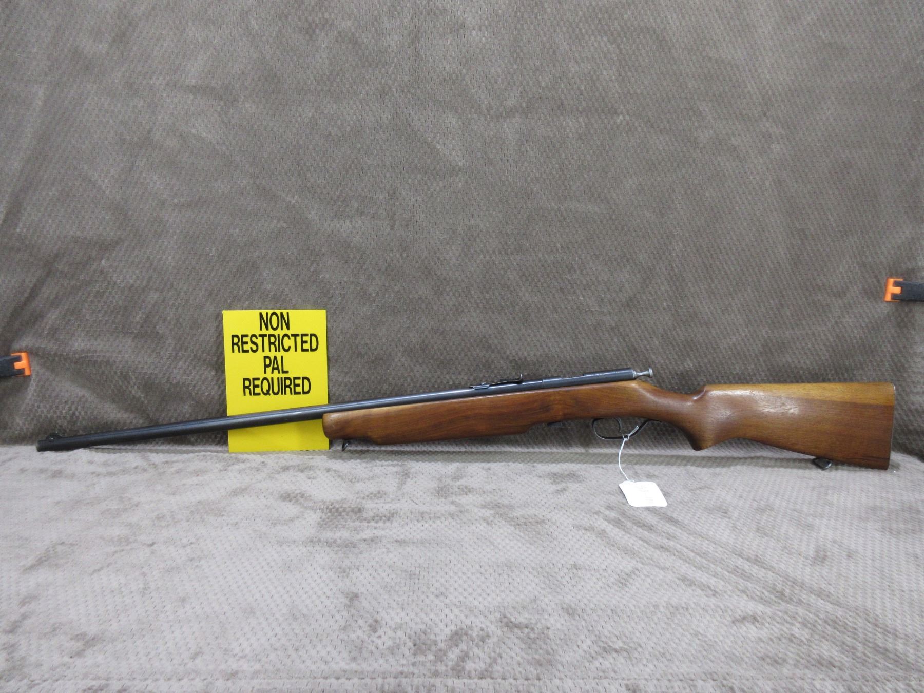 Non-Restricted - Cooey Model 75 in 22 LR - This single shot bolt-action rifle appears to be in good to very good working order. Barrel is 27", bluing is good, rifling is good to very good, has both sights, stock good with usual marks, metal butt plate good, Ser # None