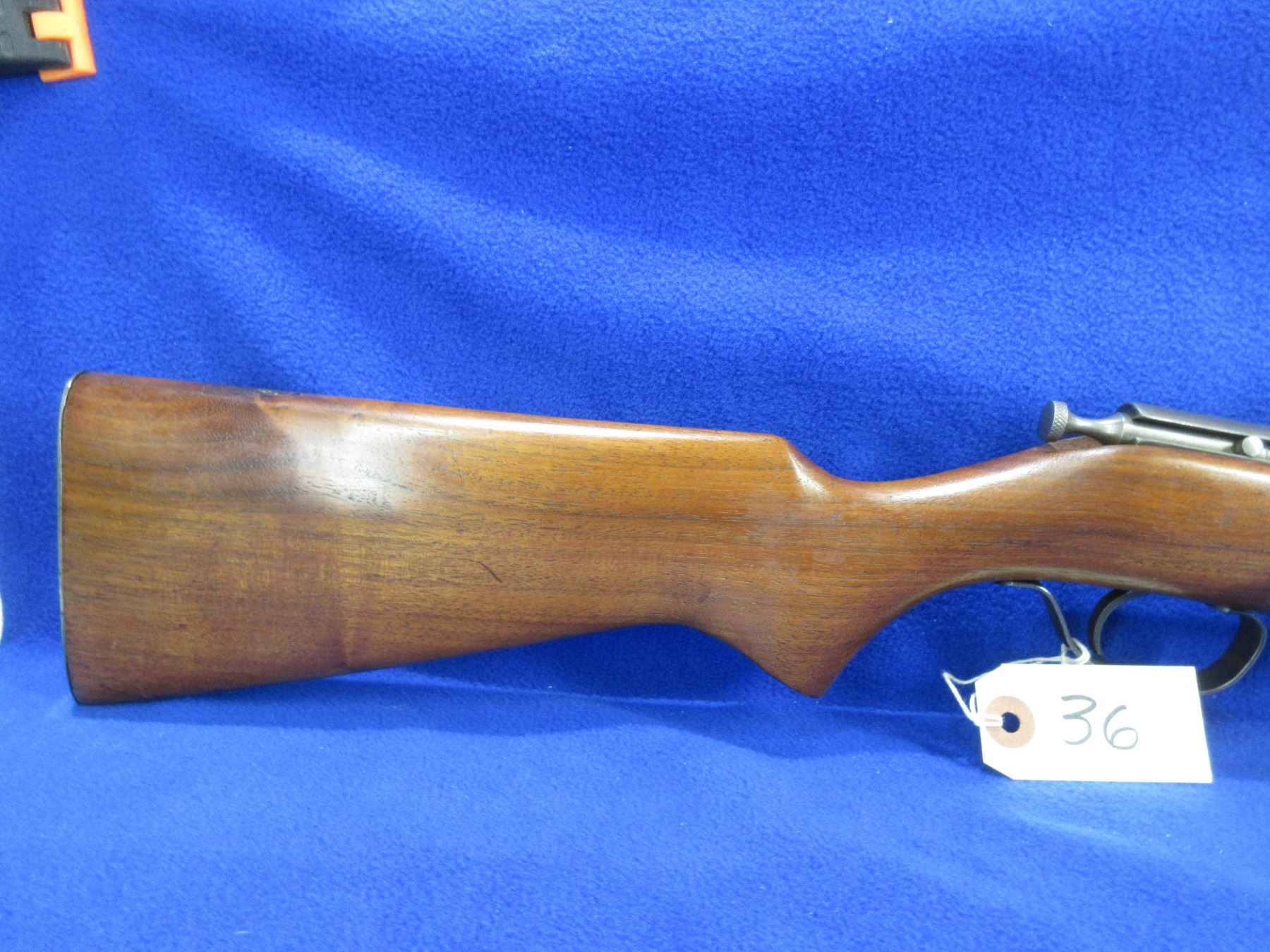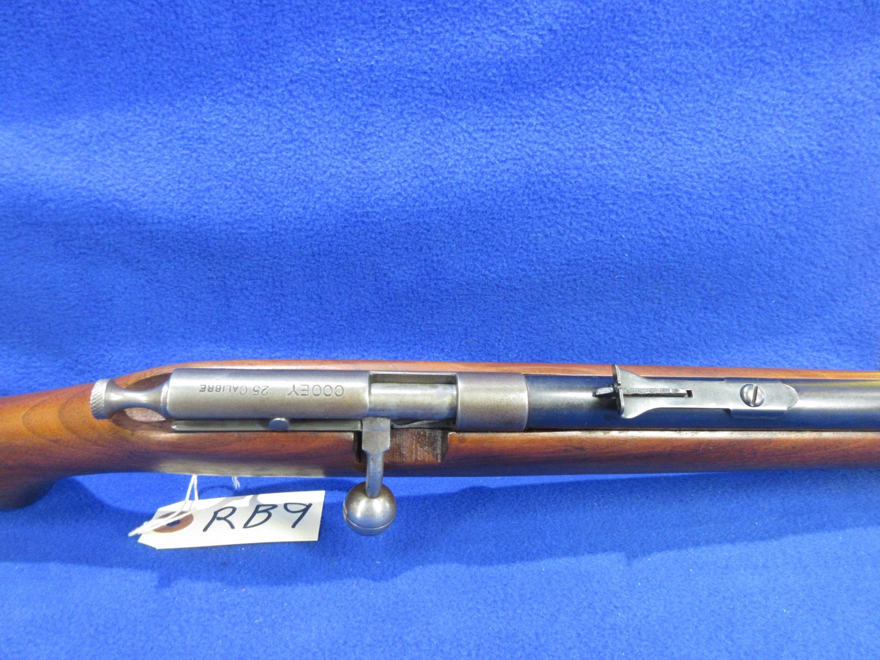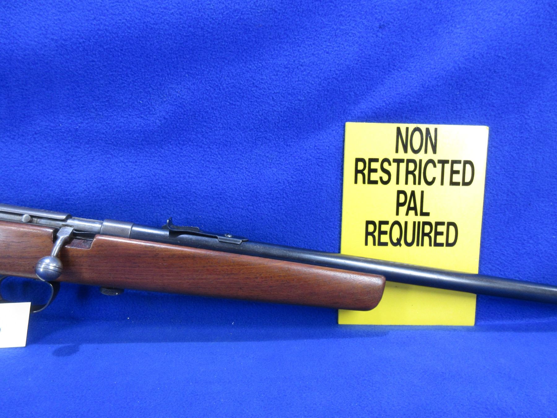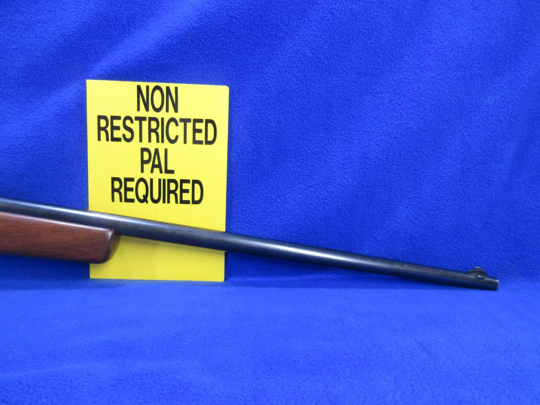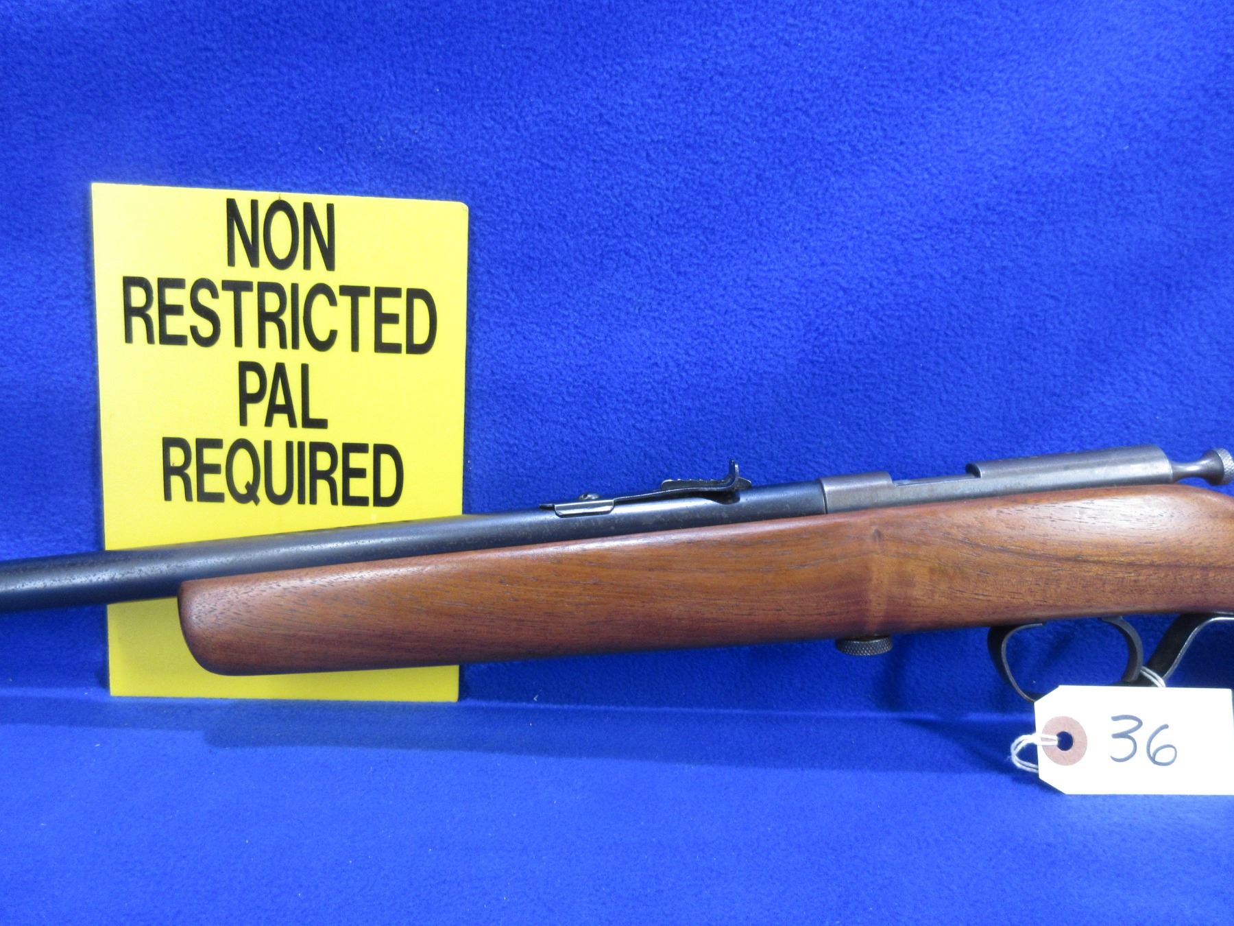 Non-Restricted - Cooey Model Canuck (we believe it is a Canuck but it is not marked on the gun) in 25 Rimfire - This single shot bolt action rifle appears to be in good to very good working order. Barrel is 24", rifling is good to very good, bluing on barrel is good to very good, bluing on action is mostly grey, has both sights, stock is good to very good, metal butt plate good. Ser # None