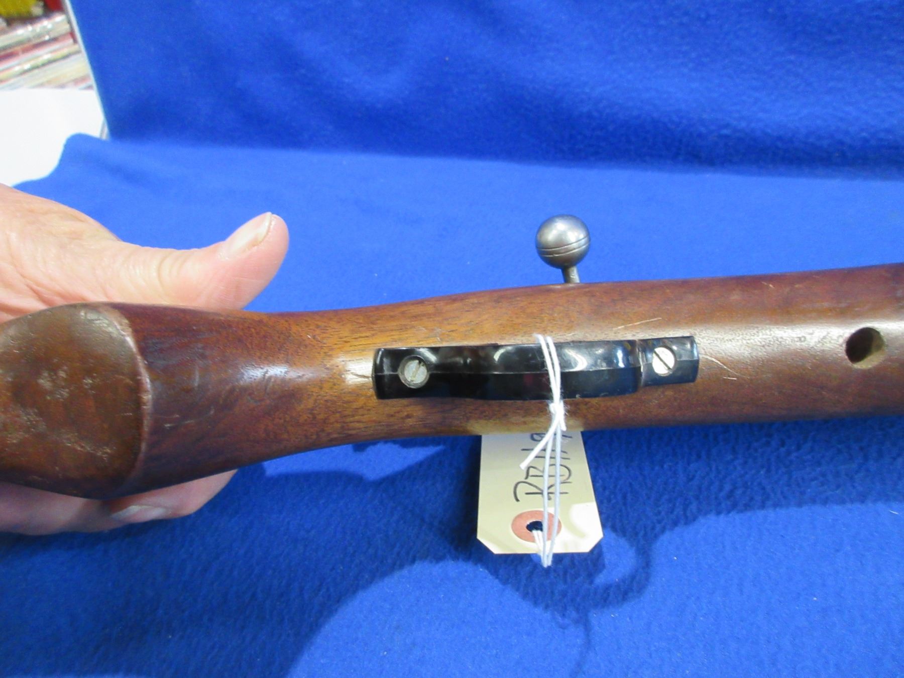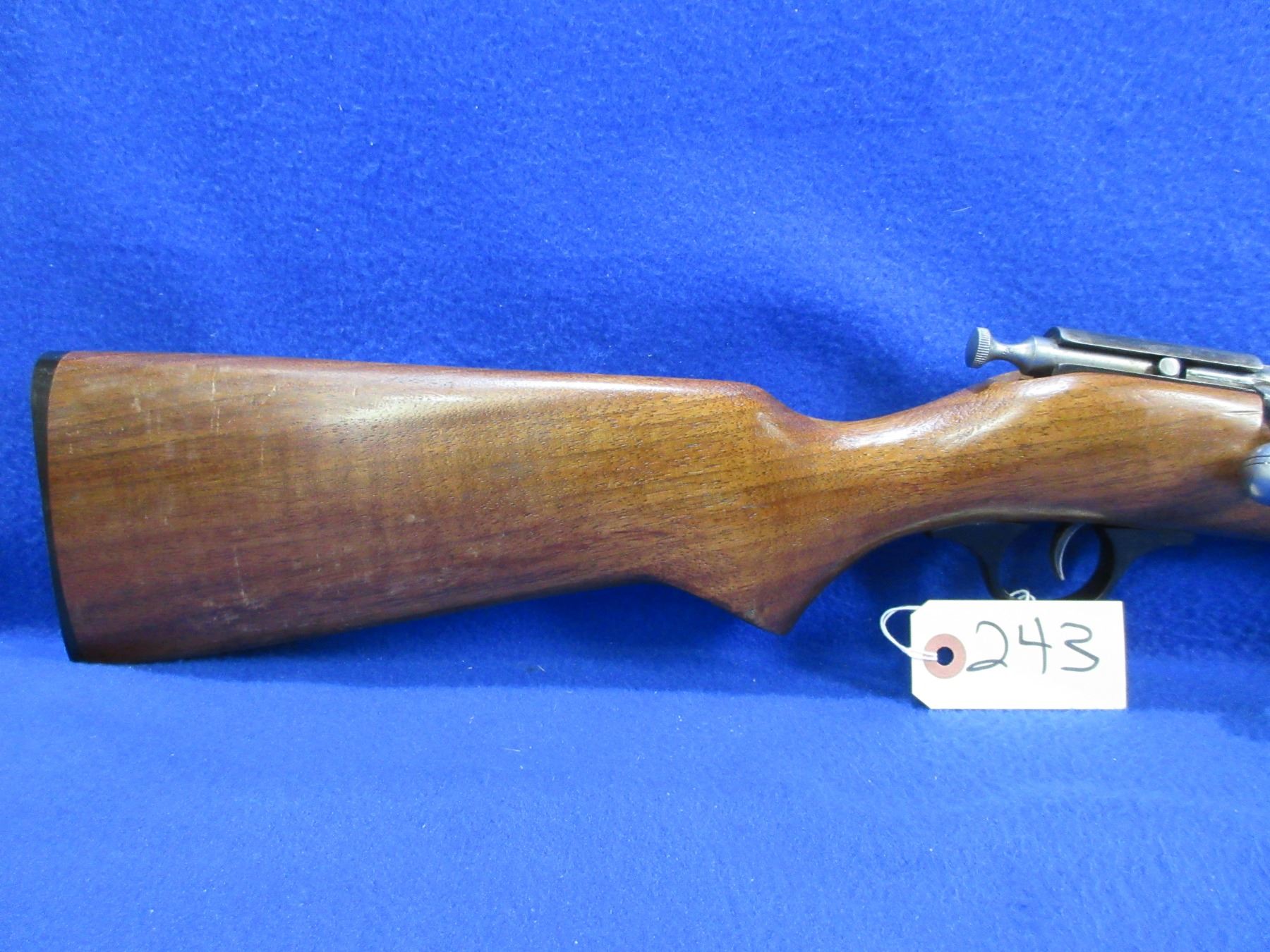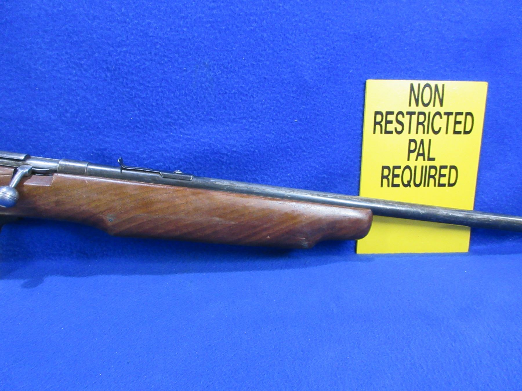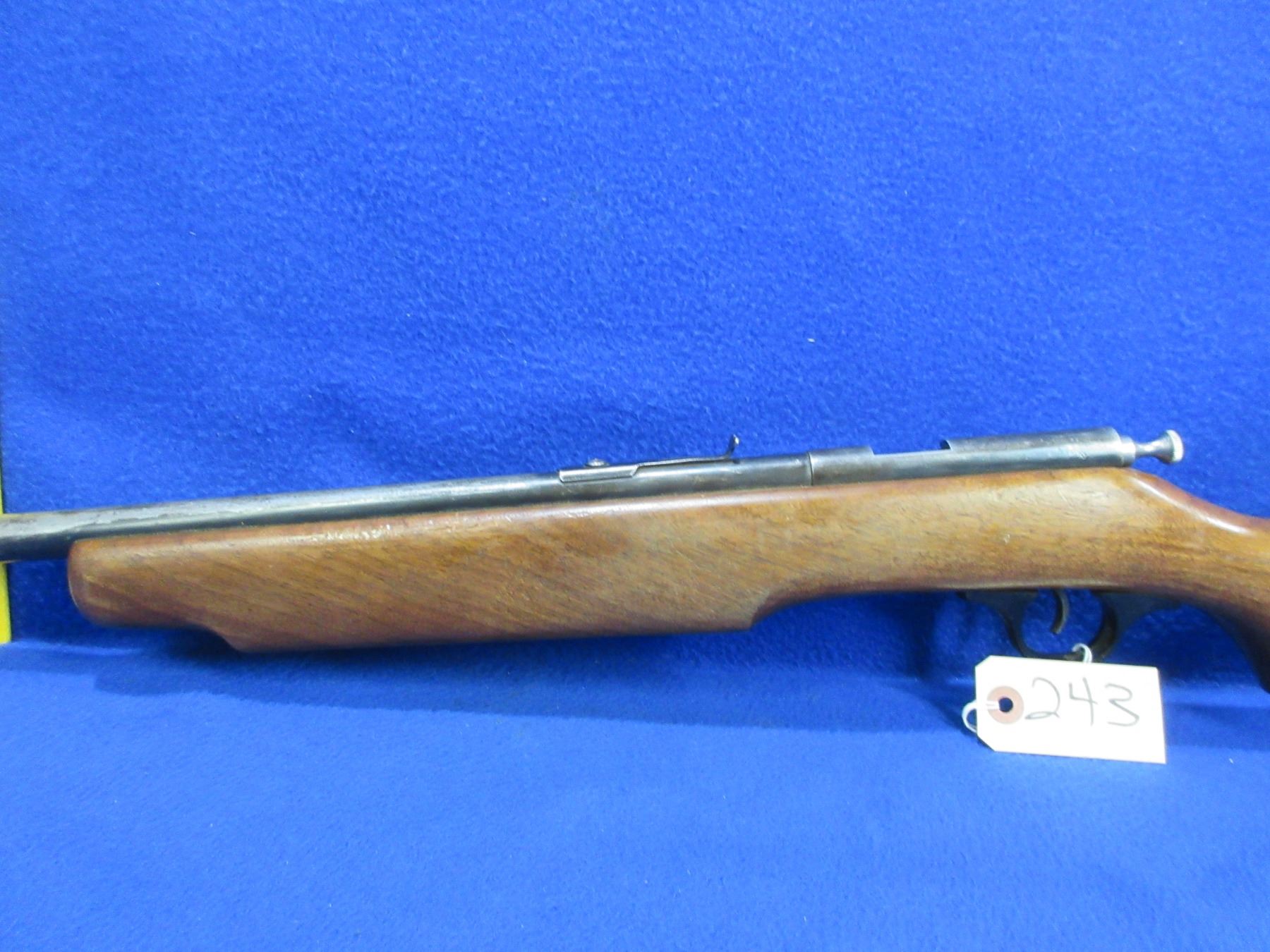 Non-Restricted - Cooey by Winchester Model 75 in 22 S/L/LR - This single shot bolt action rifle appears to be in good working order. Barrel is 27", rifling is good to very good, bluing is mostly gone, has both sights but rear ramp is missing, stock is good to very good with usage marks, butt plate good. Ser # None