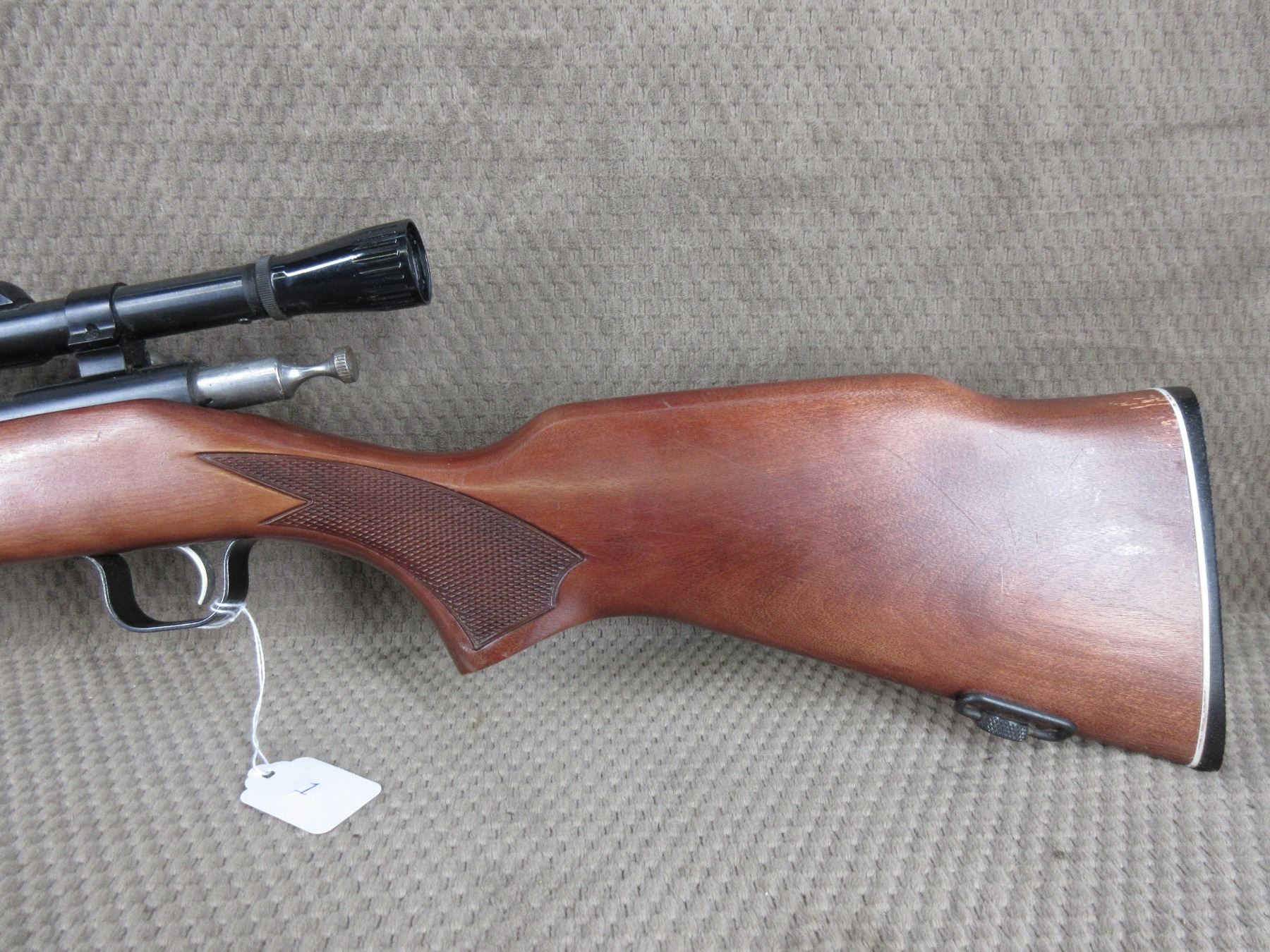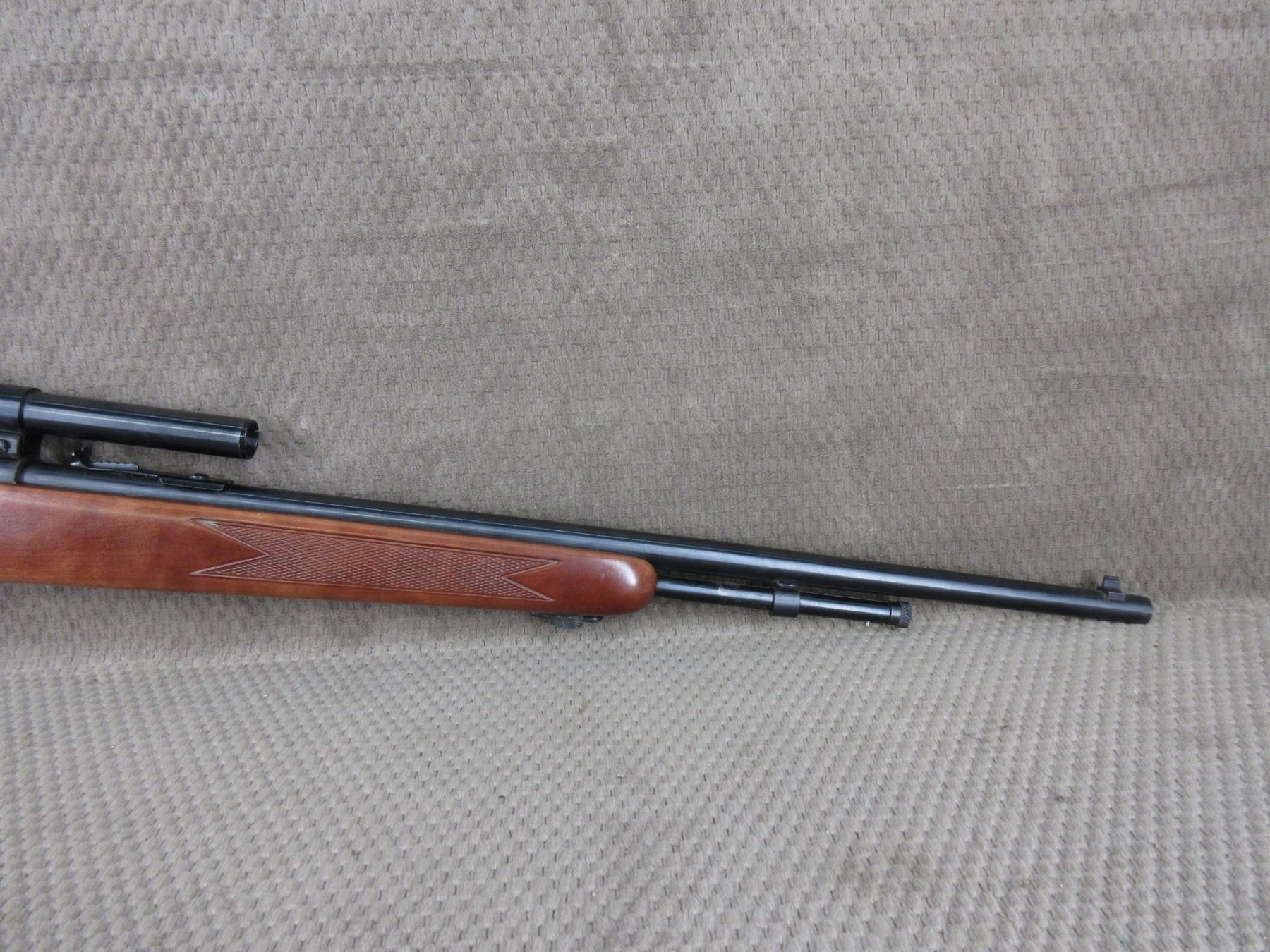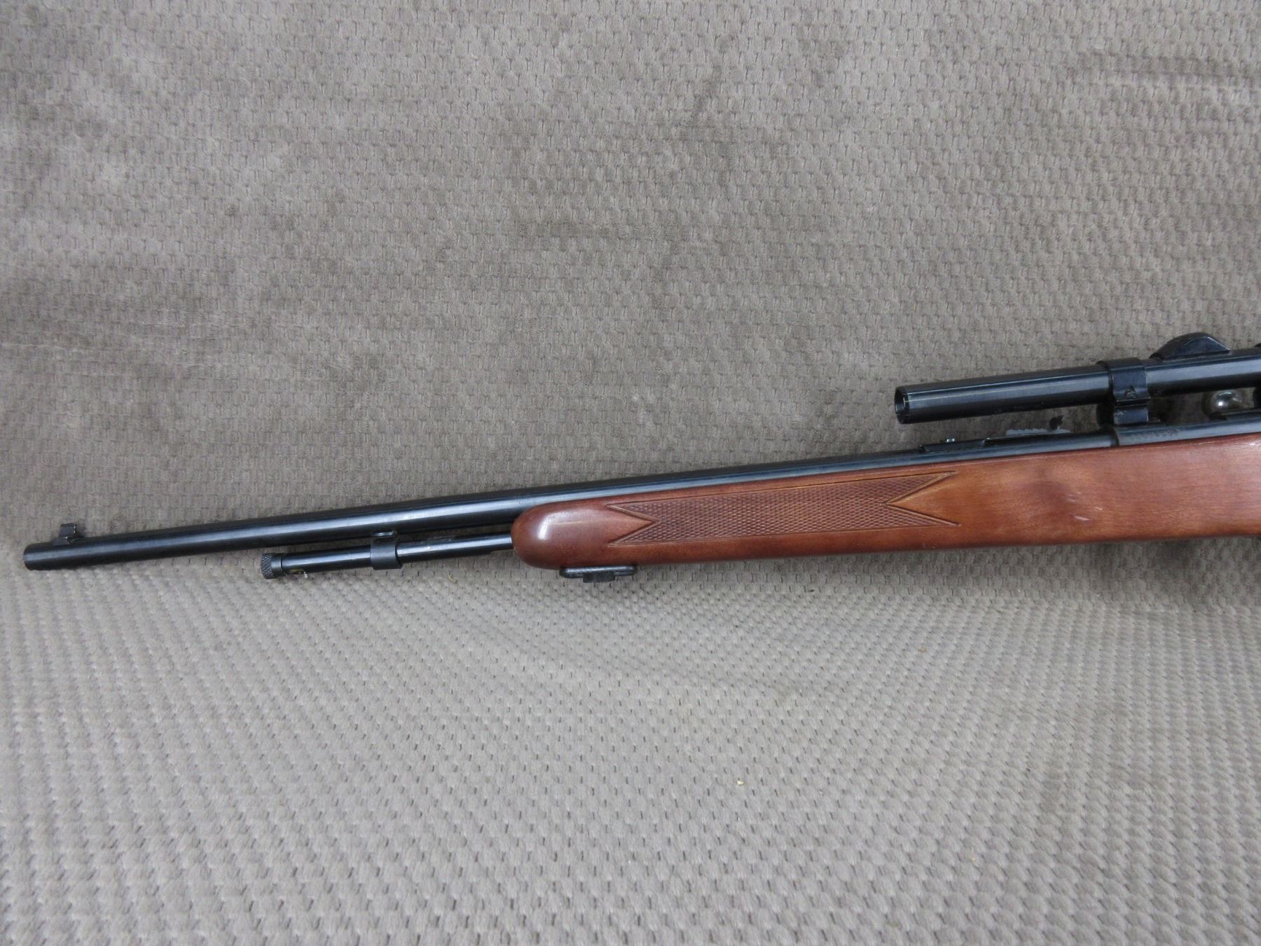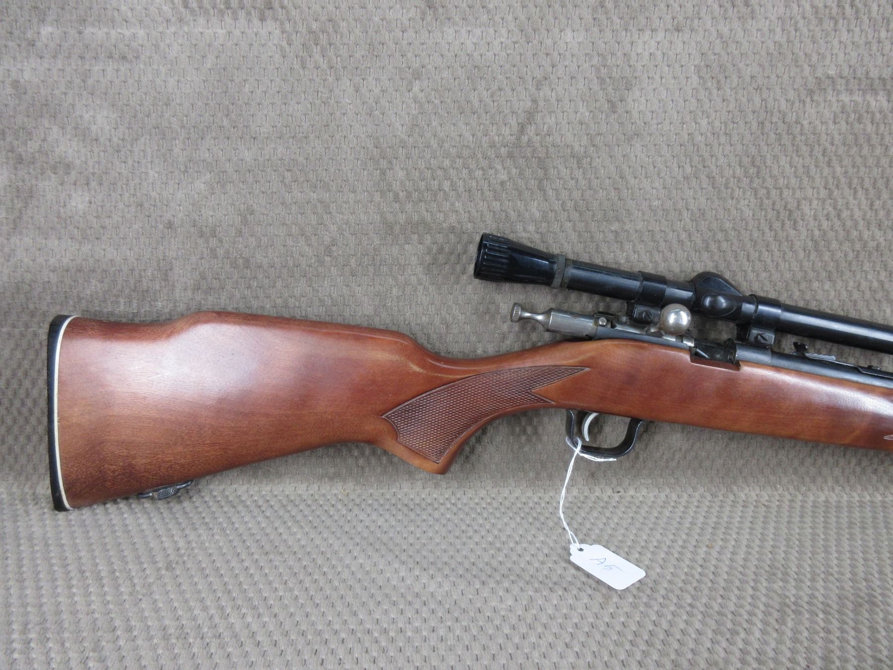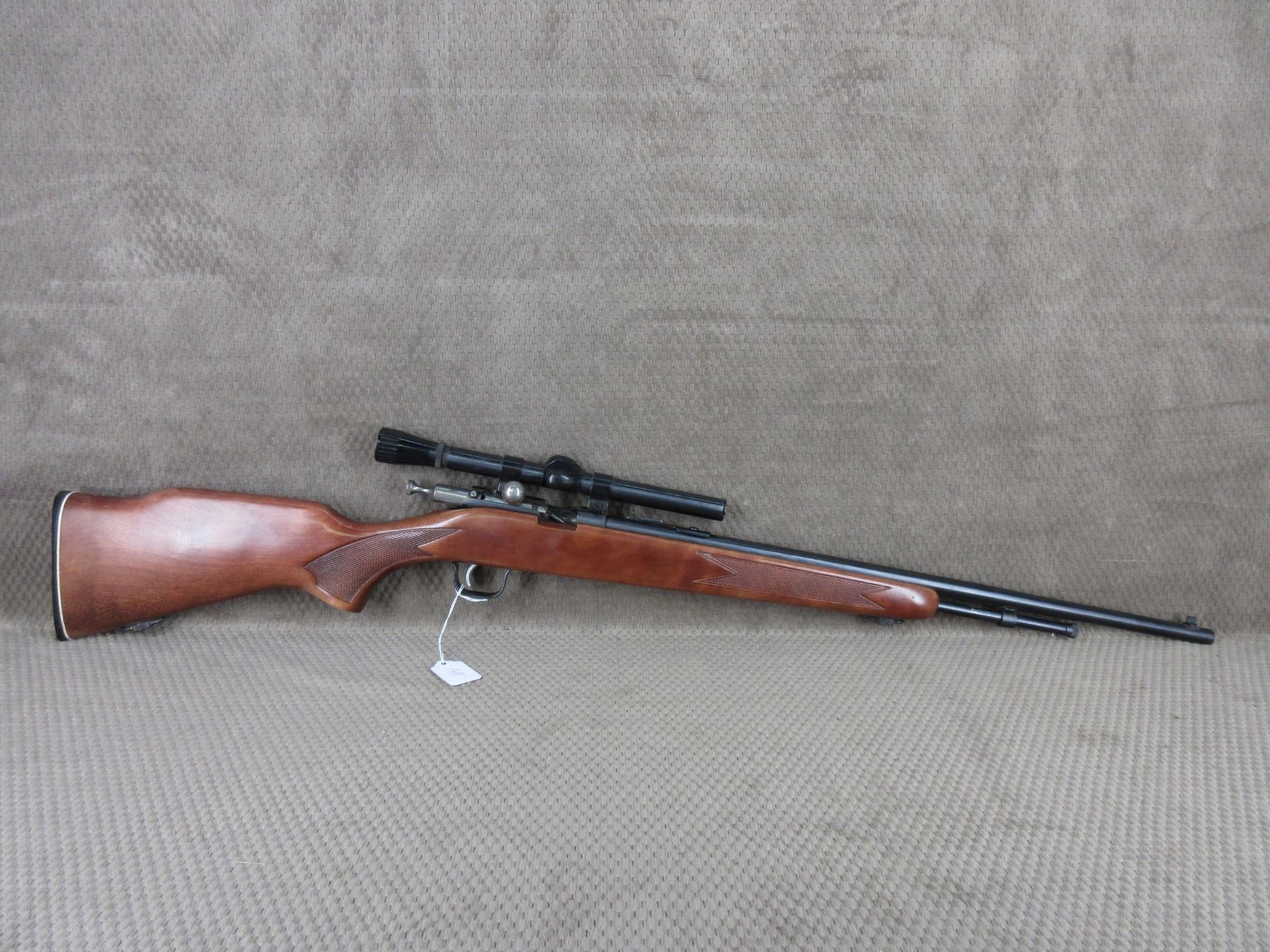 Non-Restricted - Cooey by Winchester Model 600 in 22 LR - This bolt action tube magazine rifle appears to be in very good working order. Barrel is 22", rifling is very good, bluing is very good, has both sights, clear Weaver Marksman scope, stock is very good except for 2 arears where the finish is flacking, original butt plate, swivels. This gun was lightly used.