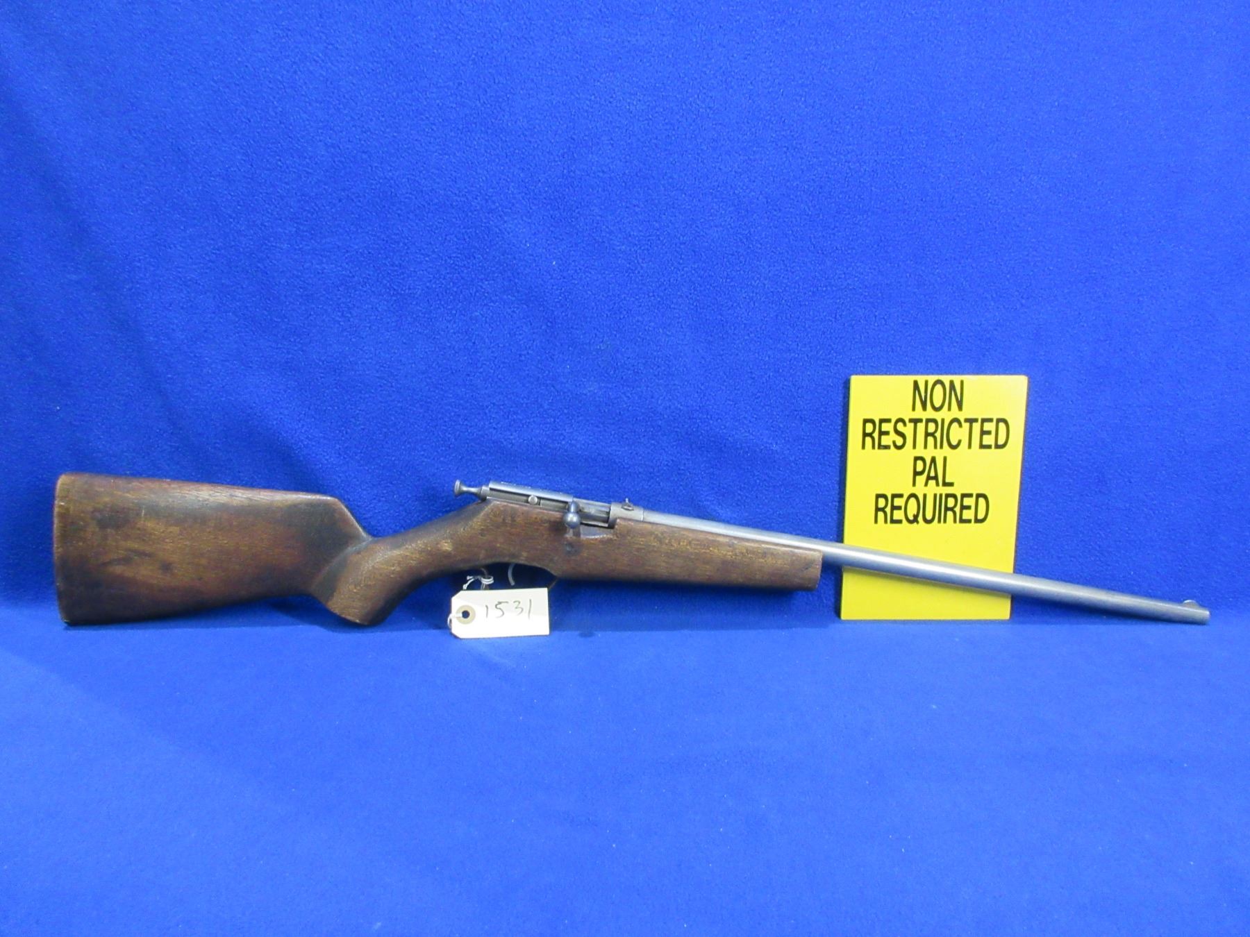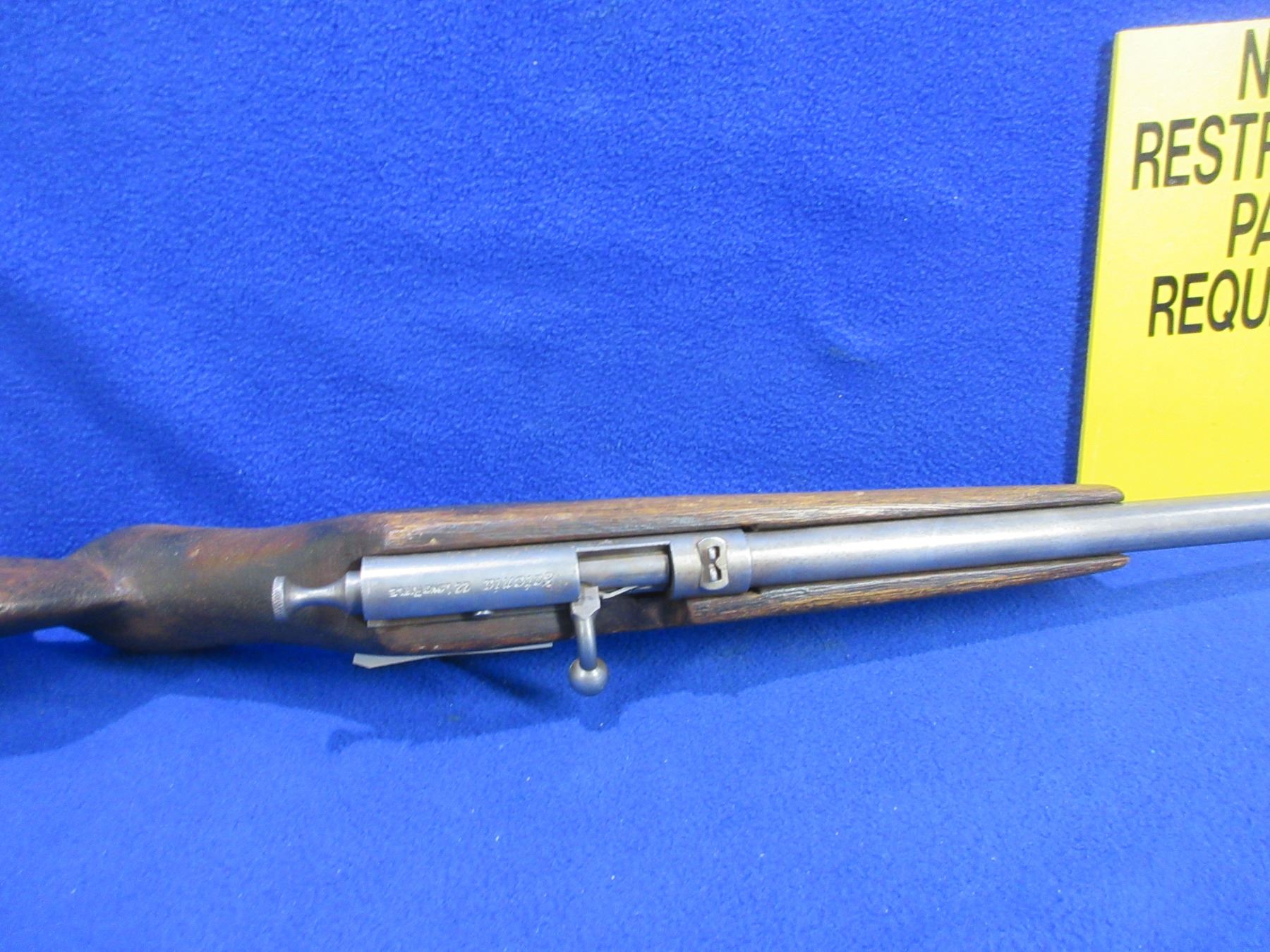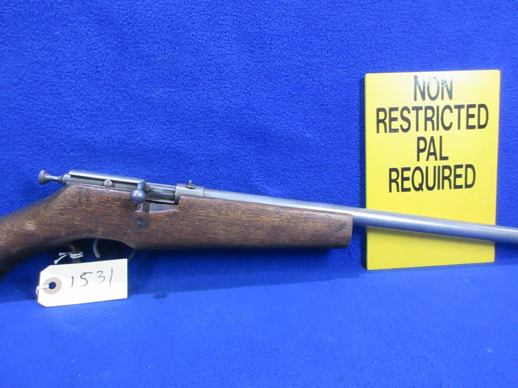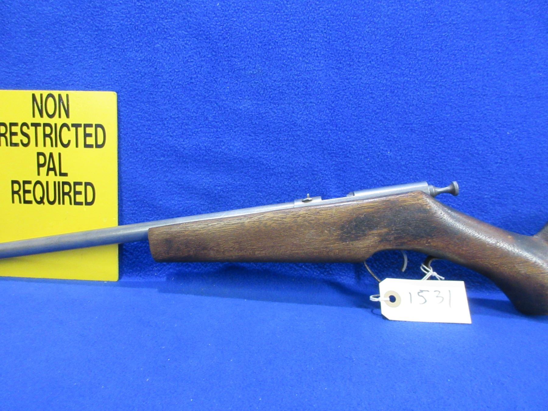 Non-Restricted - Eatonia by Cooey in 22 LR - This is a single shot bolt action rifle, action appears to be in good working order but needs cleaning. Barrel is 18", rifling is good to very good, bluing is gone, has both sights, stock is good but does not appear original, length of pull is 12 3/4", butt plate good, swivel studs missing. Ser # None