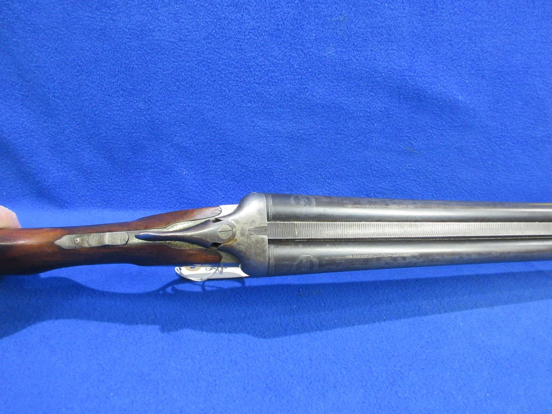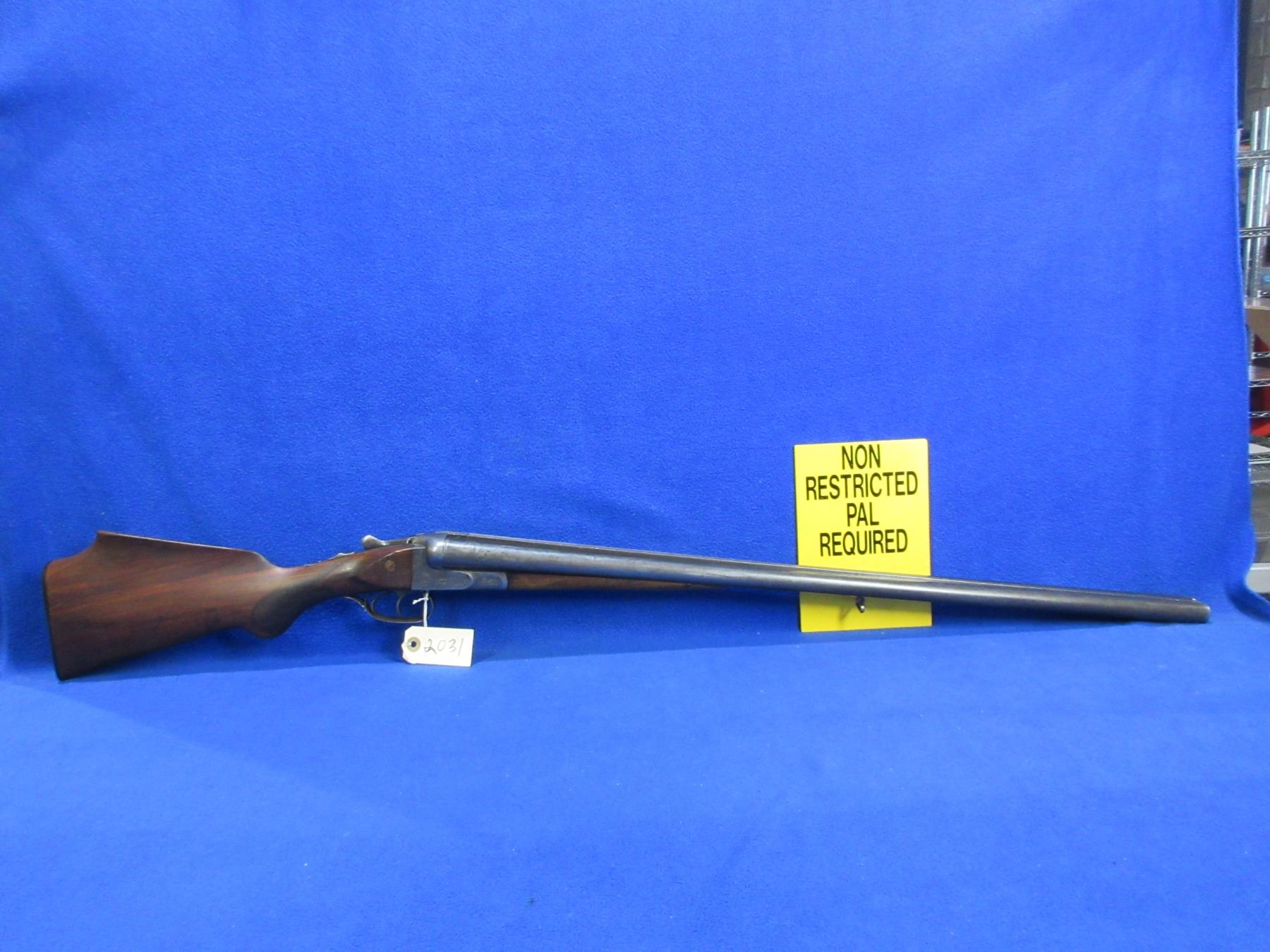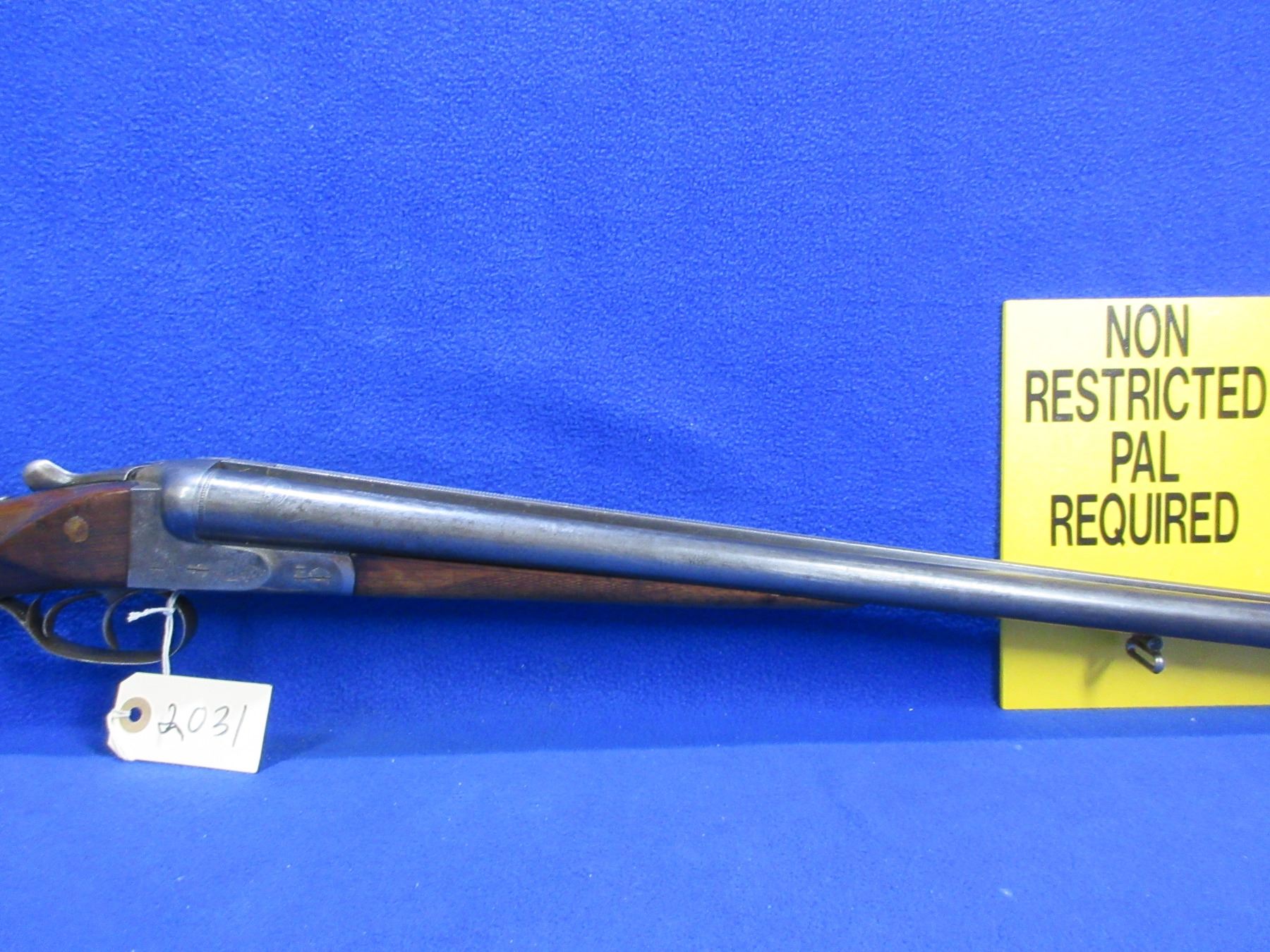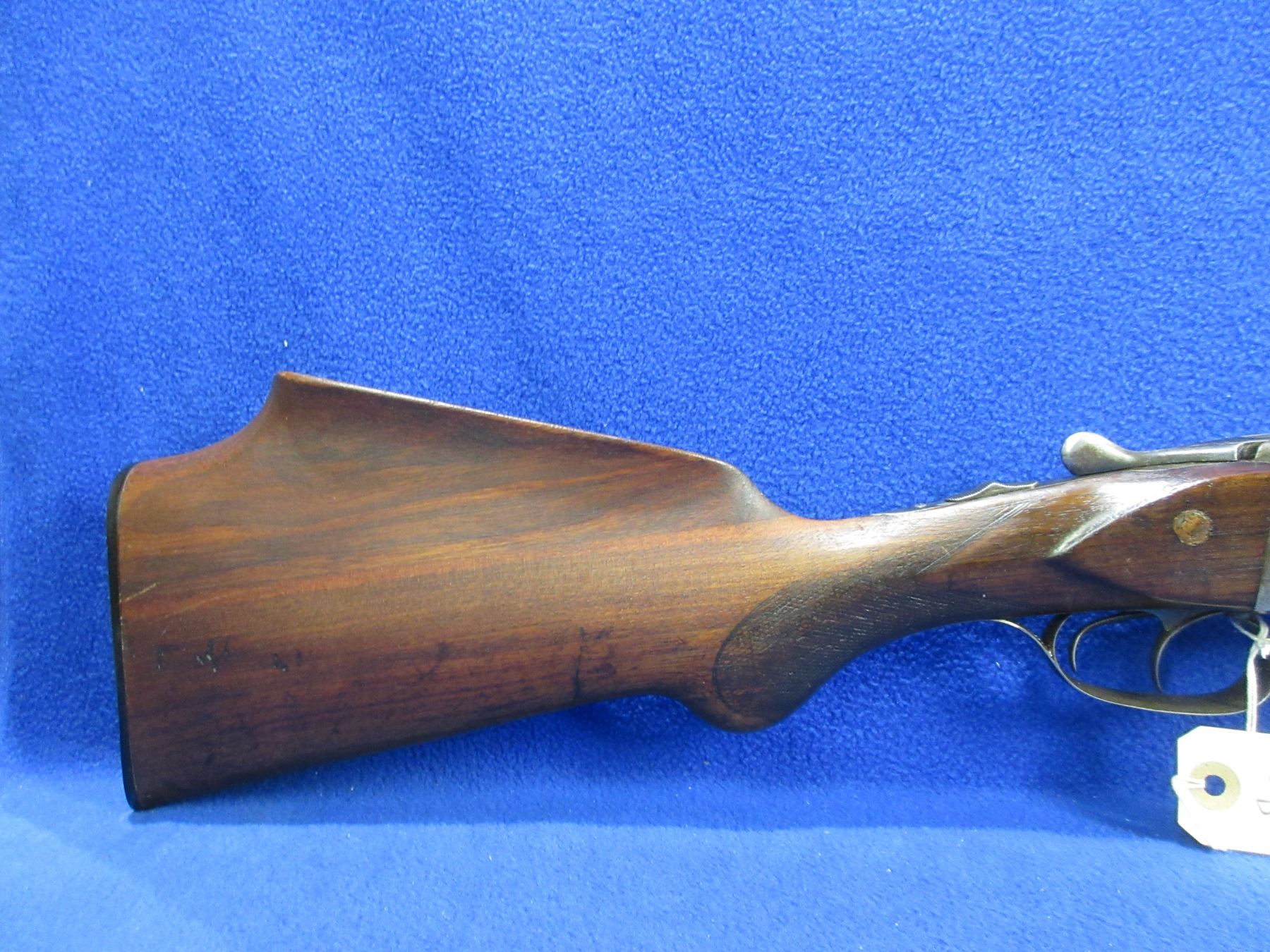 Non-Restricted - Geco SXS in 12 Ga. 2 3/4" - This is a tip up SXS shotgun, action is tight and appears to be in good to very good working order. Barrels are 28 3/4", bores are good to very good, bluing is fair to good, has bead front sight, stock is loose and has been modified as comb has been raised, forearm is good to very good, length of pull is 13", butt plate good, comes with front swivel, rear swivel missing. Ser # 304556