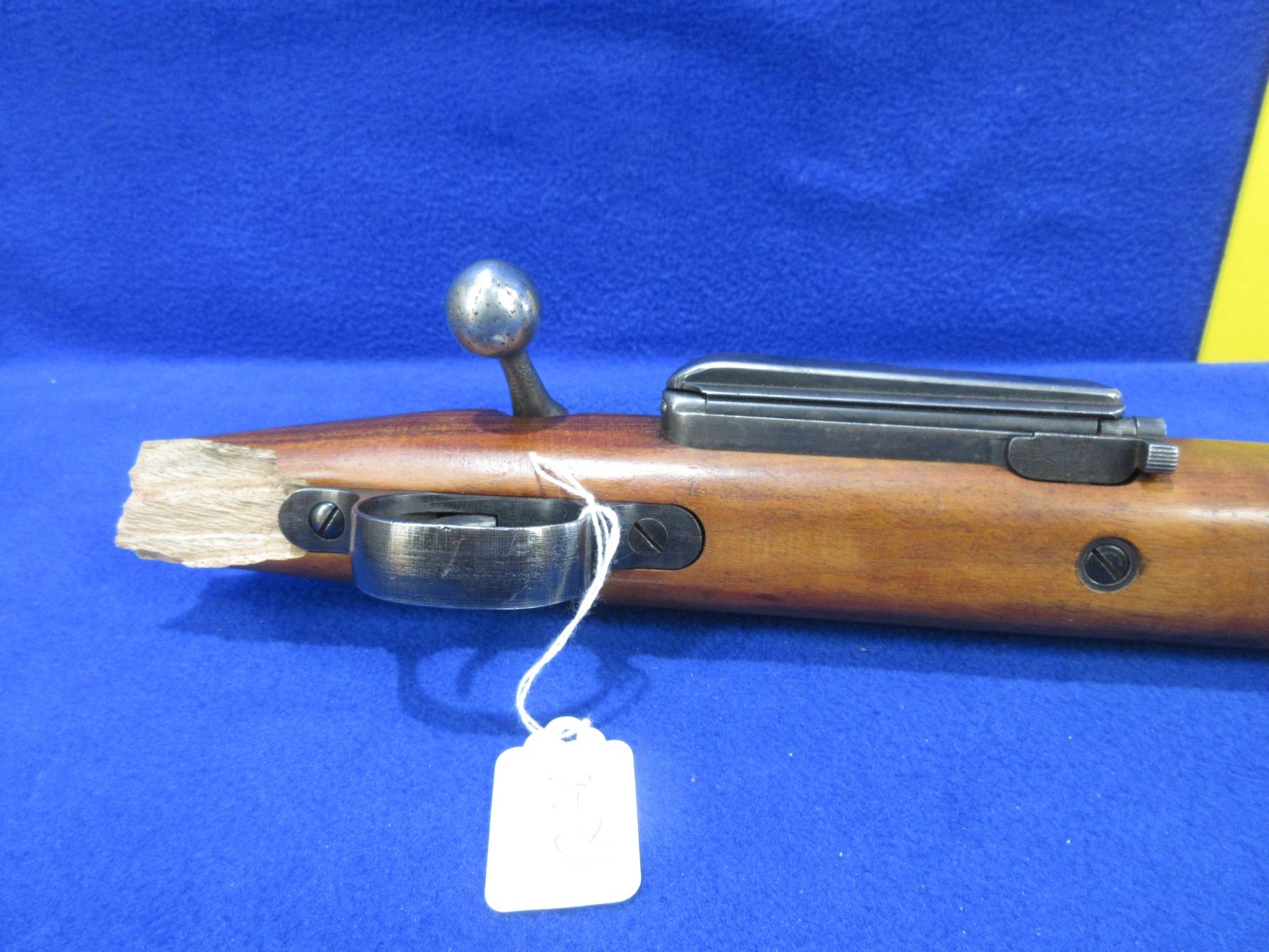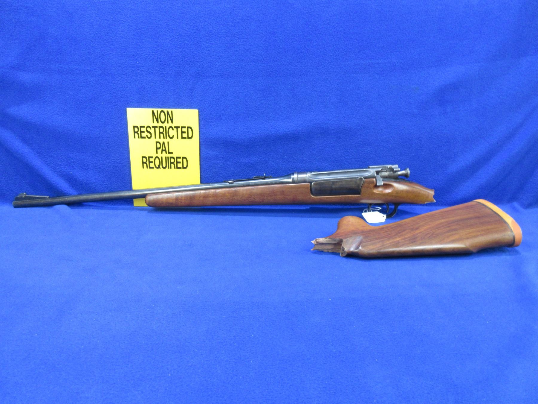 Non-Restricted - Globe Firearms Krag-Jorgenson in 308 Win. - This bolt action rifle with internal magazine appears to be in good to very good working order but stock is broken. Barrel is 22", rifling is good to very good, bluing is good to very good, has both sights, stock was broken in shipping to us, so is a fresh break, rubber butt plate. Ser # 27329