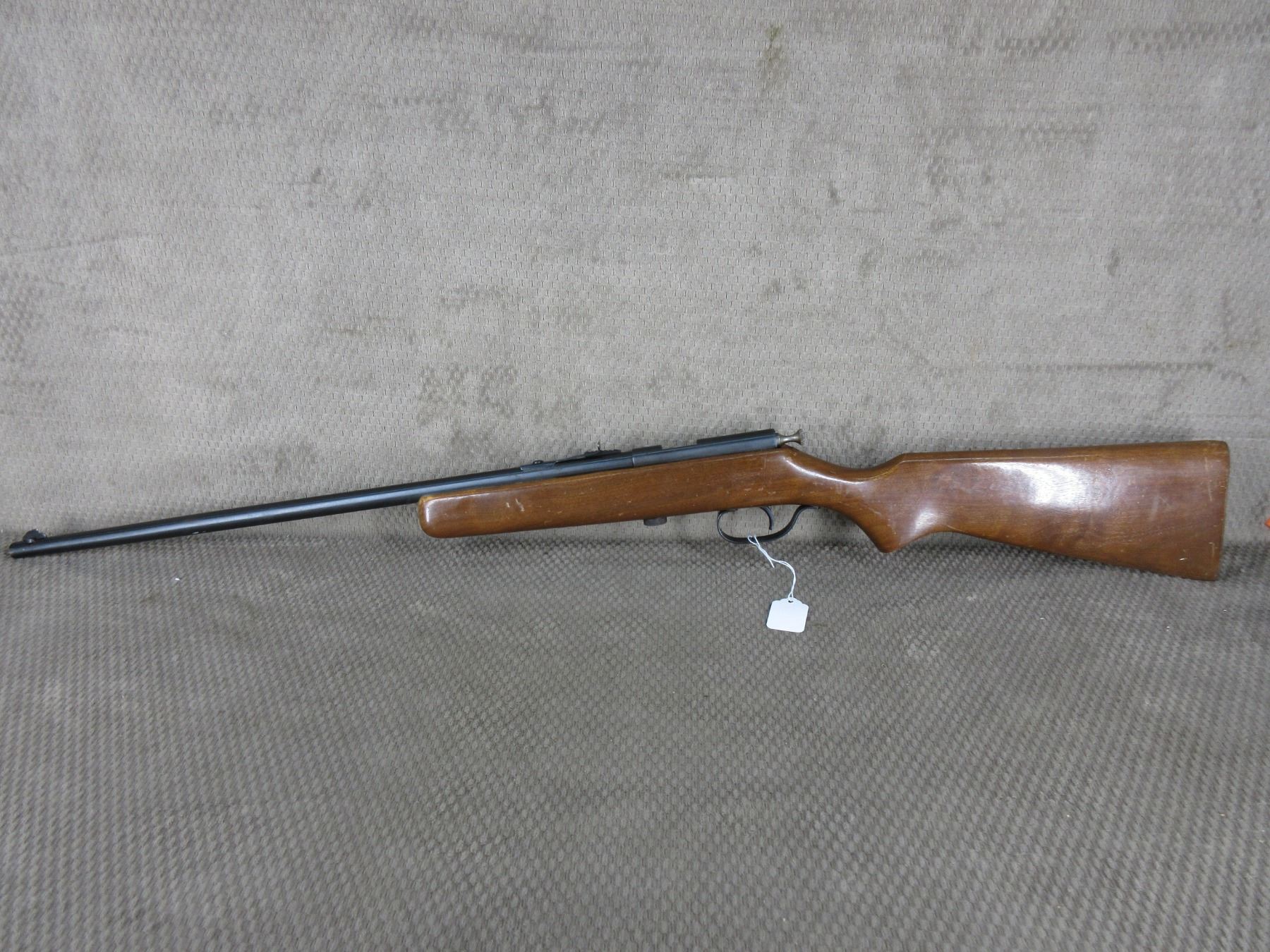 Non-Restricted - Hiawatha (Cooey Model 39) in Long Rifle - This single shot bolt action rifle appears to be in very good working. Barrel is 22", rifling is very good to excellent, bluing is very good, has both sights, stock is good with usage marks, has steel butt plate.
