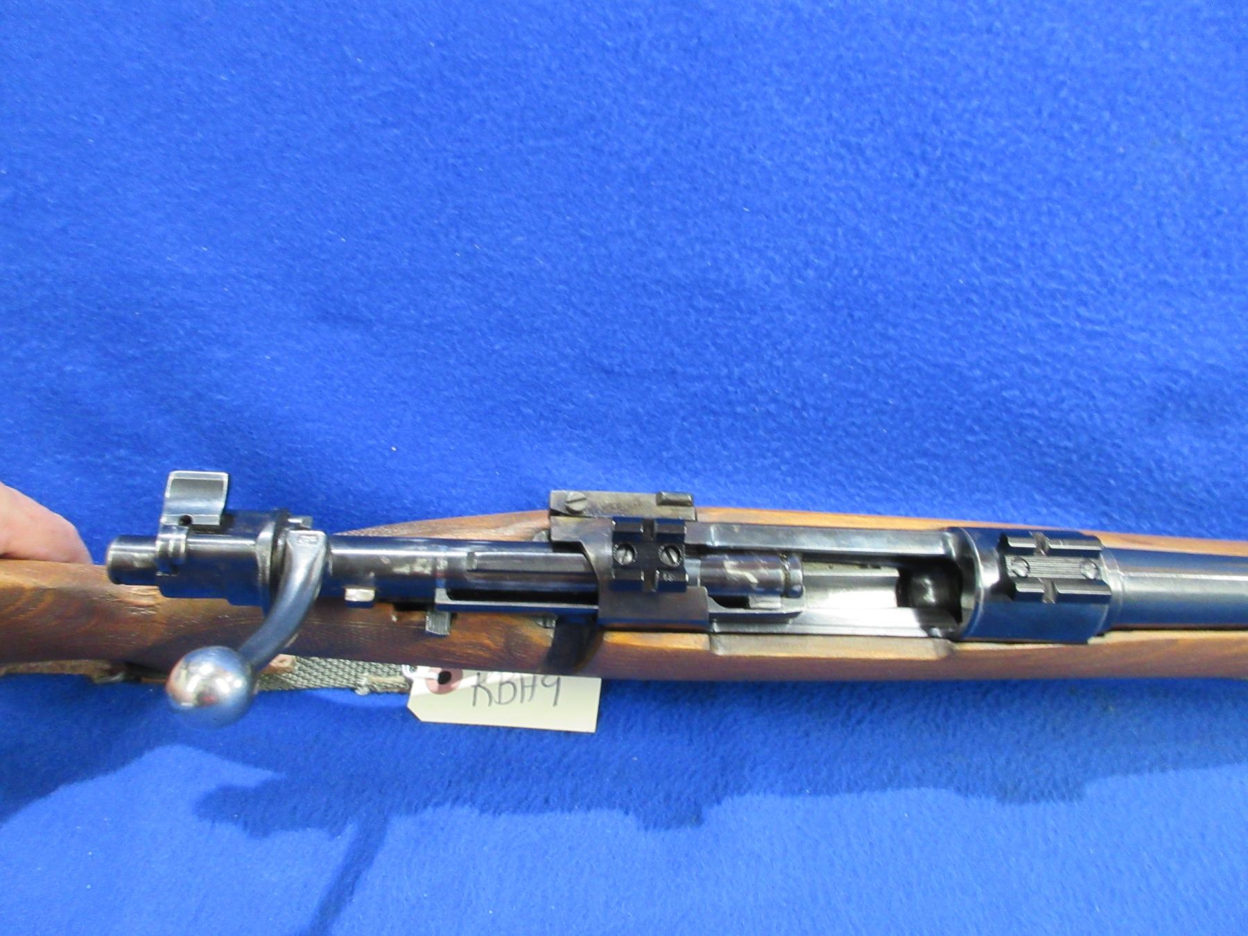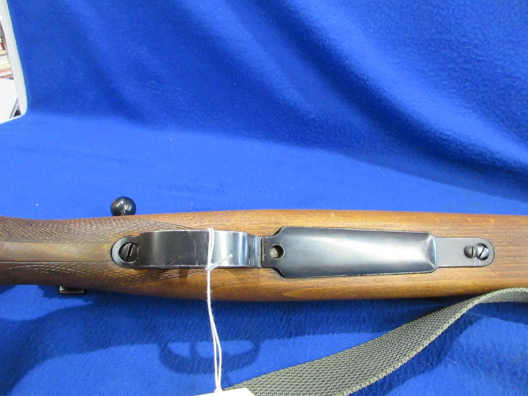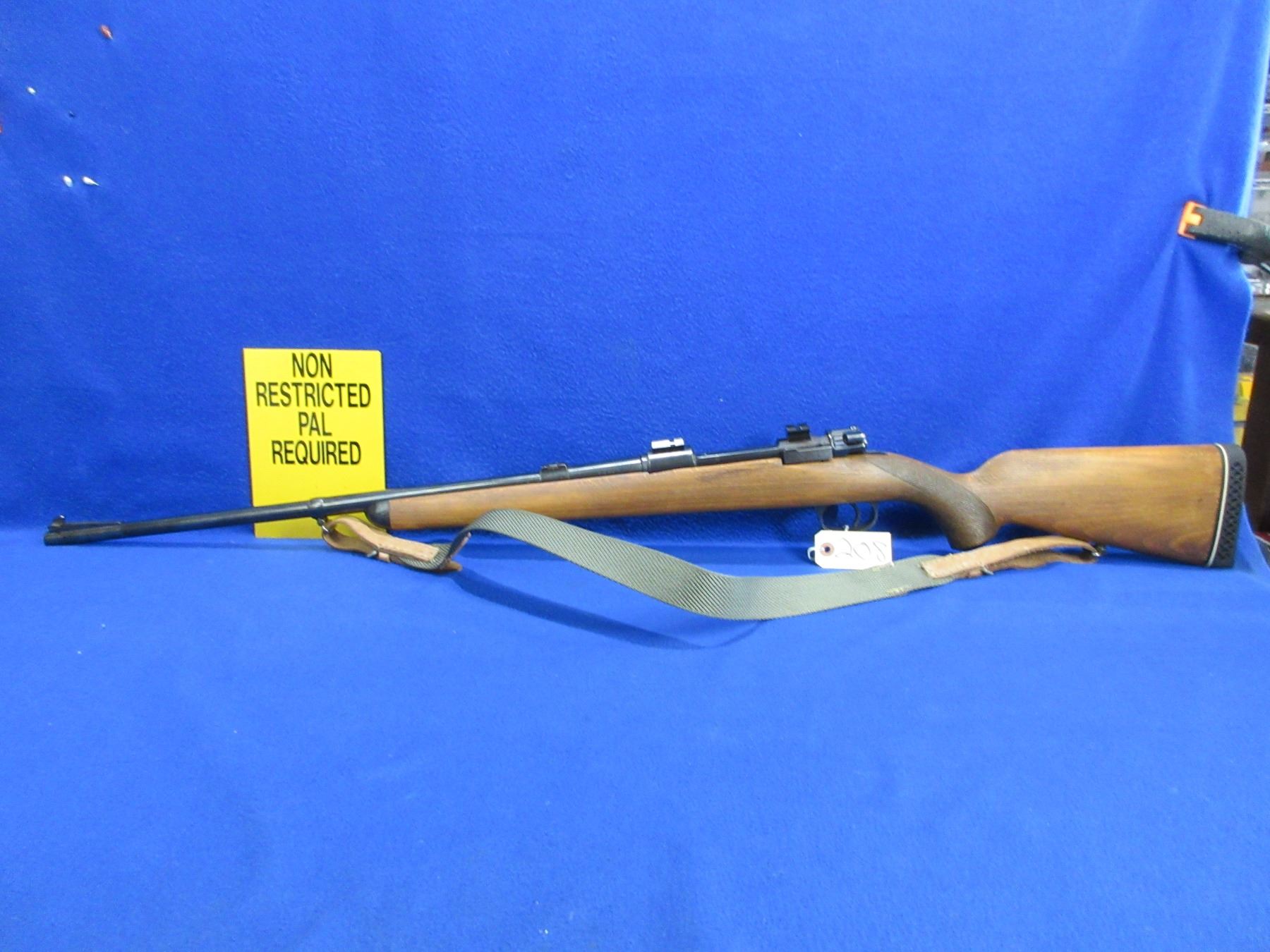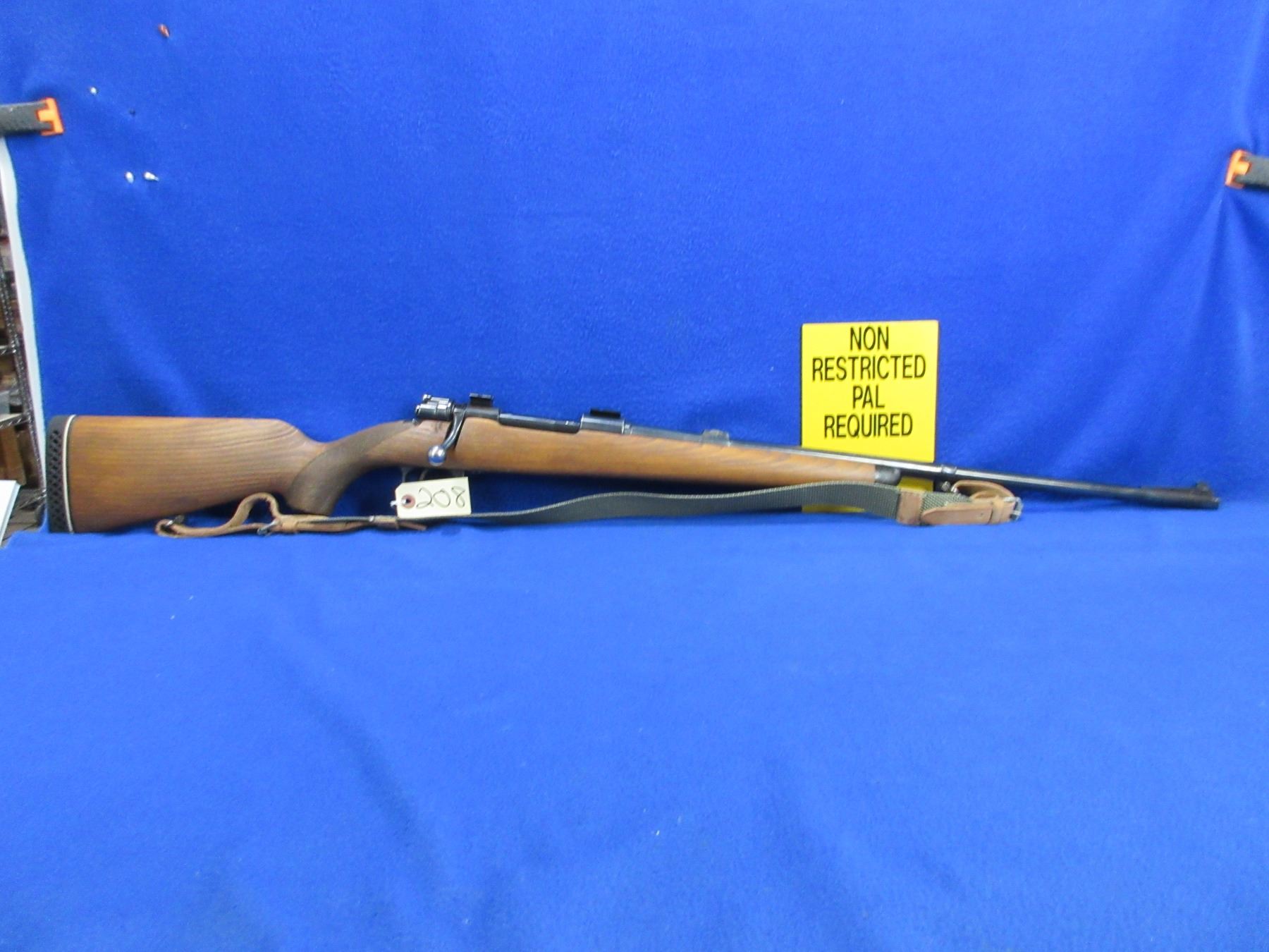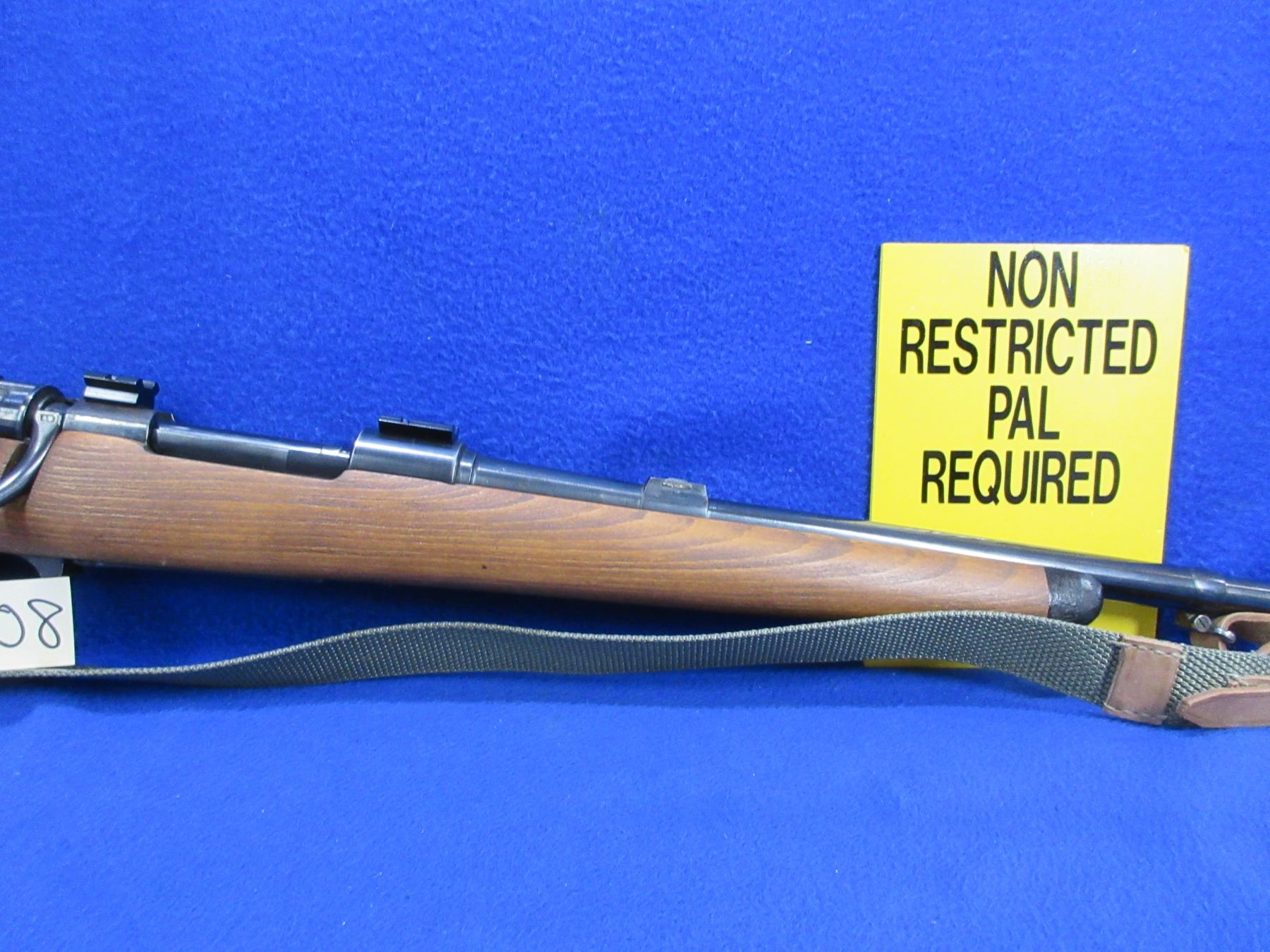 Non-Restricted - Husqvarna Model 98 in 8x57 - This bolt action rifle with floorplate magazine appears to be in good to very good working order. Barrel is 24", rifling is very good, bluing is good, has front sight, rear sight missing but has Weaver style bases, stock is good to very good, wrist cap is chipped, rubber recoil pad good, comes with swivels and sling. Ser # 58247