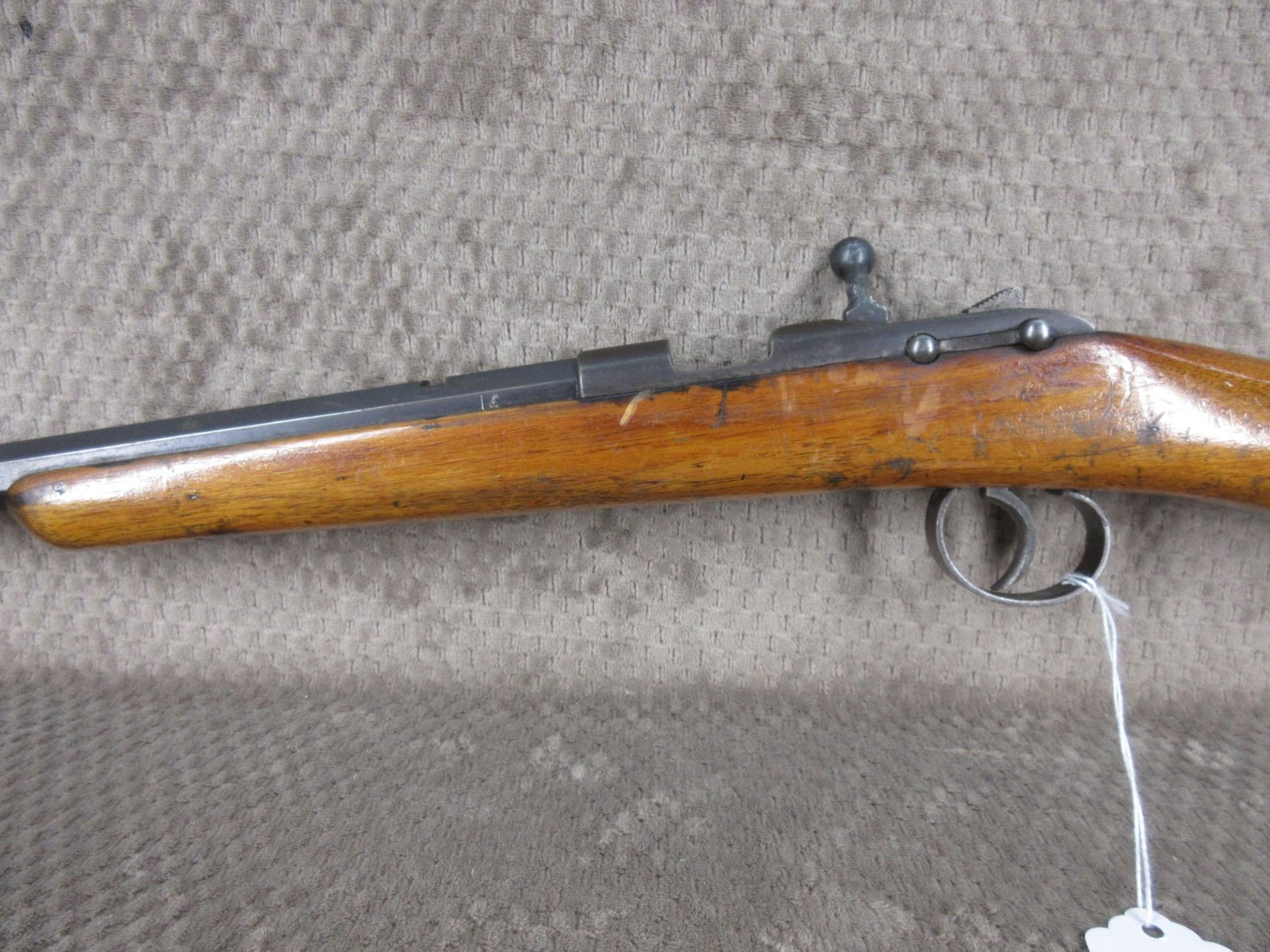 Non-Restricted - Husqvarna Sporter in 22 Long Rifle - This single shot bolt action rifle appears in working order, bluing is good with some spots missing, rifling is good to very good, barrel may have been cut to 21 1/2 inches, bolt handle appears to have been welded, wood is good with no cracks.