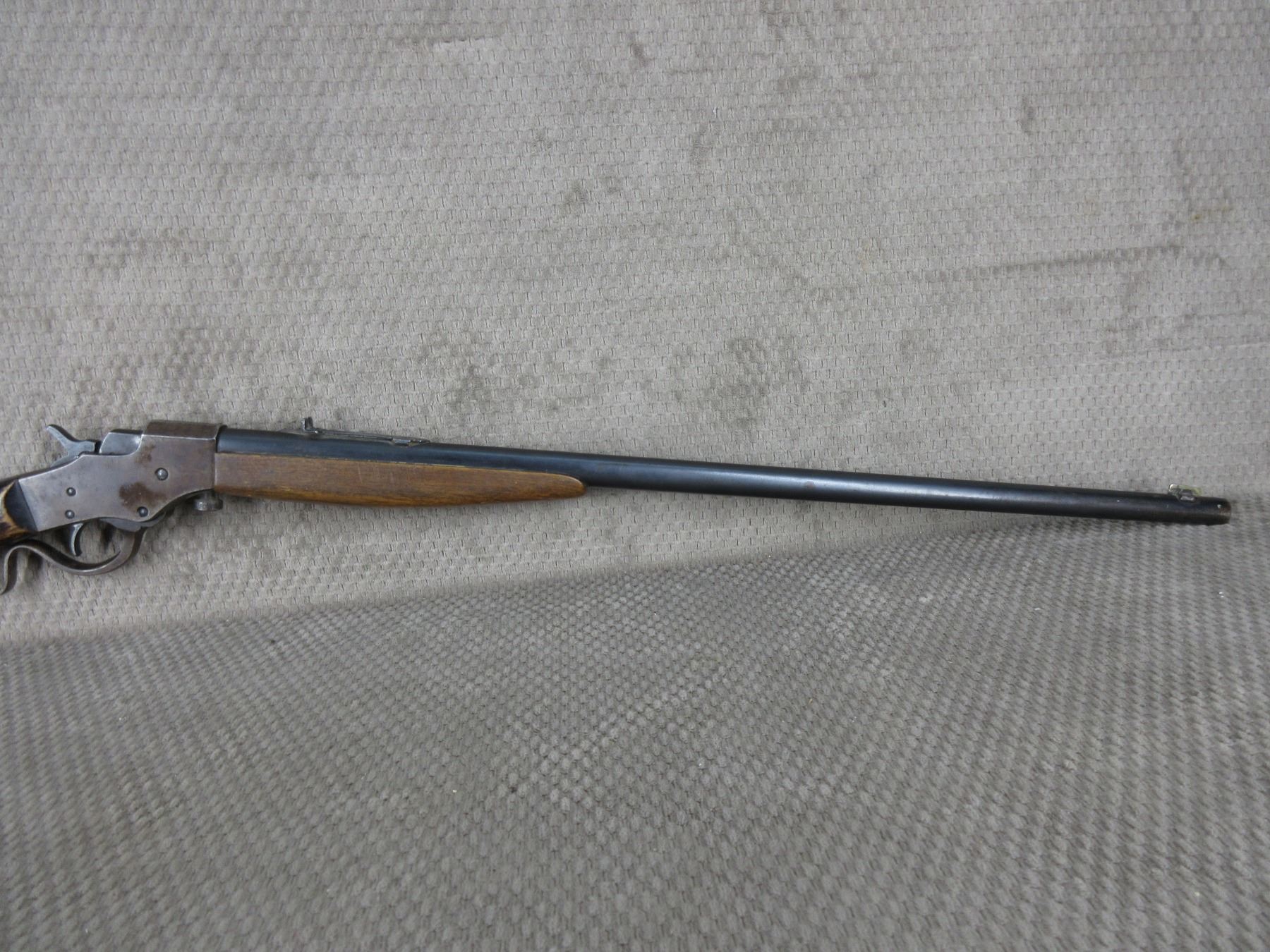Non-Restricted - J. Stevens 1915 Favorite 25 Stevens - This single shot falling block rifle appears to be in good working. Barrel is 24", bore is very good, bluing good with some wear, has both sights, stock is cracked in wrist area and has been painted, forearm is good, wood butt plate.