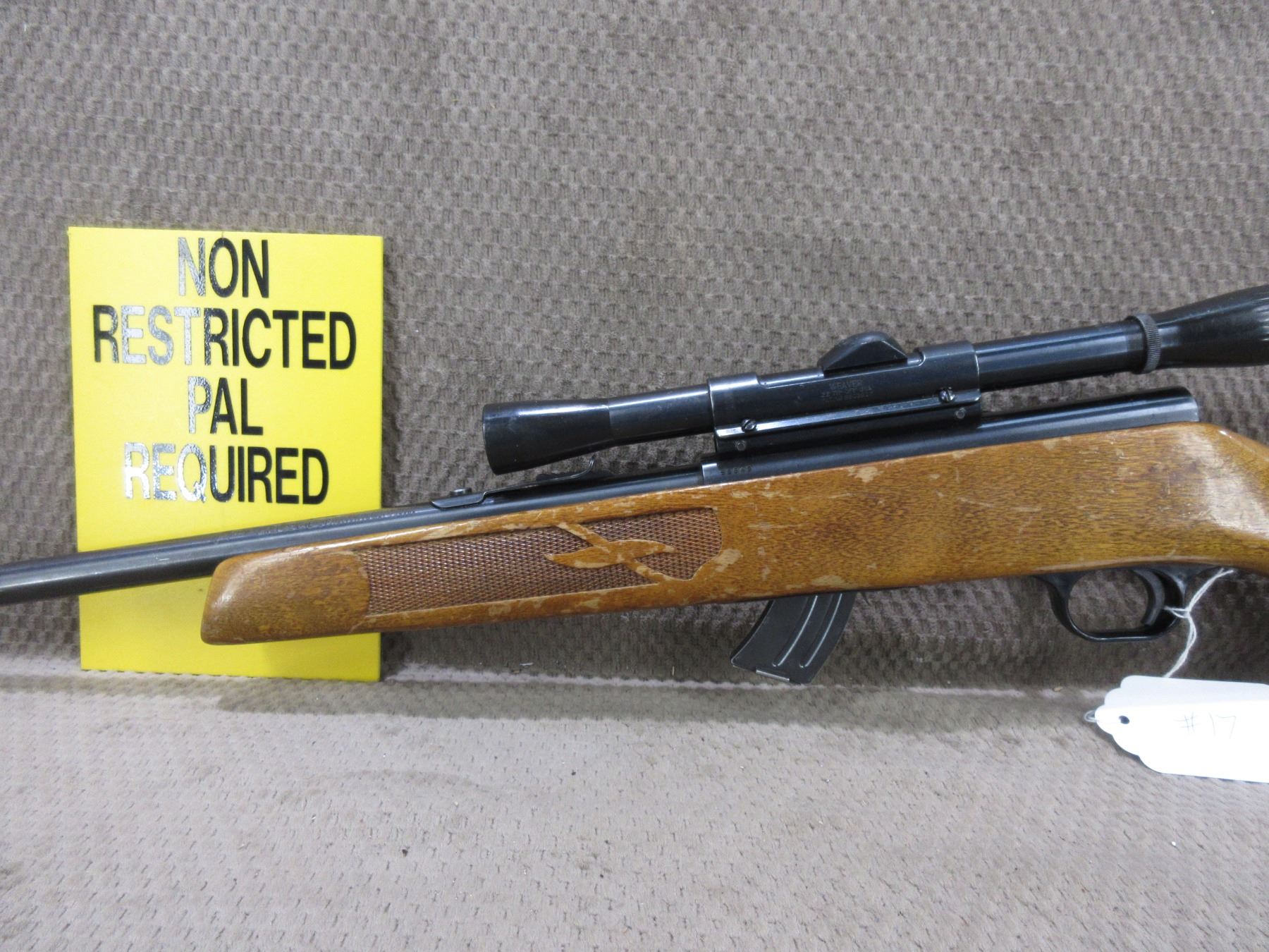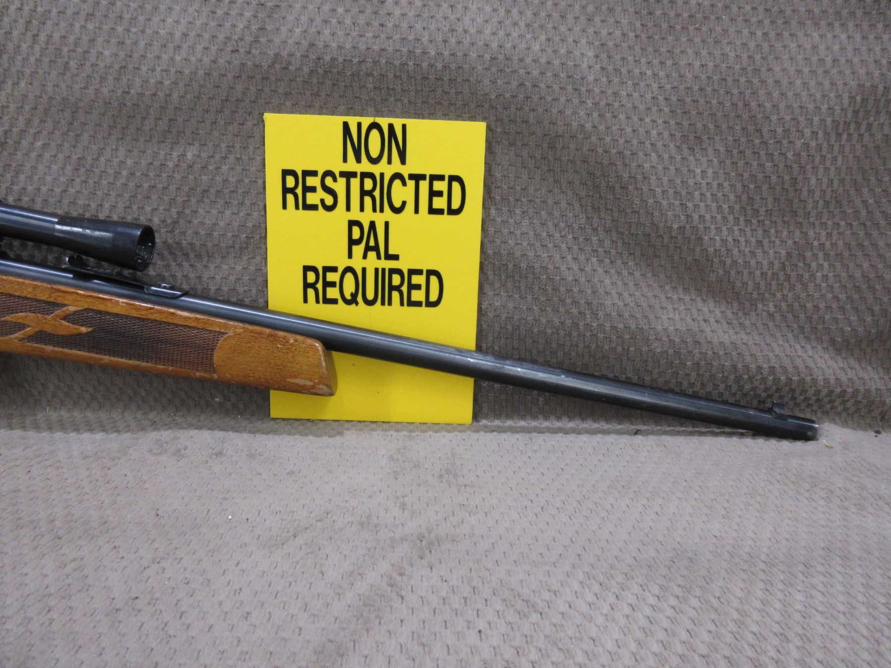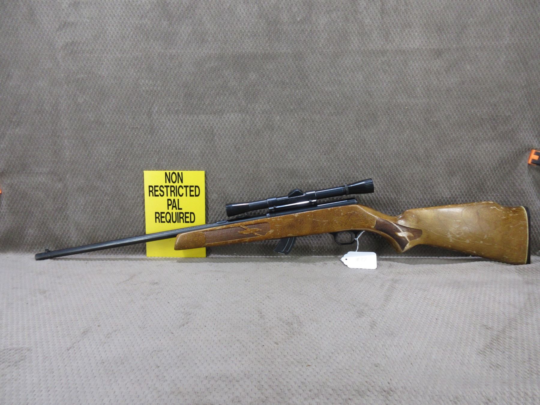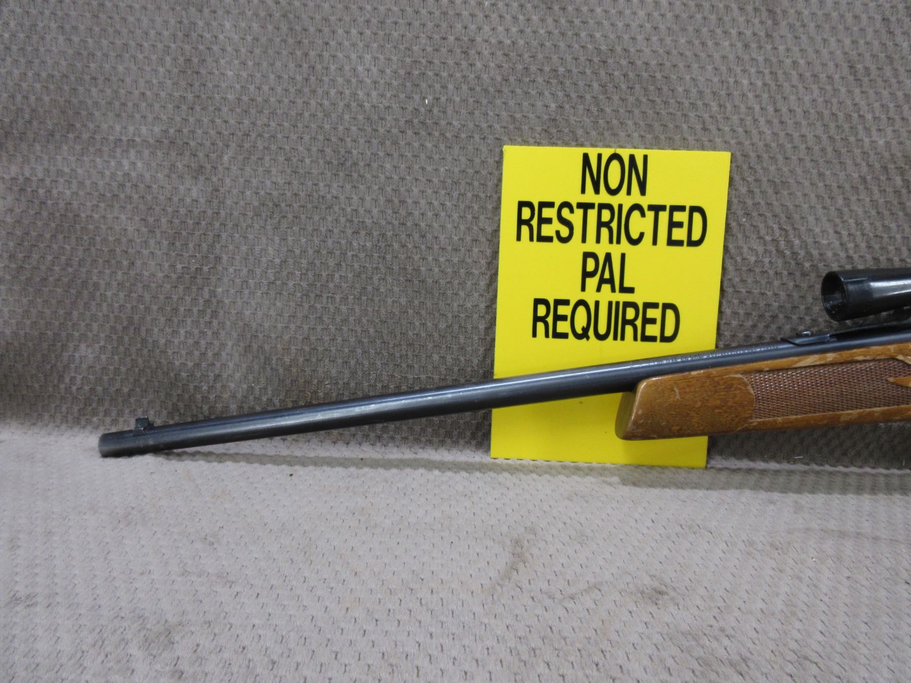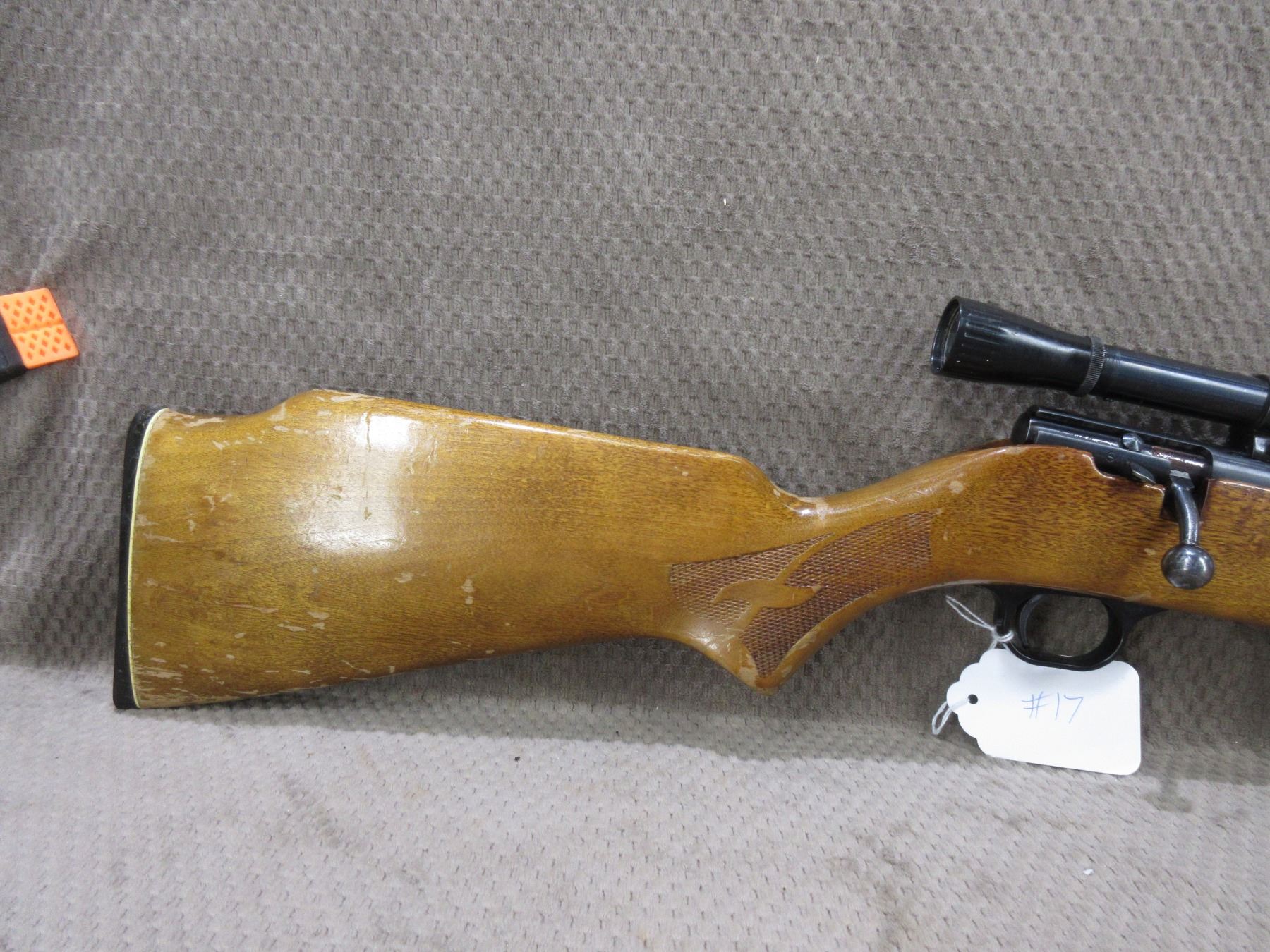 Non-Restricted - Lakefield Mark II in 22 LR - This bolt-action magazine feed rifle appears to be in good to very good working order. Barrel 21", bluing is fair to good , rifling is good, has both sights and Weaver 22 scope - appears clear, fine crosshair, stock good with various usage marks and finish is flaking, butt plate good, Ser # 58849