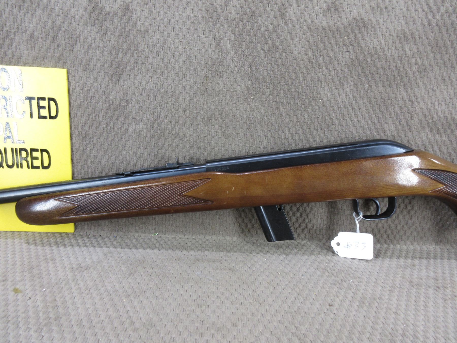 Non-Restricted - Lakefield Model 64B in 22 LR - This semi-auto rifle with magazine appears to be in good to very good working order. Barrel 20", bluing is very good, rifling is very good, has both sights, stock good to very good with usual marks, butt plate good, Ser # L135326