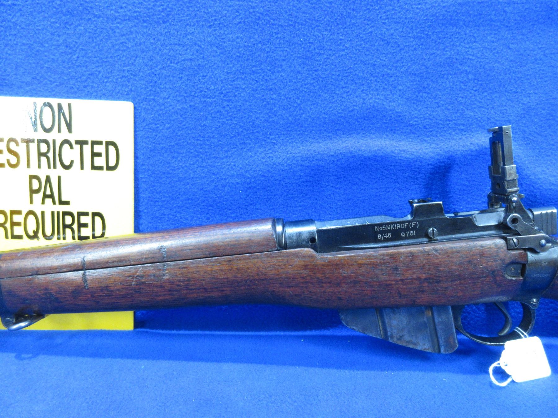 Non-Restricted - Lee Enfield No. 5 Mark I ROF in 303 British - This jungle carbine bolt action rifle with magazine appears to be in good to very good working order. Barrel is 19", rifling is good to very good, bluing is good to very good, has both sights, stock good to very good, butt plate good. Ser # Q751