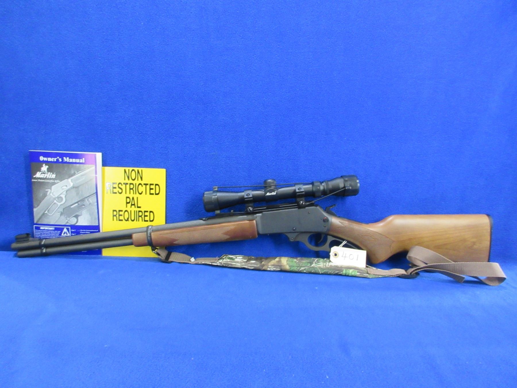 Non-Restricted - Marlin Model 336W in 30-30 Win. - This is a very nice/clean lever action rifle with tube magazine, action appears to be in very good working order. Barrel is 20", rifling is very good, matte black finish is very good, has both sights and a Marlin 3-9x32 scope with lens covers - appears clear, duplex reticle, stock and forearm are very good with a few minor usage marks, length of pull is 13 1/2", butt plate very good, comes with swivels and a strap. Ser # MR94394E