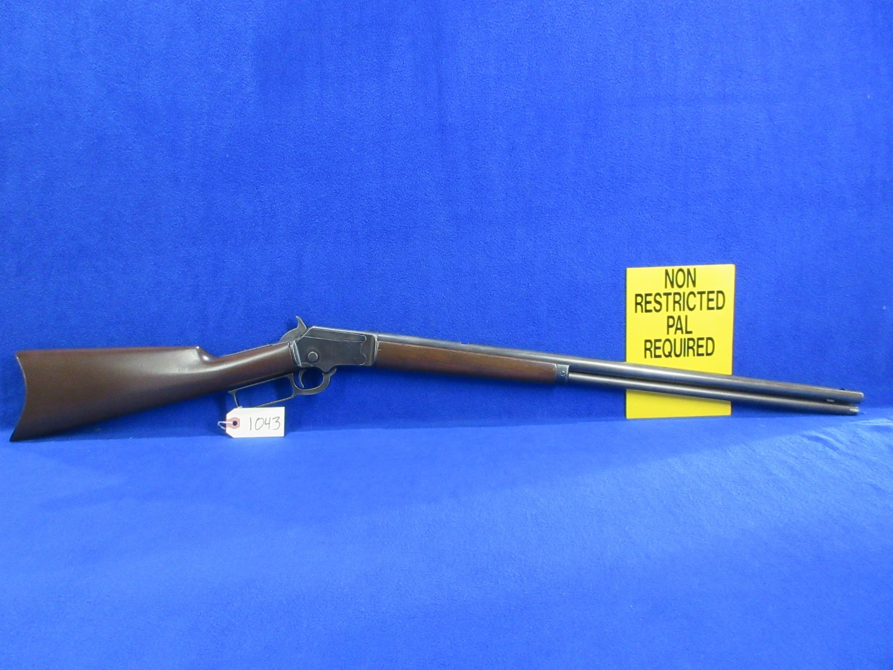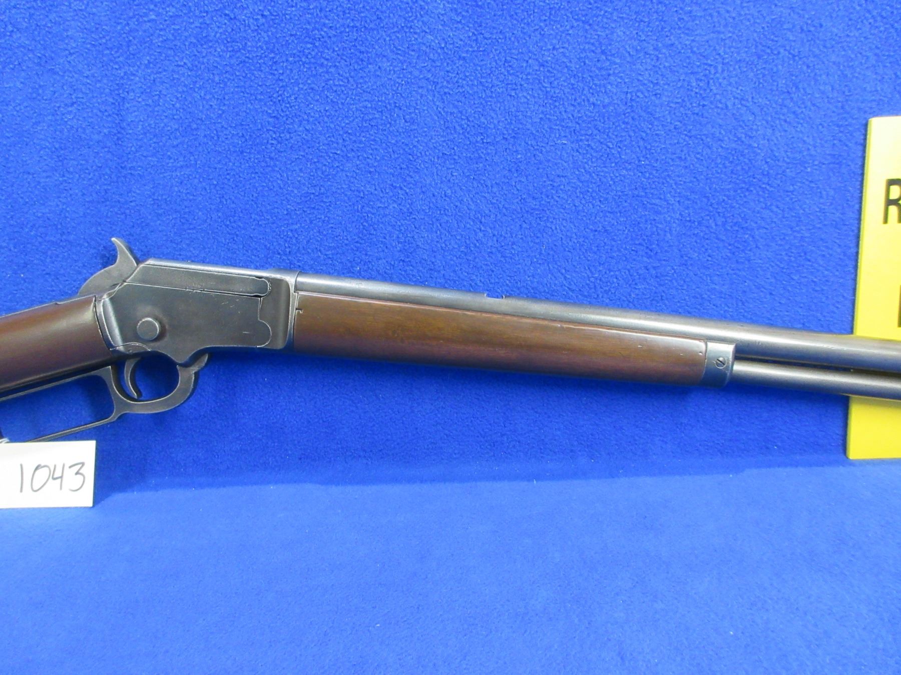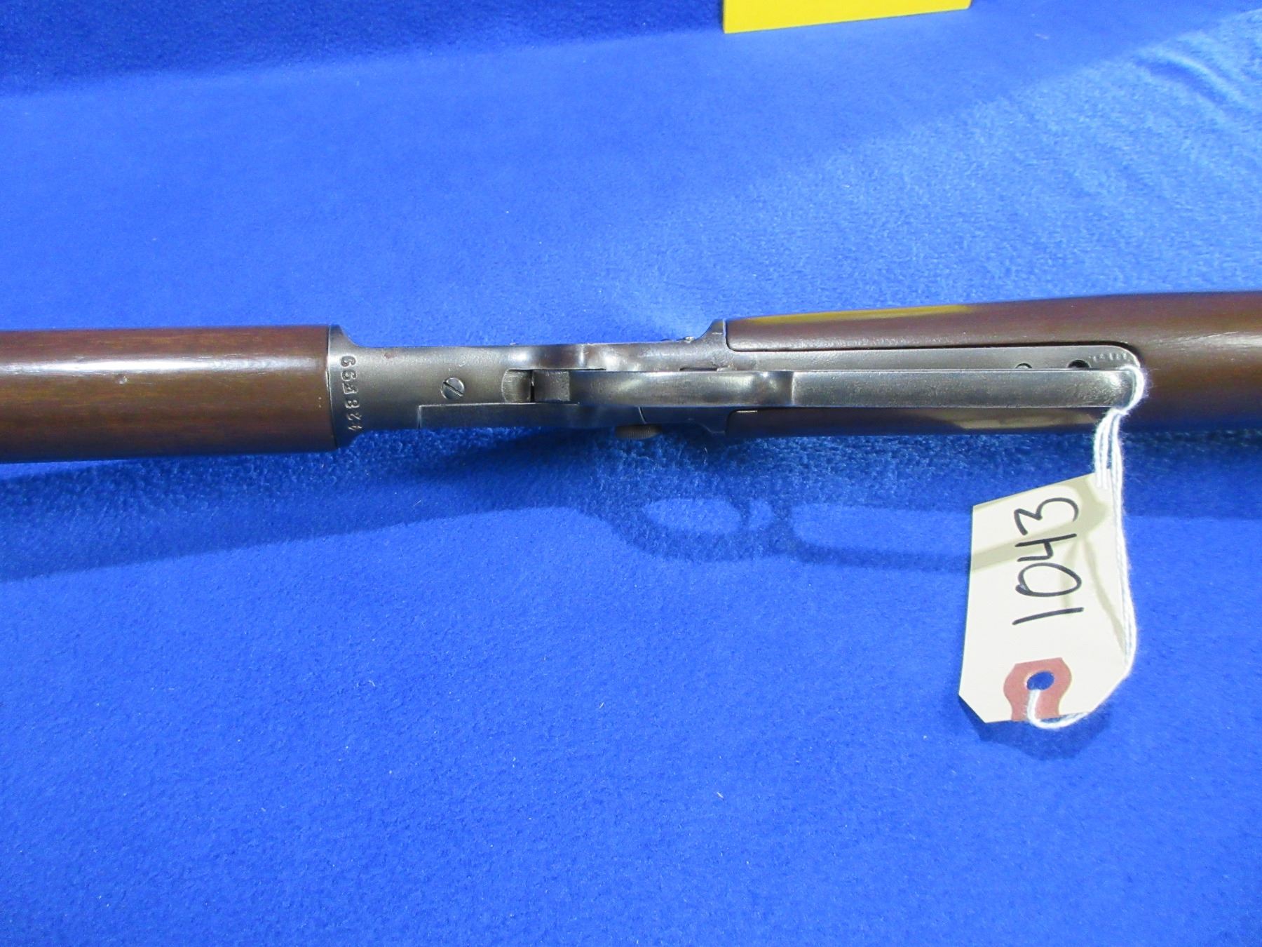 Non-Restricted - Marlin Model 92 in 32 Rimfire - This lever action rifle with tube magazine is in non working order as it is missing ejector and shell lifter. Barrel is 24", rifling is poor, bluing is turning grey, has no sights, stock and forearm are good to very good but appear refinished, crescent metal butt plate good. Ser #428599
