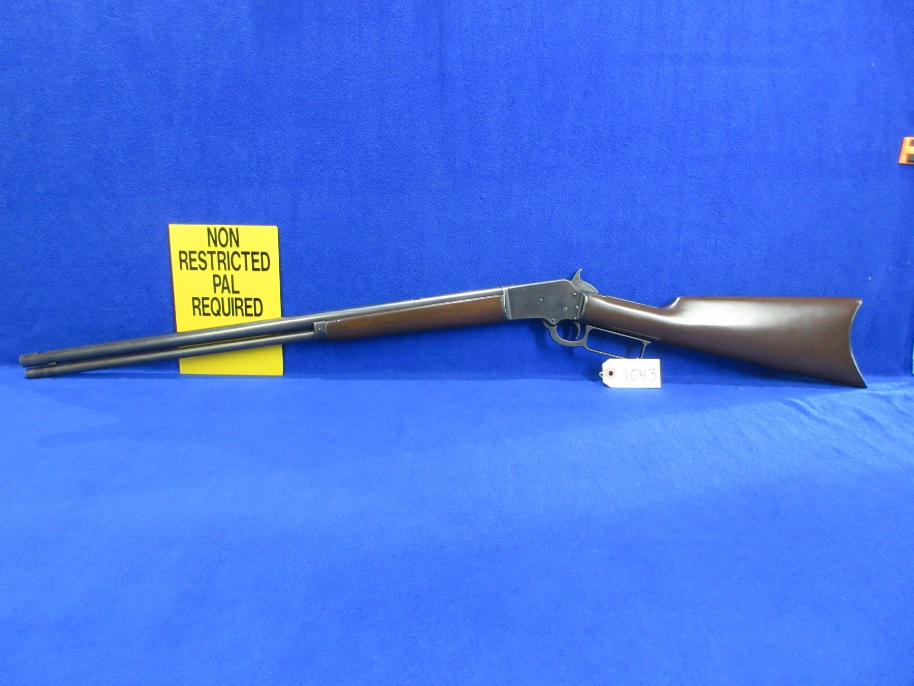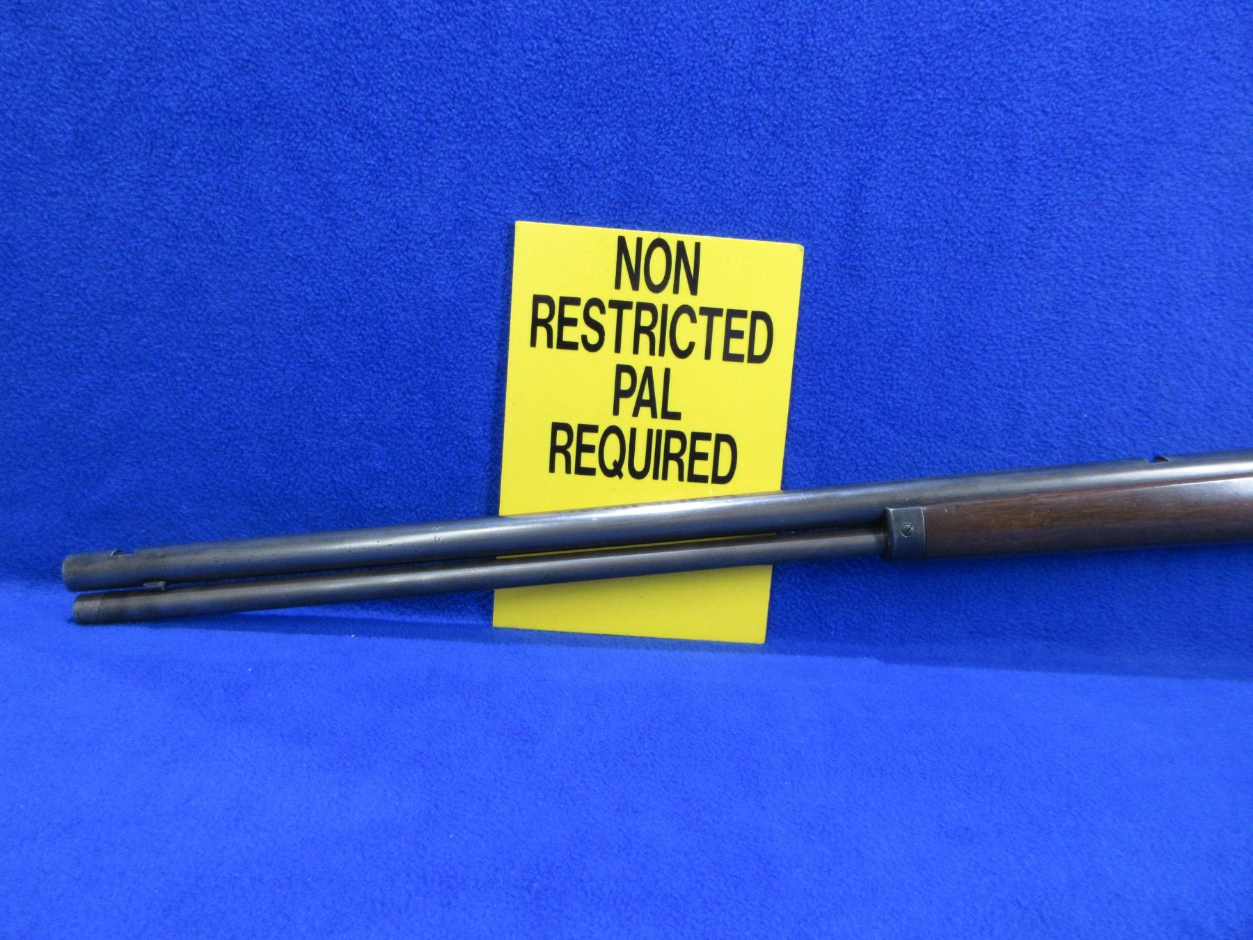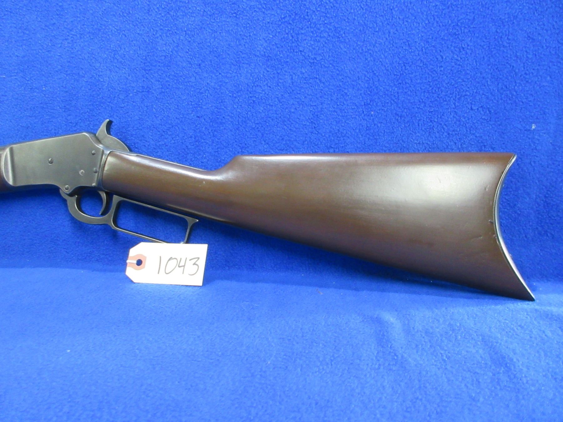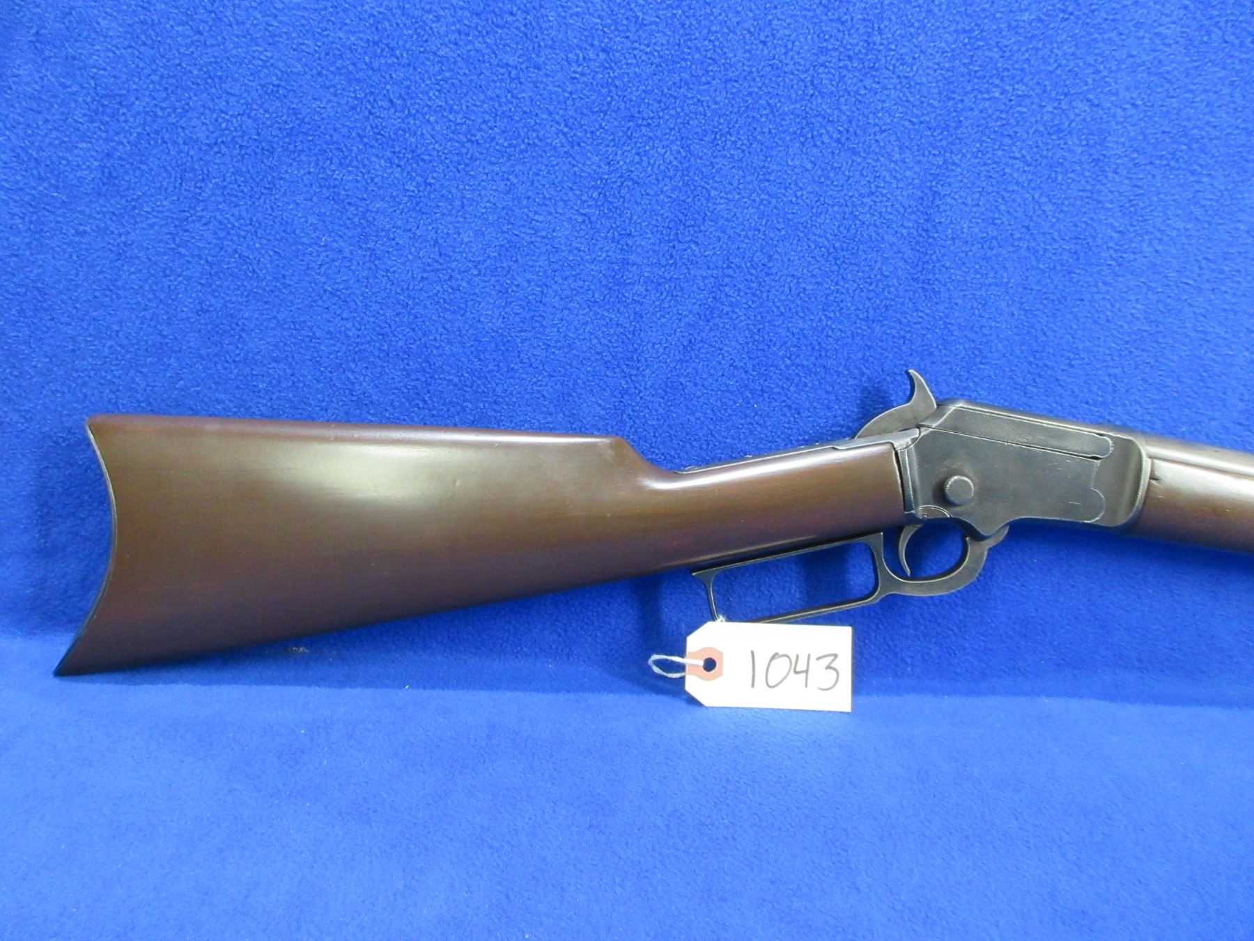 Non-Restricted - Marlin Model 92 in 32 Rimfire - This lever action rifle with tube magazine is in non working order as it is missing ejector and shell lifter. Barrel is 24", rifling is poor, bluing is turning grey, has no sights, stock and forearm are good to very good but appear refinished, crescent metal butt plate good. Ser #428599