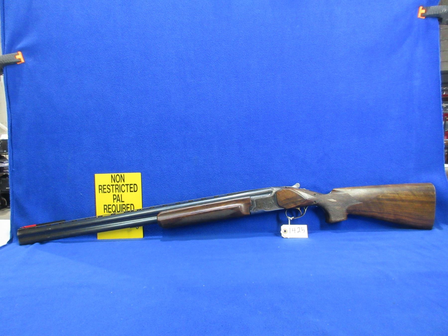 Non-Restricted - Miroku Model 800 in 12 Ga. 2 3/4" - This is an over/under shotgun with extractors, action is tight and appears to be in good to very good working order. Barrels are 28", bores are good to very good, bluing is good, has fiber optic front sight, stock has a crack repair in the wrist area and a small crack by the trigger on the right side, forearm is good to very good with usage marks, length of pull is 15", has front swivel stud, rear stud is missing. Ser # 606121