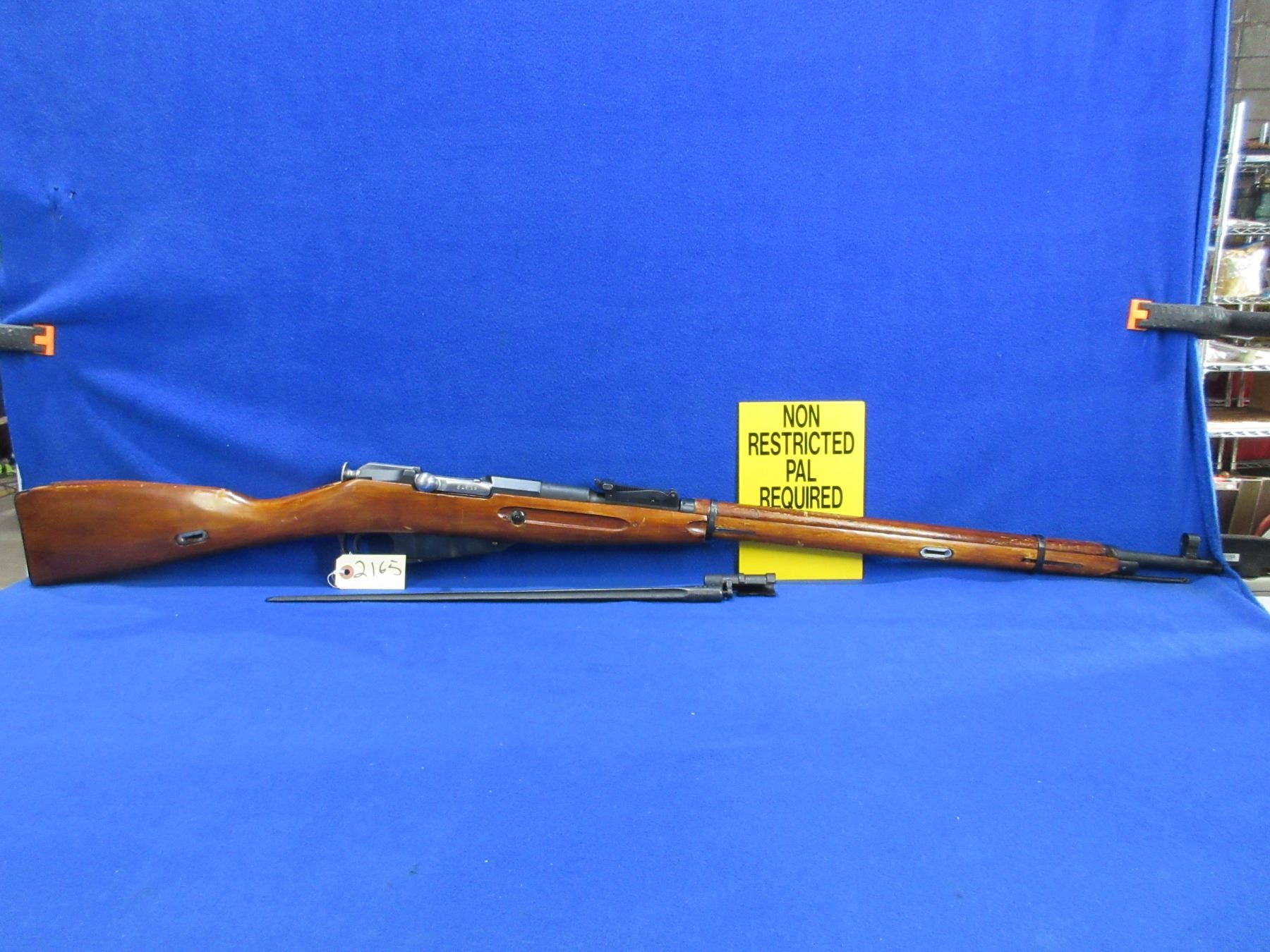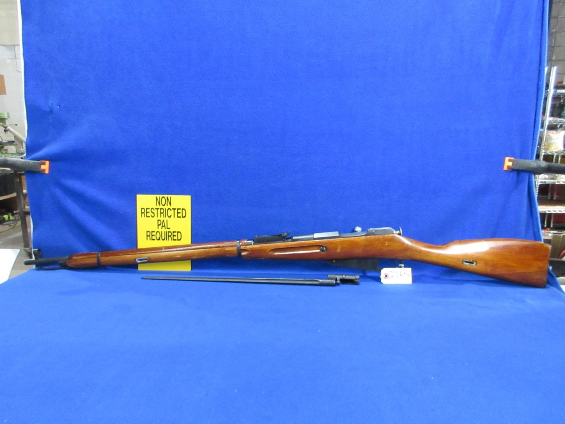 Non-Restricted - Mosin Nagant marked 1934 in 7.62x54R - This bolt action rifle with floorplate magazine appears to be in good to very good working order. Barrel is 29", rifling is good but dark (needs wet cleaning), bluing is good, has both sights, full wood stock is good for age, metal butt plate good, comes with bayonet. Ser #61979