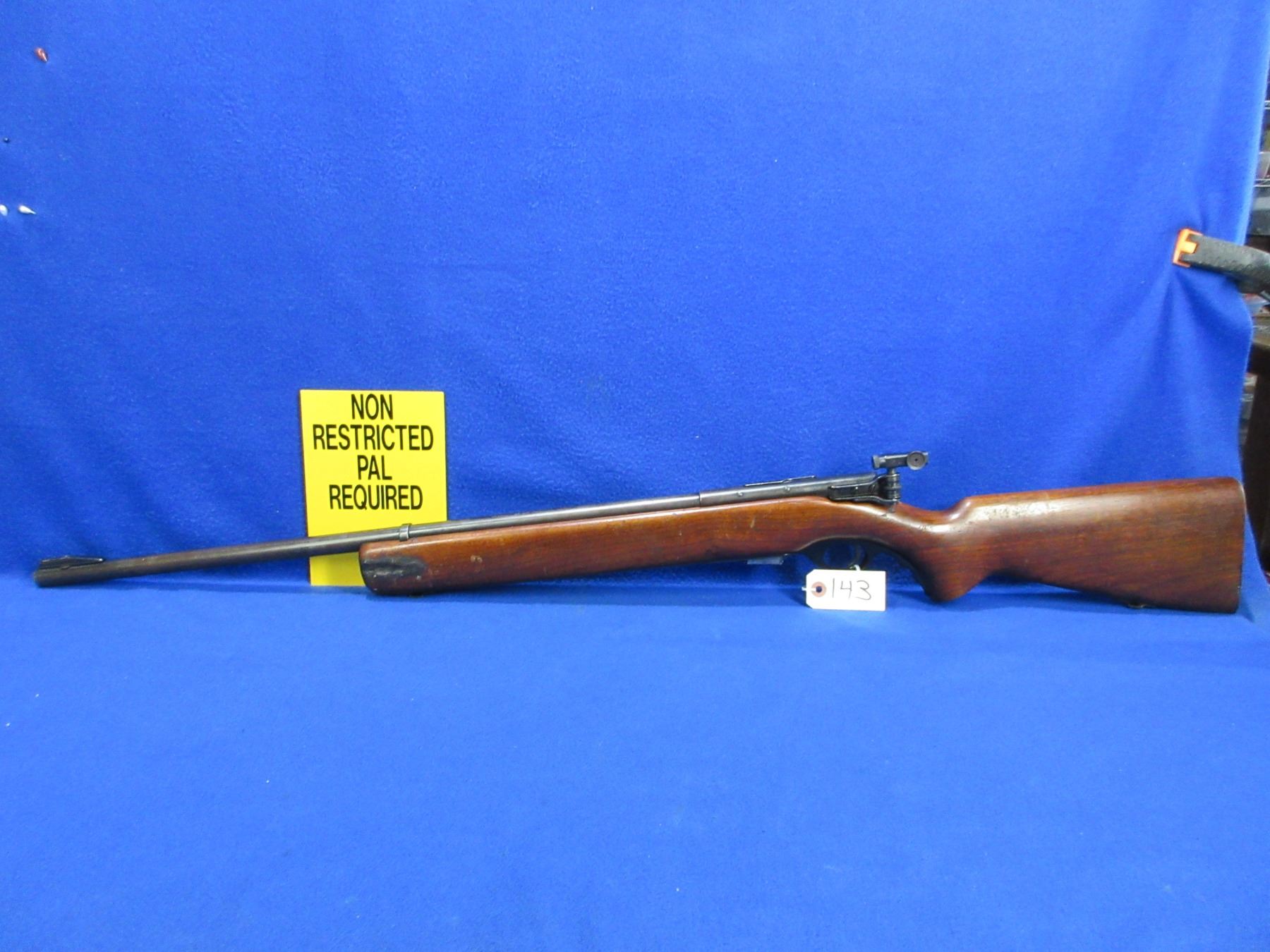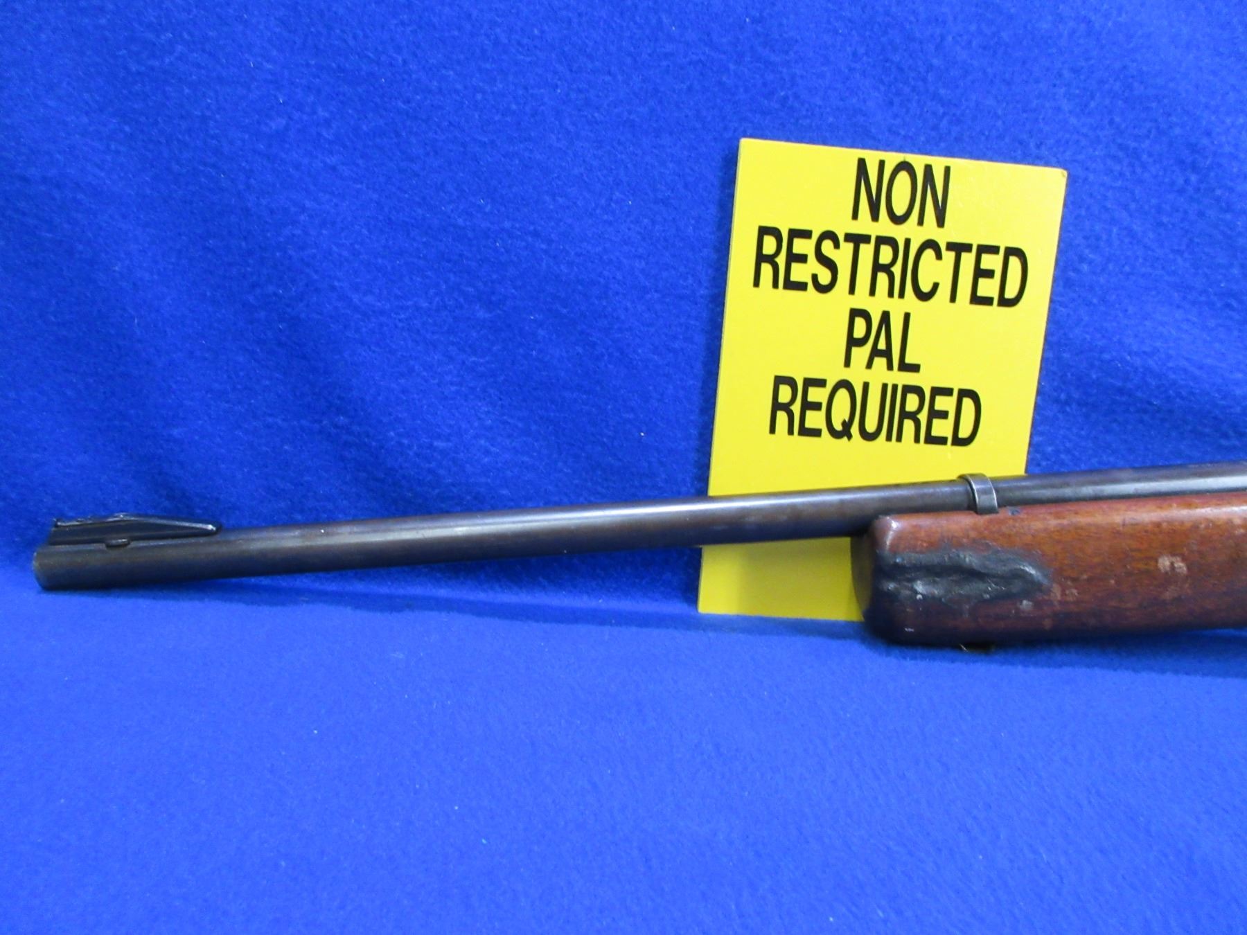 Non-Restricted - Mossberg Model 44US(c) in 22 LR - This bolt action rifle with removable magazine appears to be in good to very good working order. Barrel is 26", rifling is good to very good, bluing is turning brown or gone, has Mossberg front and rear peep sights, stock has crack repairs on the right and left side above trigger and a large chip repair left side of forearm, metal butt plate good, comes with swivel mounts. Ser # None