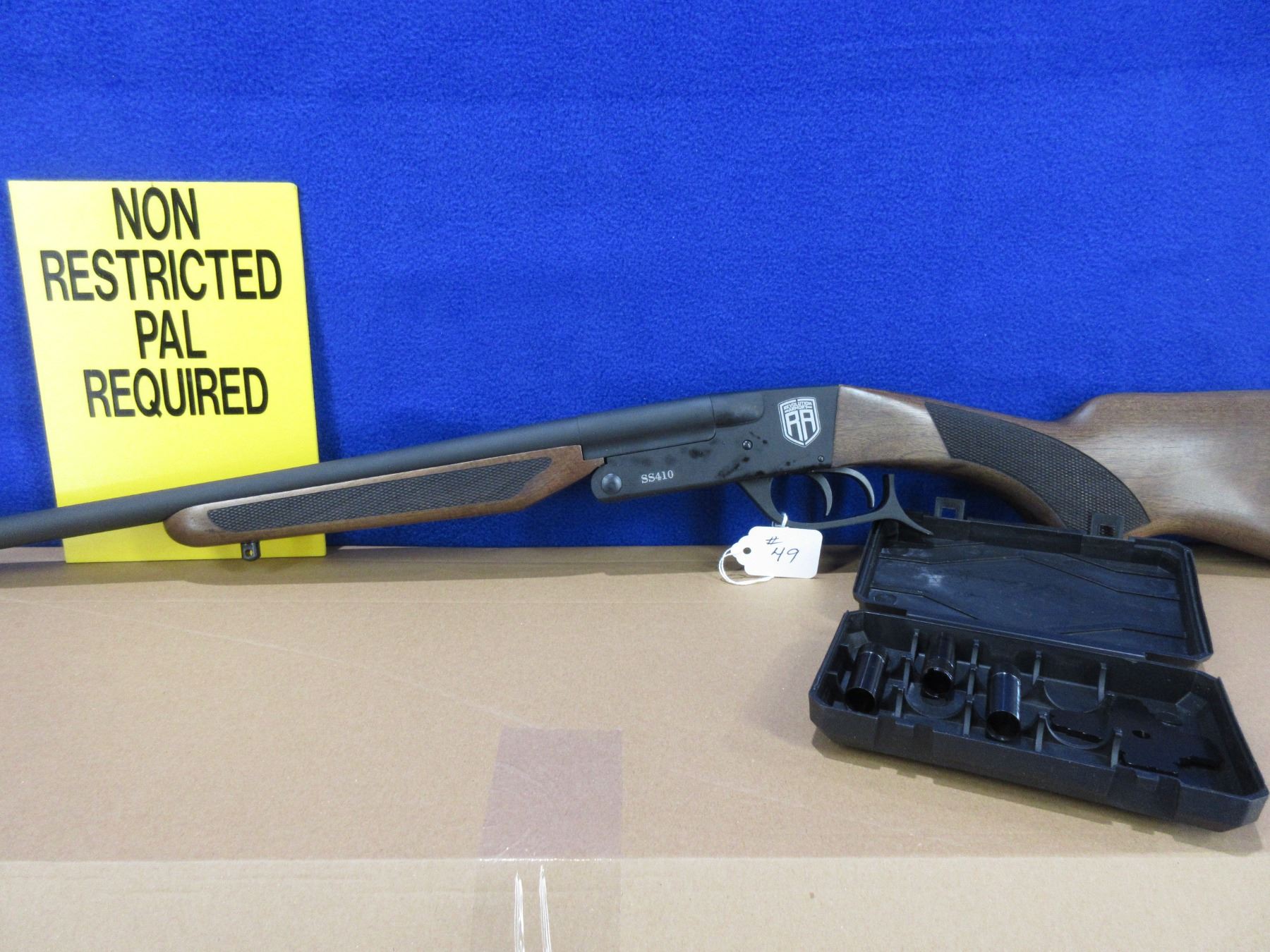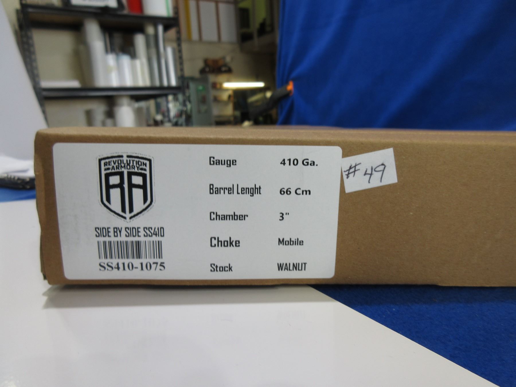 Non-Restricted - NEW Revolution Armory SS410 in 410 3" - This new side by side tip barrel shotgun comes with 26" barrels, front bead sight and 3 extra chokes, Ser # SS410-1075