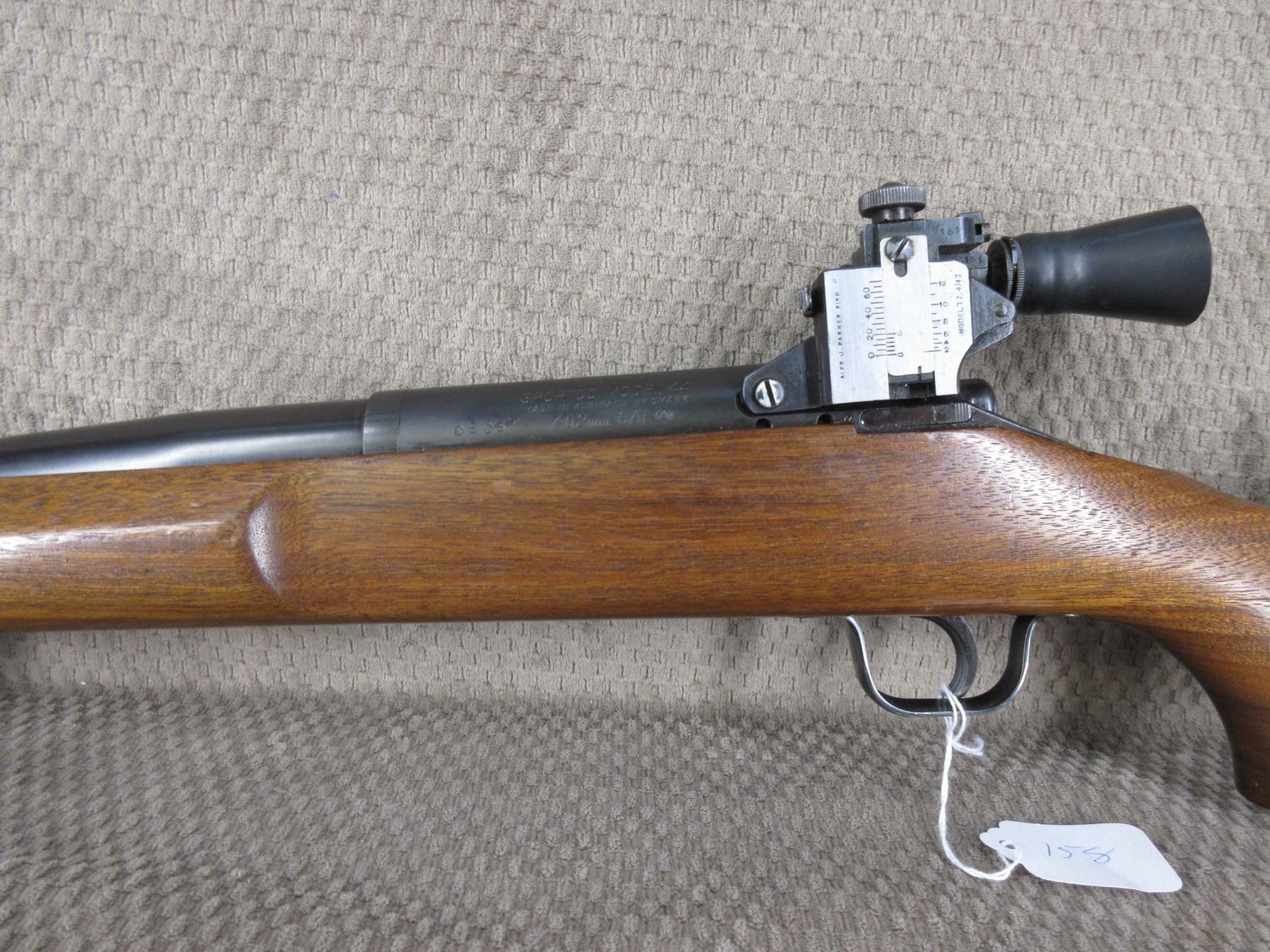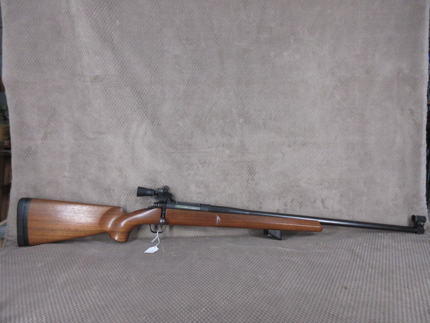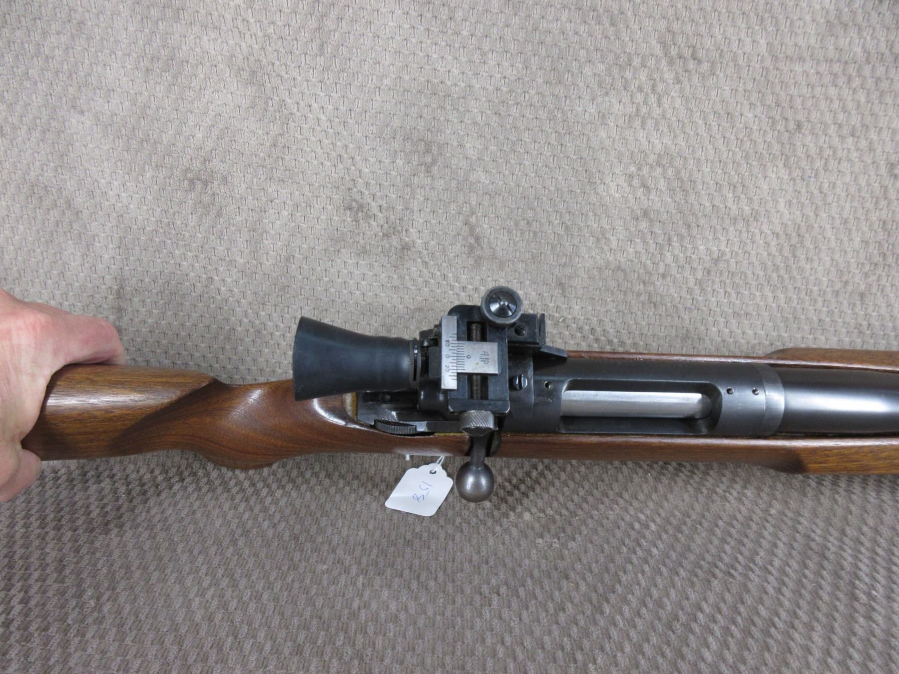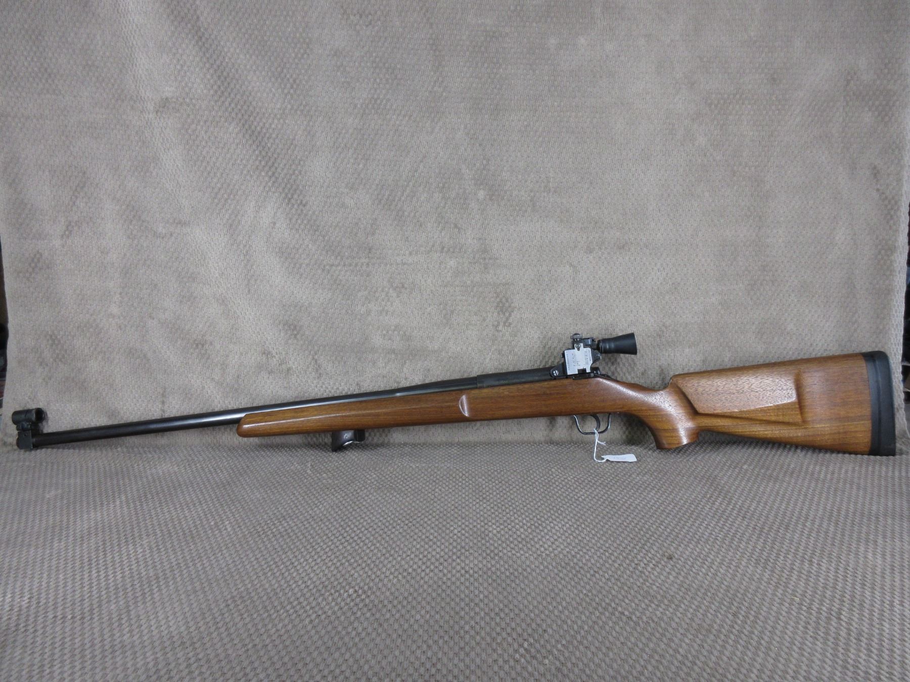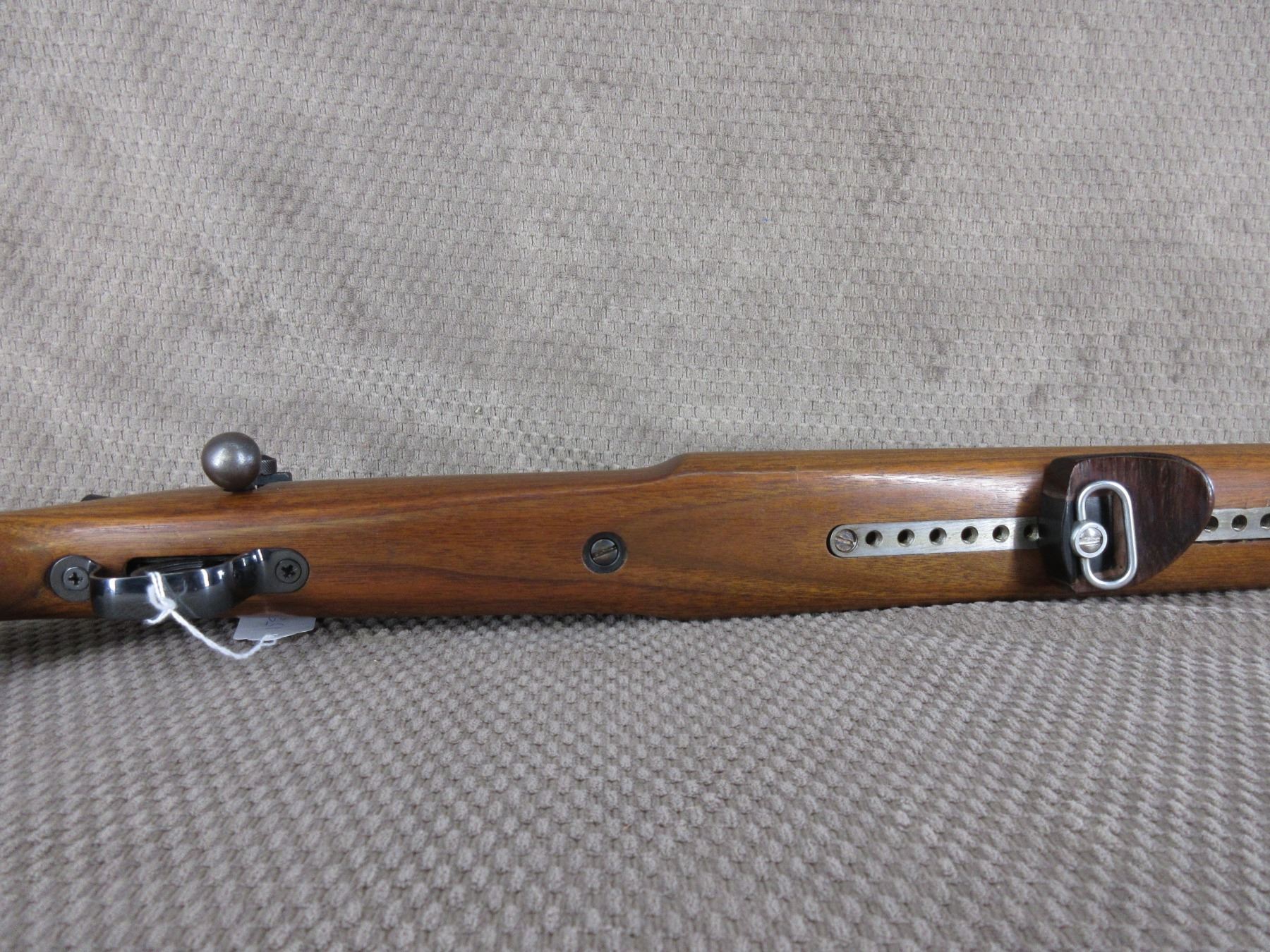 Non-Restricted - Omark Sportco Model 44 in 308 Win. - This single shot, bolt action, target rifle appears to be in very good working order. Barrel is 26", rifling is good to very good, bluing is very good, has peep sights and appears to be drilled for scope bases, stock is very good, recoil pad very good.