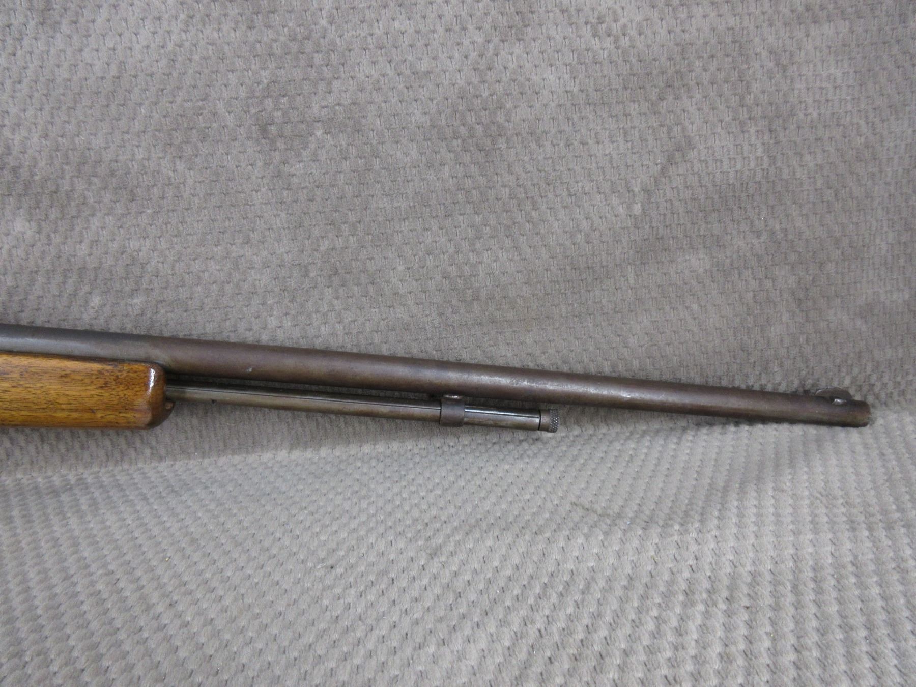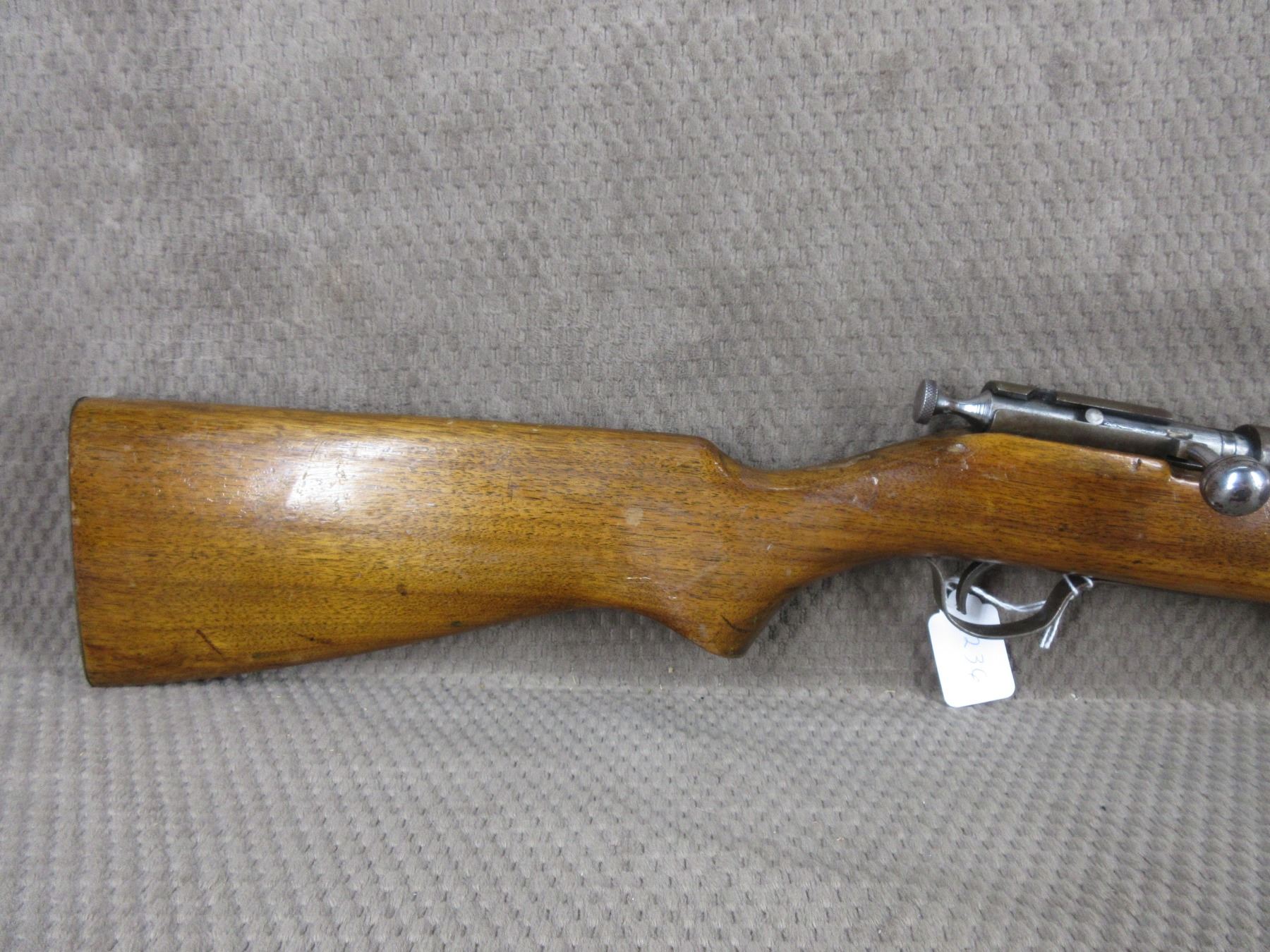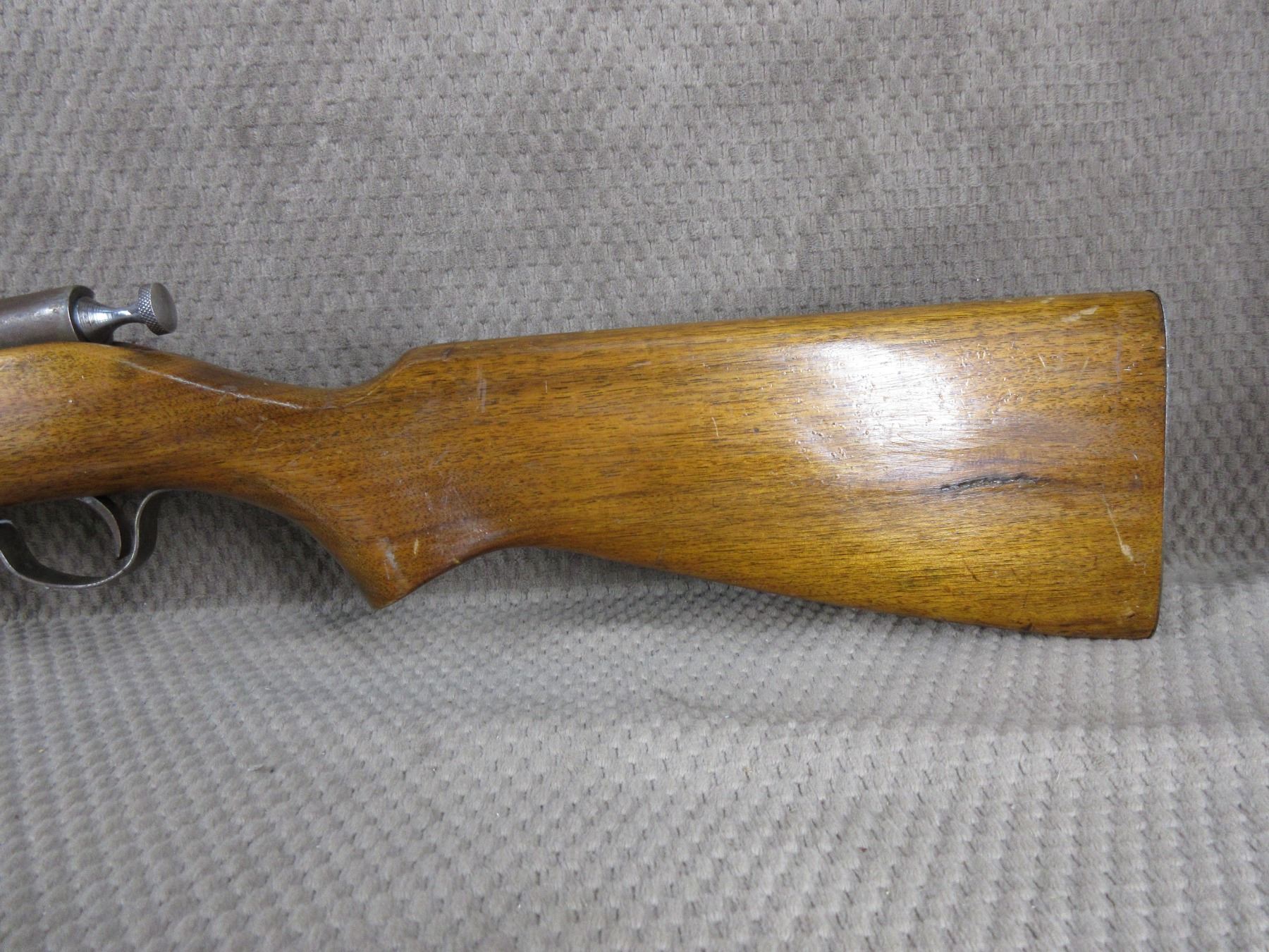 Non-Restricted - Ranger (Cooey Model 60) in 22 Long Rifle - This bolt action tube magazine rifle appears to be in good working order. Barrel is 24", rifling is good to very good, bluing mostly gone with pitting, has both sights, stock has been repaired in forearm areas and has usual usage marks, steel butt plate.