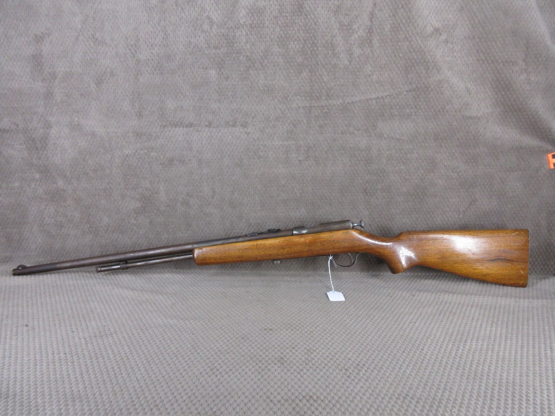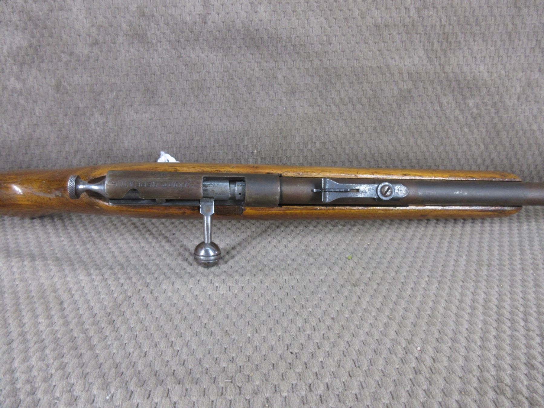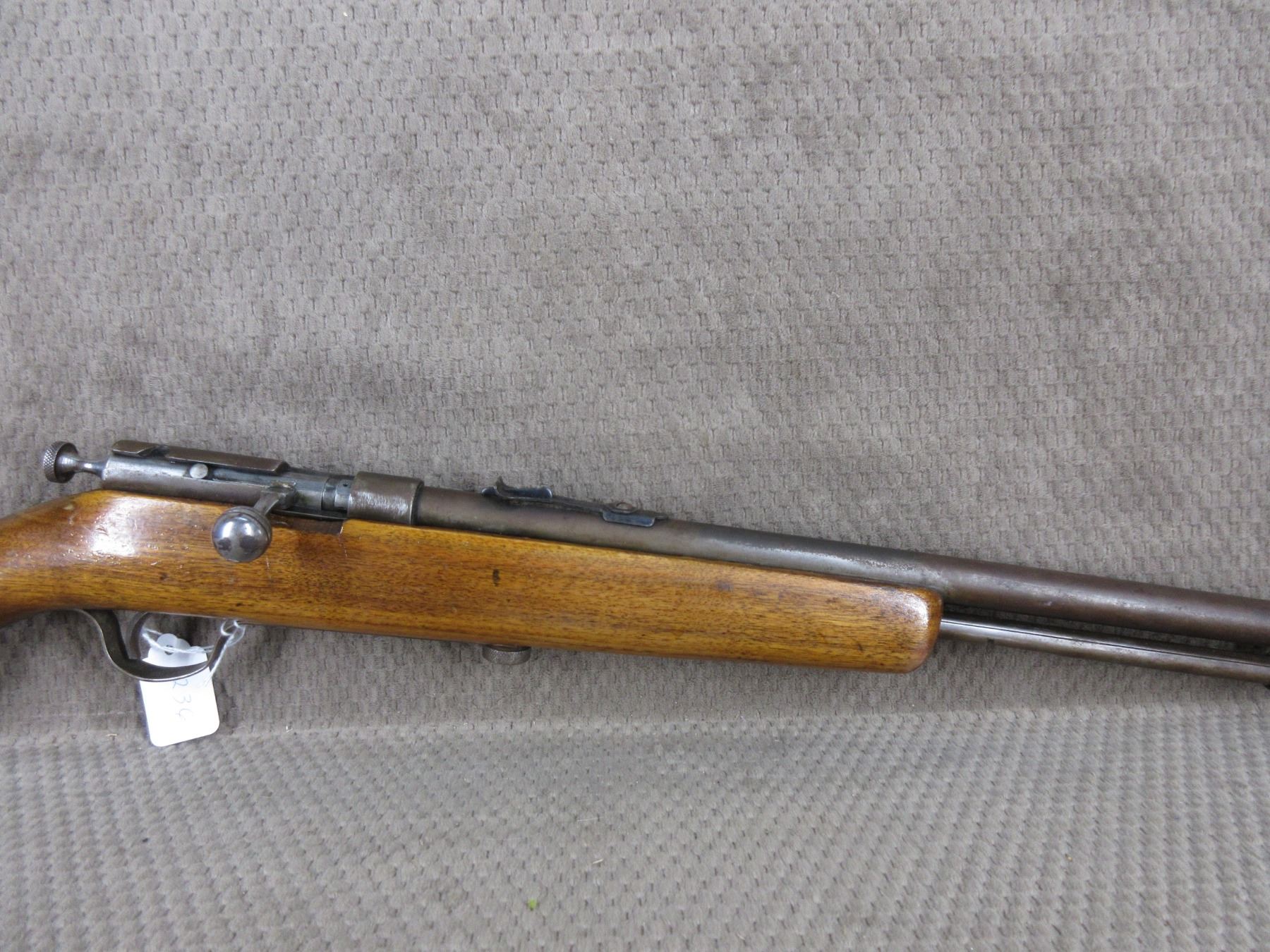 Non-Restricted - Ranger (Cooey Model 60) in 22 Long Rifle - This bolt action tube magazine rifle appears to be in good working order. Barrel is 24", rifling is good to very good, bluing mostly gone with pitting, has both sights, stock has been repaired in forearm areas and has usual usage marks, steel butt plate.
