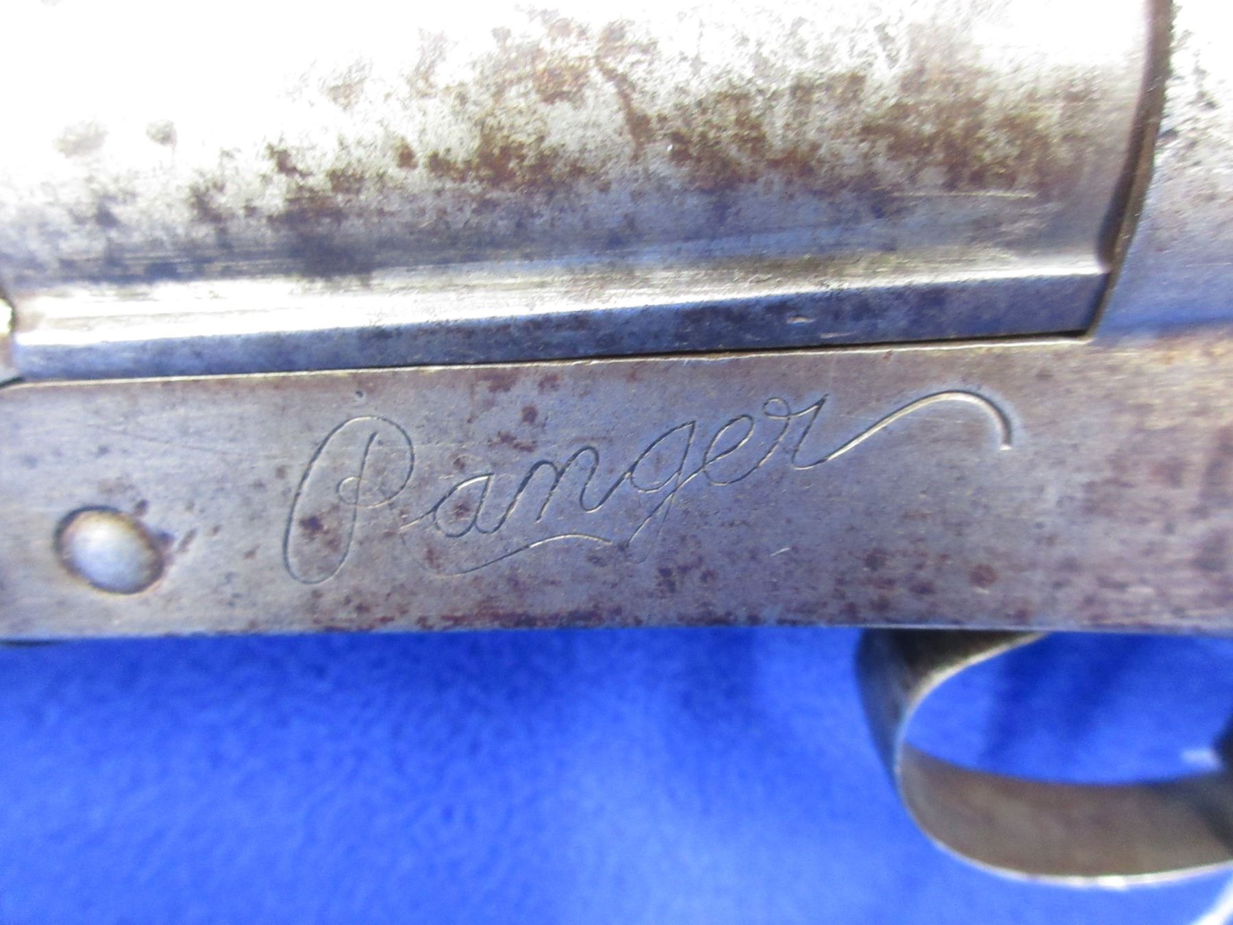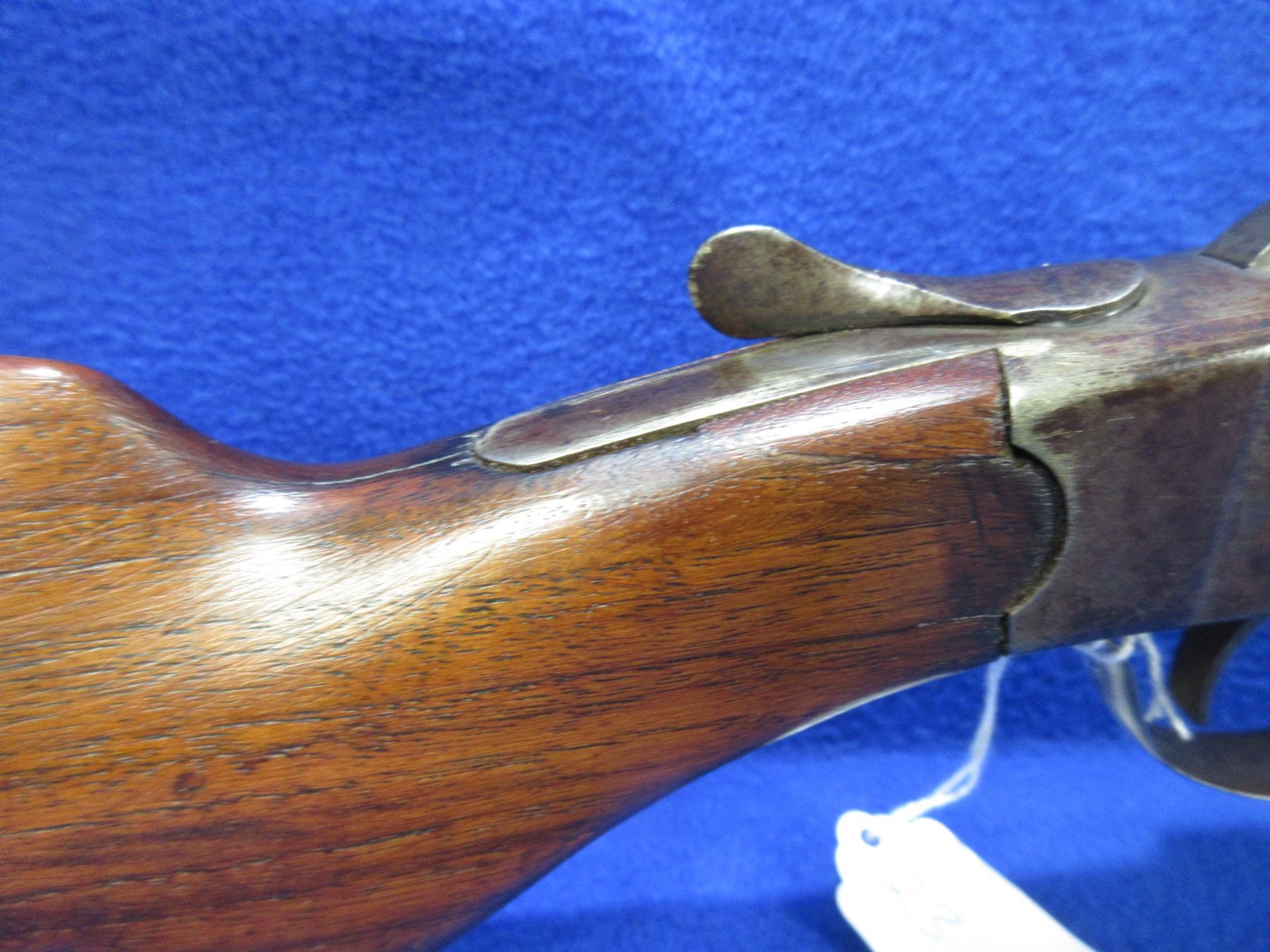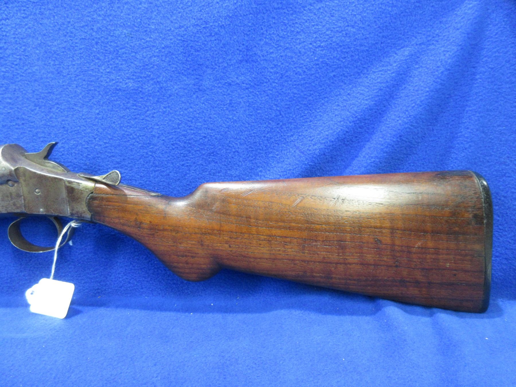 Non-Restricted - Ranger Single Shot in 12 Ga. - This tip up single shot shotgun appears to be in good working order. Barrel is 30", bore is shiny, bluing is gone, bead front sight is missing, stock has crack and chip repairs in wrist area and drying cracks, forearm has crack repair and many usage marks, butt plate good. Ser # 695FS