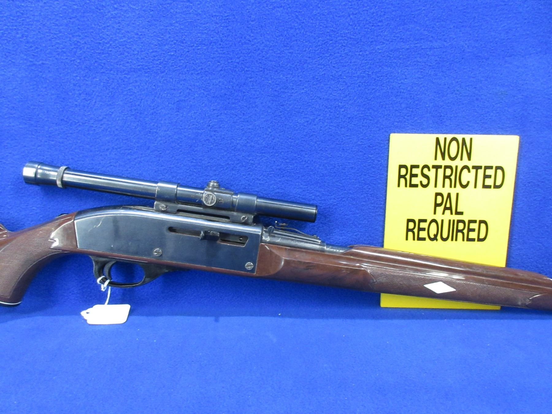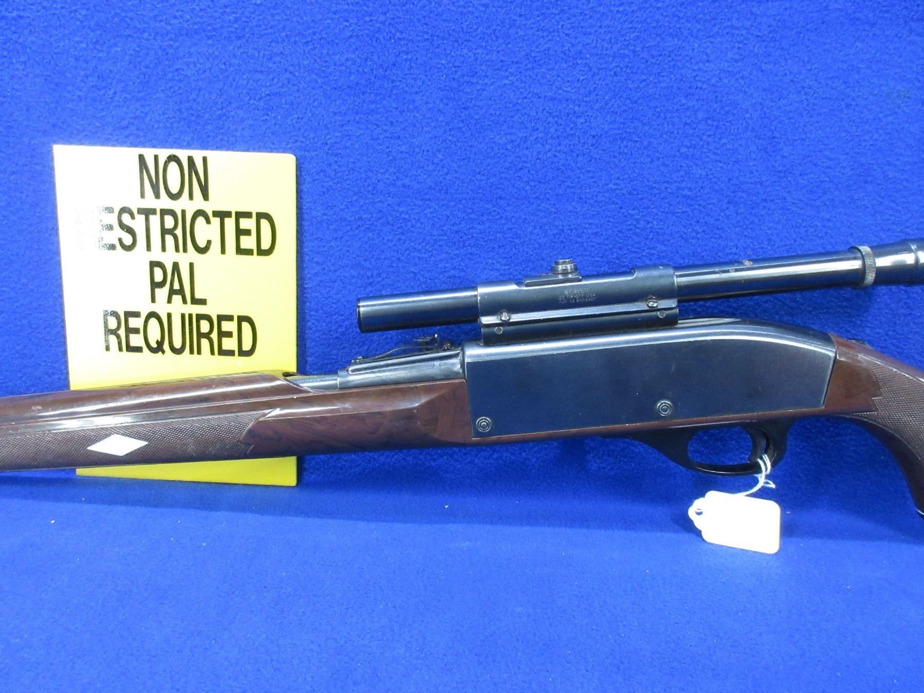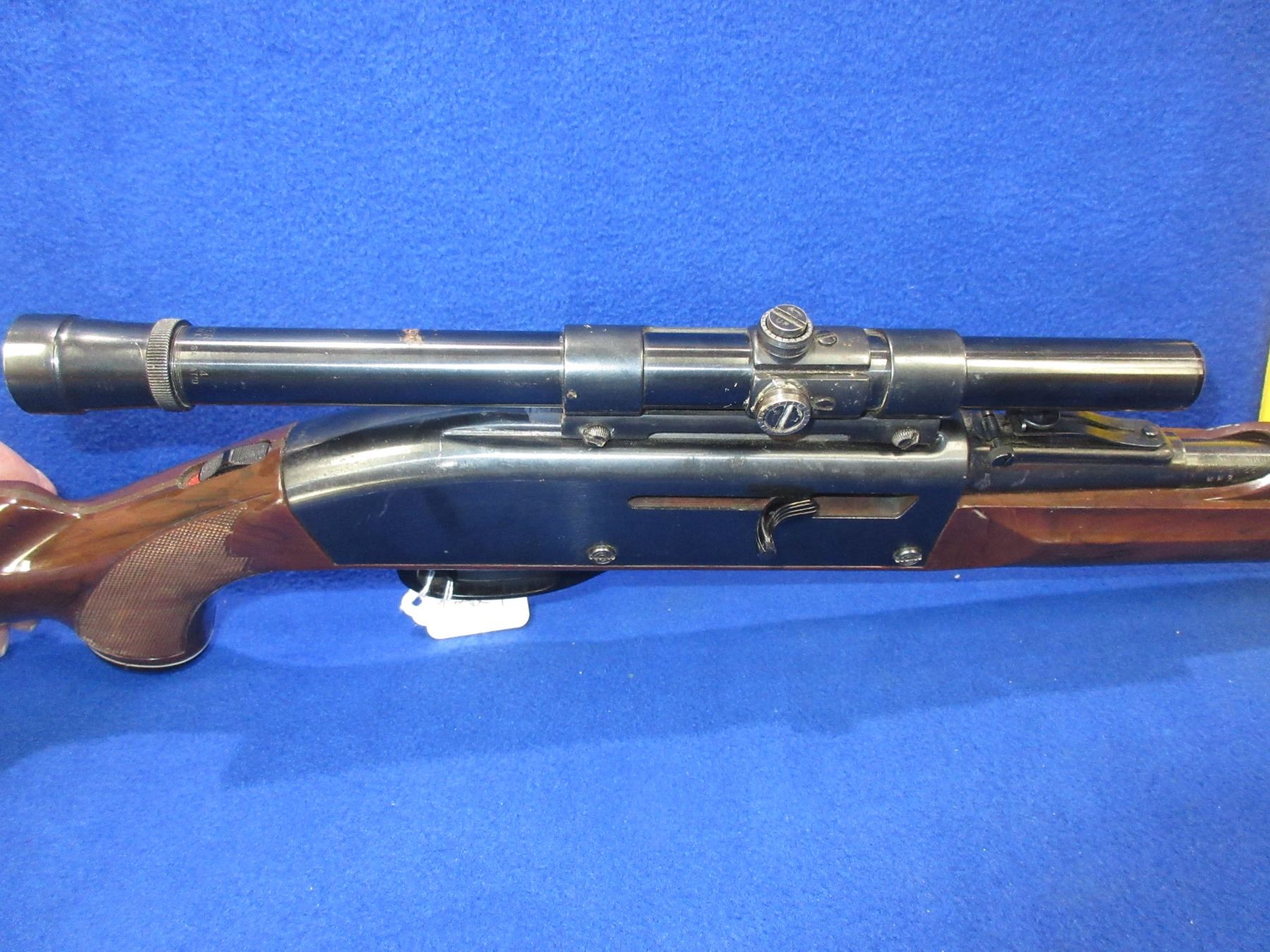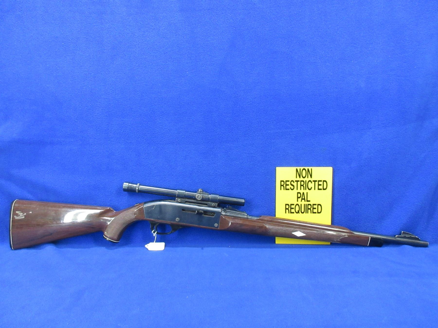 Non-Restricted - Remington Nylon 66 in 22 LR - This semi-auto rifle with magazine appears to be in good to very good working order. Barrel is 19.5", rifling is good to very good, bluing is good to very good, has both sights and a Weaver B4 scope with fine crosshairs and appears somewhat hazy, stock good, butt plate good. Ser # None