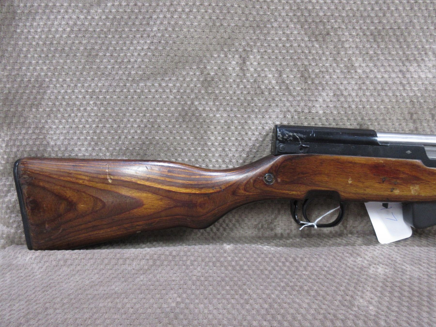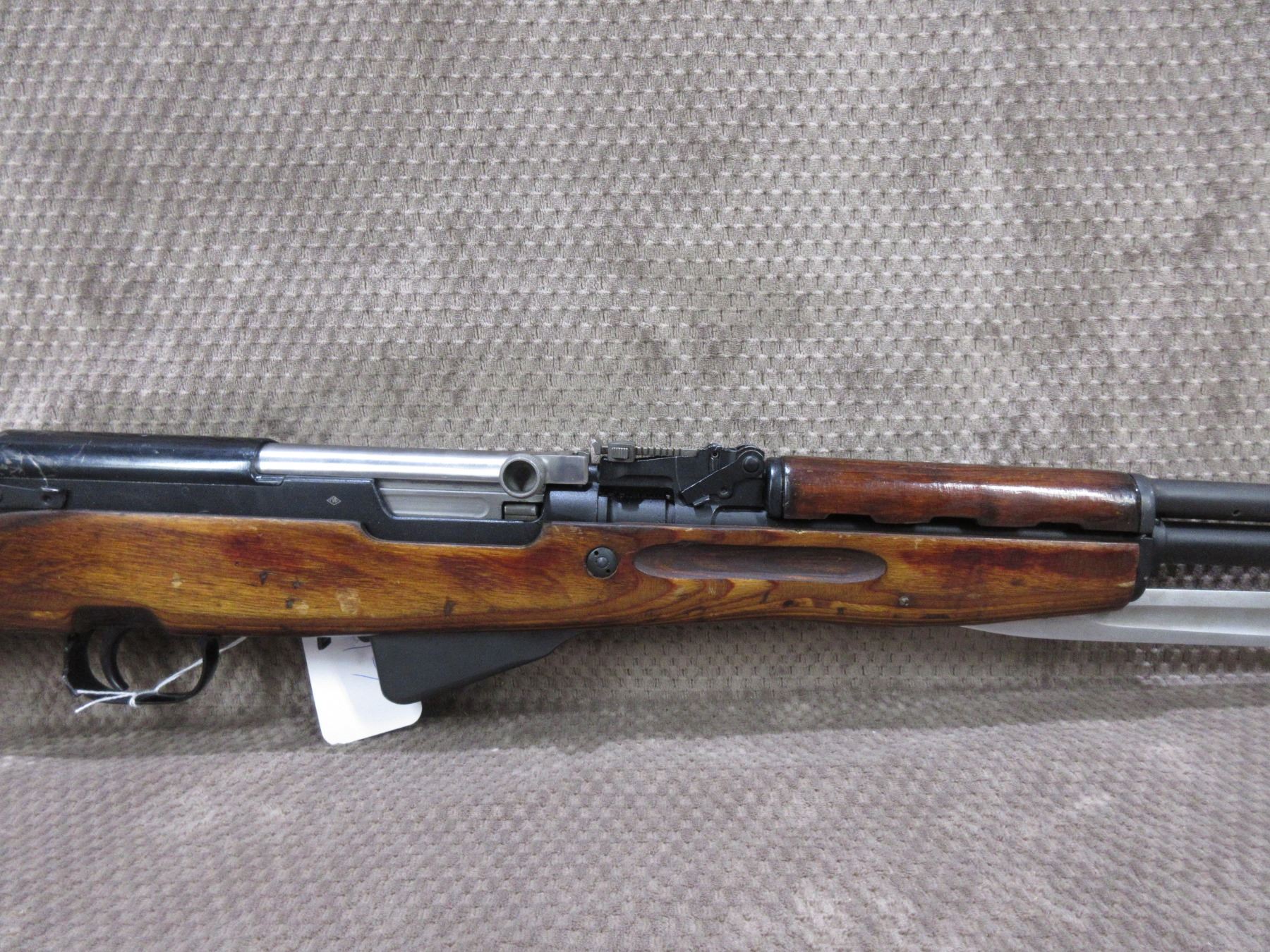 Non-Restricted - Russian SKS in 7.62 x 39 - This semi-auto rifle with magazine appears to be in good to very good working order. Barrel is 20", bluing is good, rifling is good to very good, has both sights, laminated stock good with usual marks, butt plate good, missing cleaning rod & kit, magazine is incorrect serial #, all others match, Ser # 2743