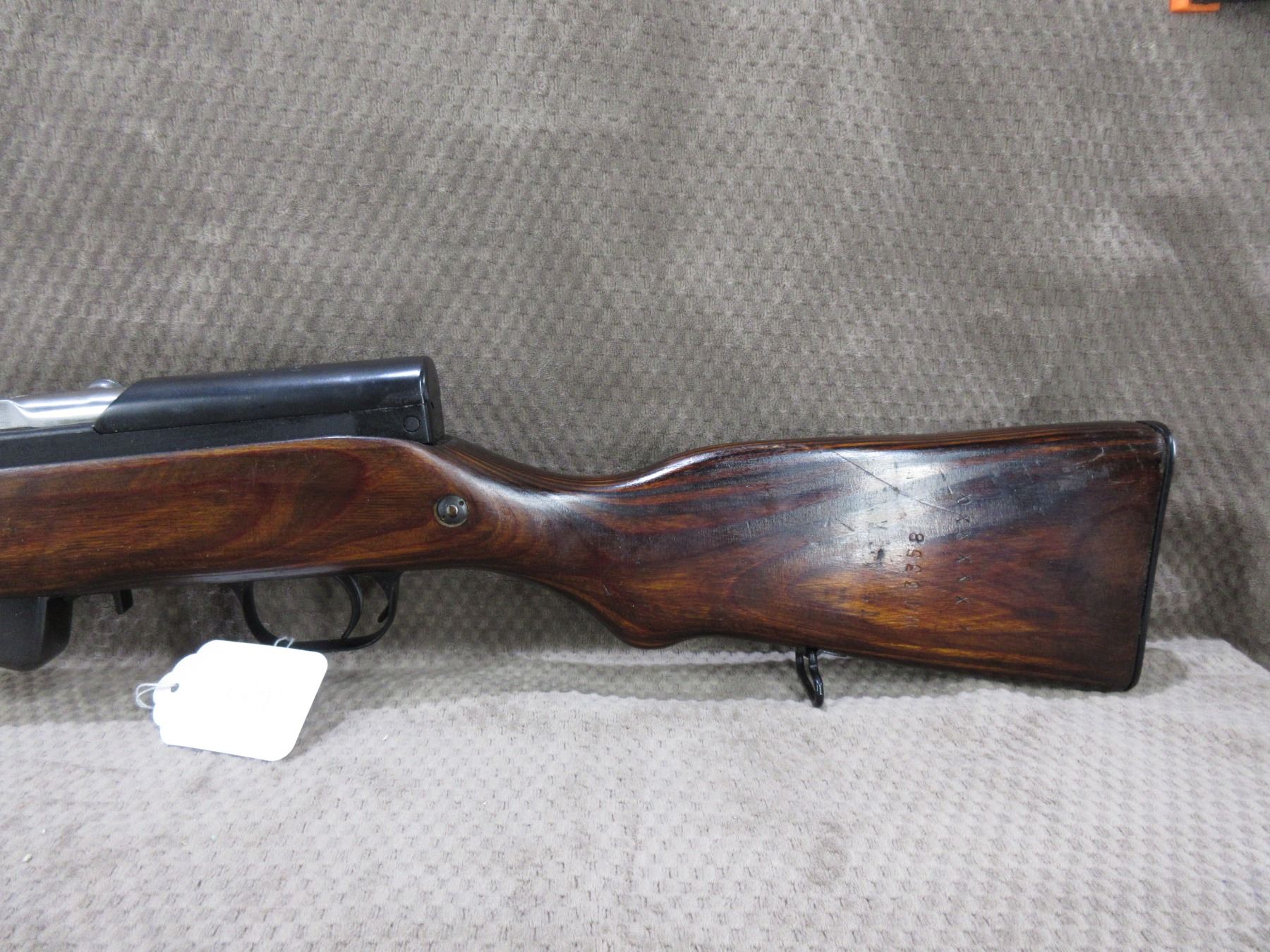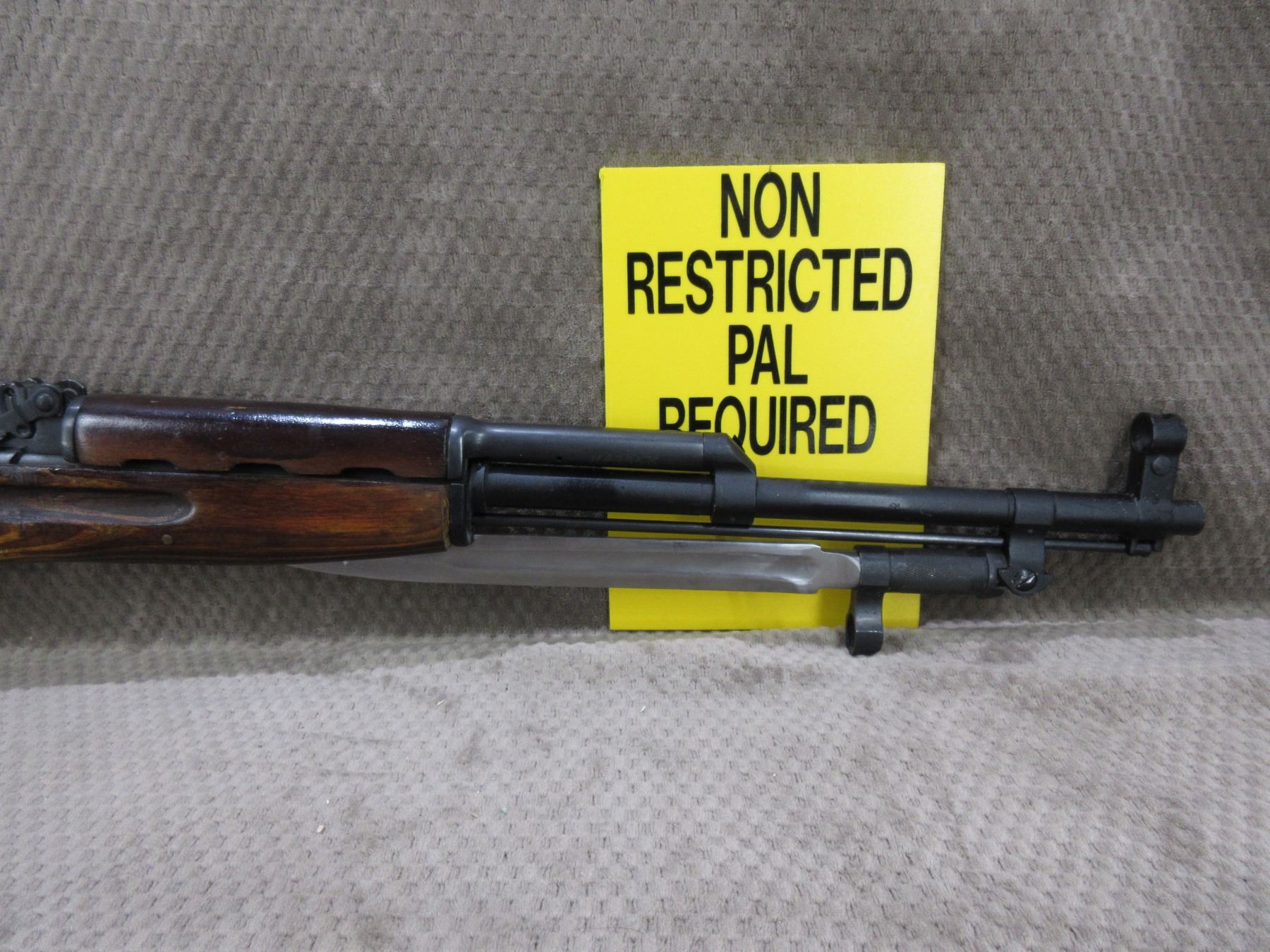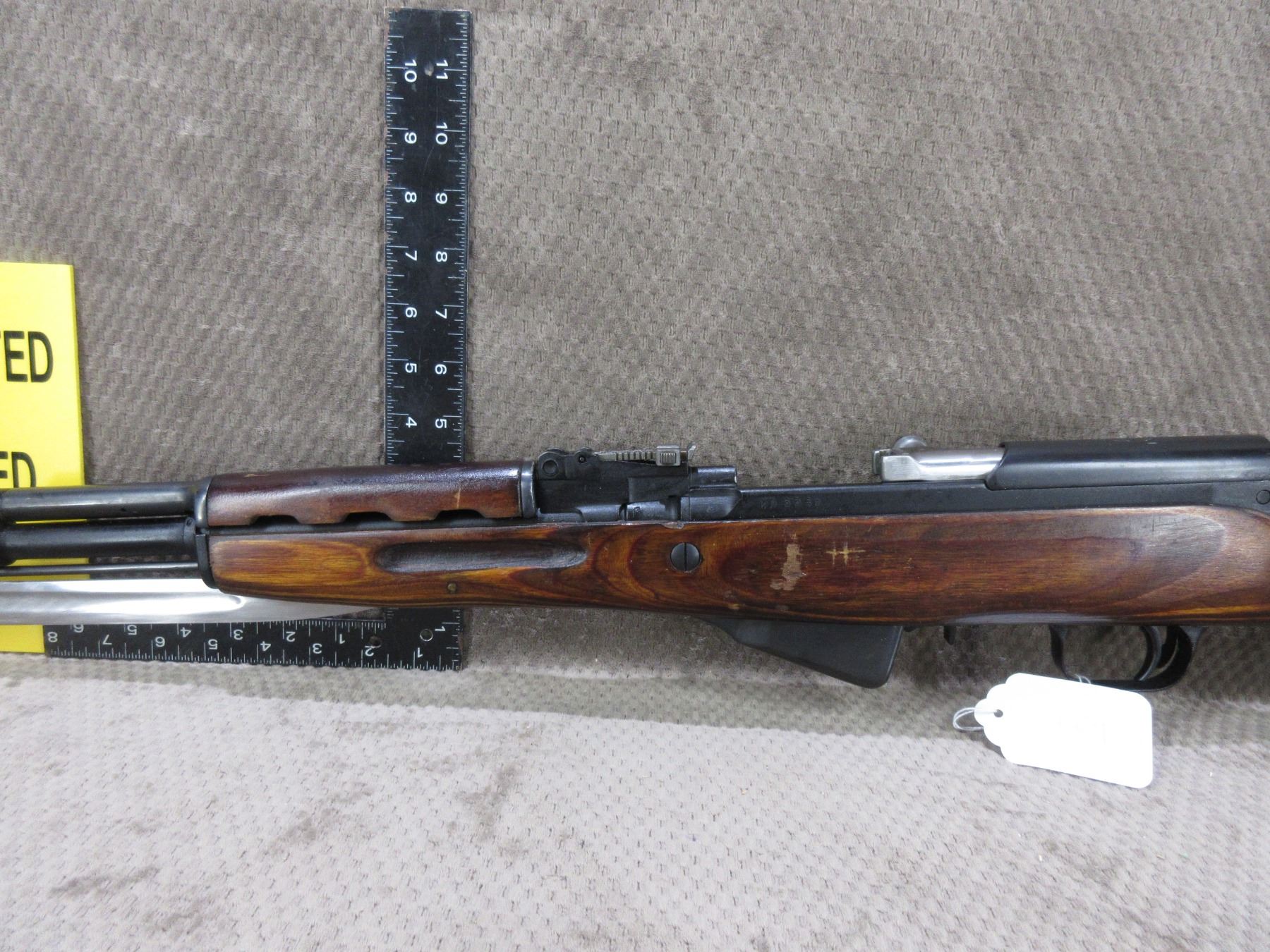 Non-Restricted - Russian SKS in 7.62 x 39 - This semi-auto rifle with magazine appears to be in good to very good working order. Barrel is 20 1/2", bluing is good to very good, rifling is good as it has wear and is somewhat dark, has both sights, stock good with usual marks, butt plate good, no cleaning kit in stock, magazine is incorrect serial #, all others match, Ser # 3358