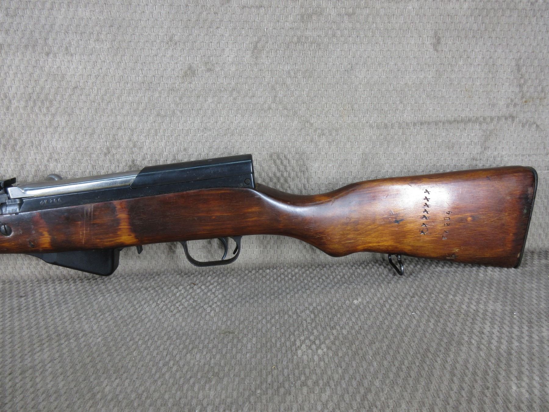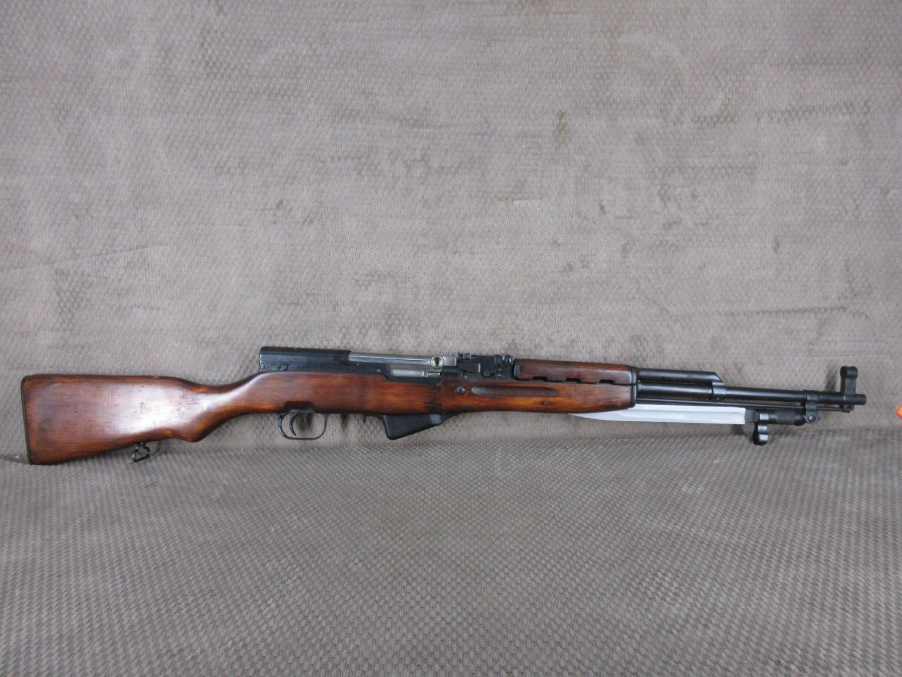 Non-Restricted Russian SKS in 7.62X39MM - This semi-auto rifle made in 1950 appears to be in good working condition, bluing very good, rifling is very good, wood good. Numbers match except for magazine. Missing the cleaning kit.