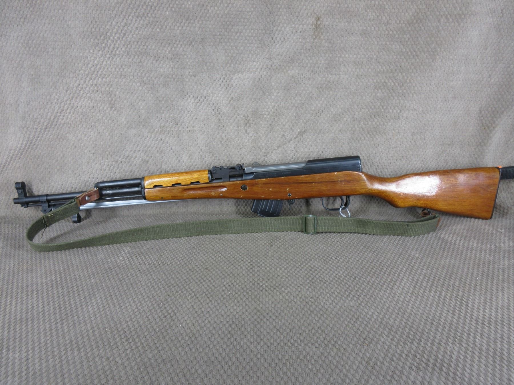 Non-Restricted - SKS in 7.62X39MM (D Pattern) Chinese - This version of the semi-auto SKS uses a removable metal magazine and appears to be in good working condition. Bluing is good, rifling is very good, wood good with usage marks and is complete with bayonet, sling, cleaning rod and cleaning kit in the stock.