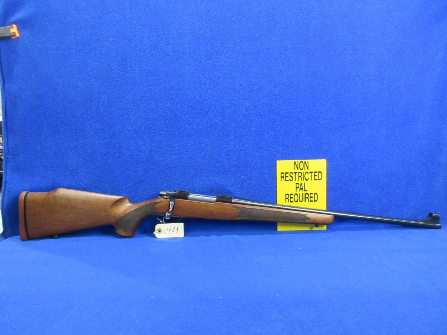 Non-Restricted - Sako Model AII in 243 Win. - This is a bolt action rifle with floor plate magazine, action appears to be in good to very good working order. Barrel is 22 1/2", rifling is good to very good, bluing is good to very good, has front sight, missing the rear sight but has integral Sako dovetails, stock is good to very good, length of pull is 13 3/4", rubber recoul pad good, comes with swivel studs. Ser # 360462