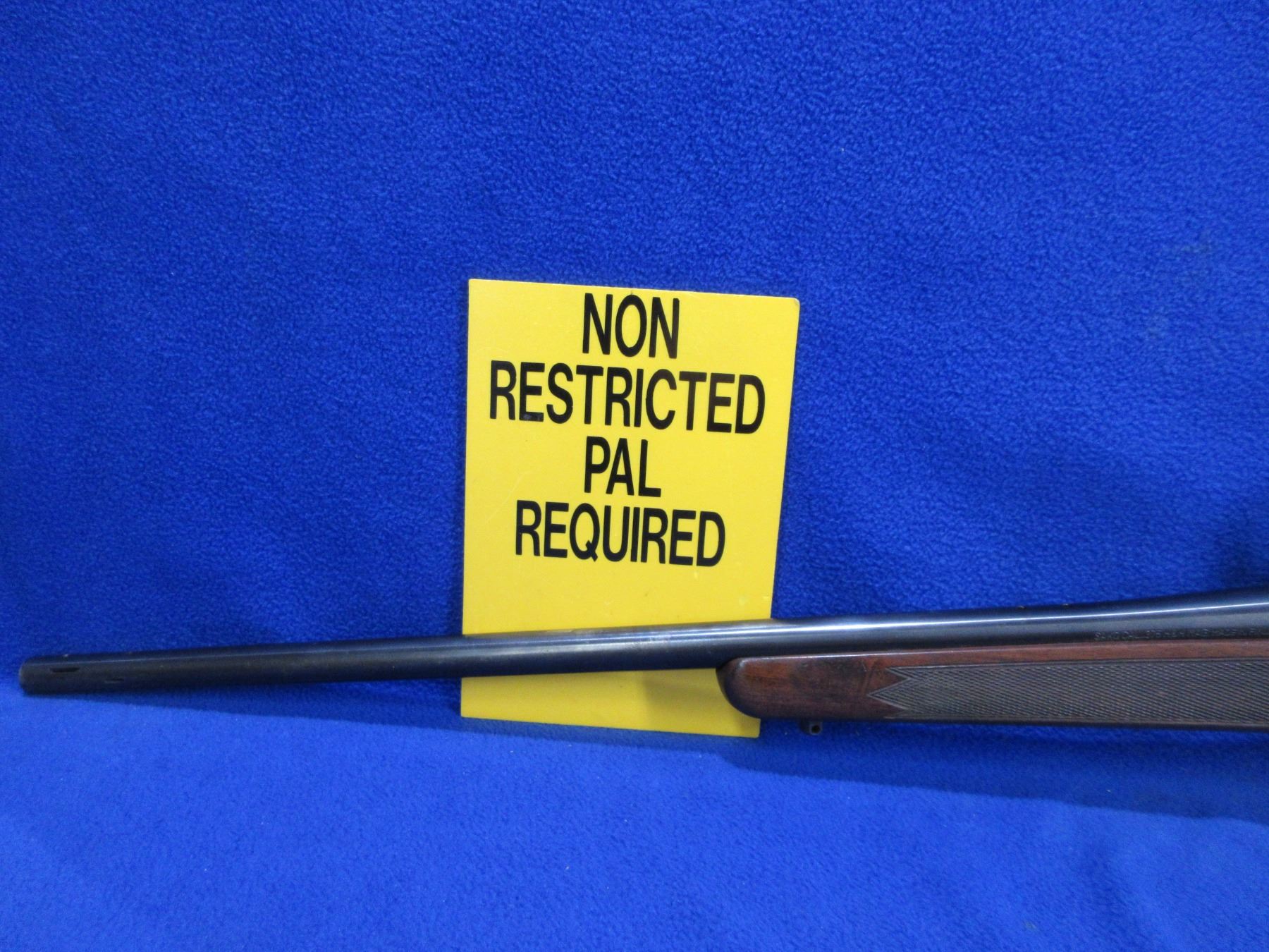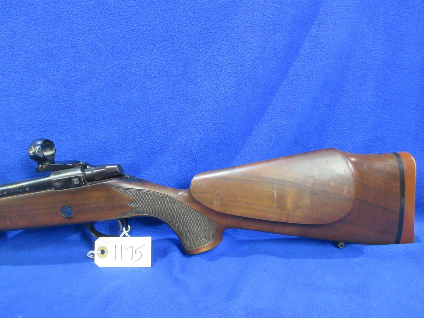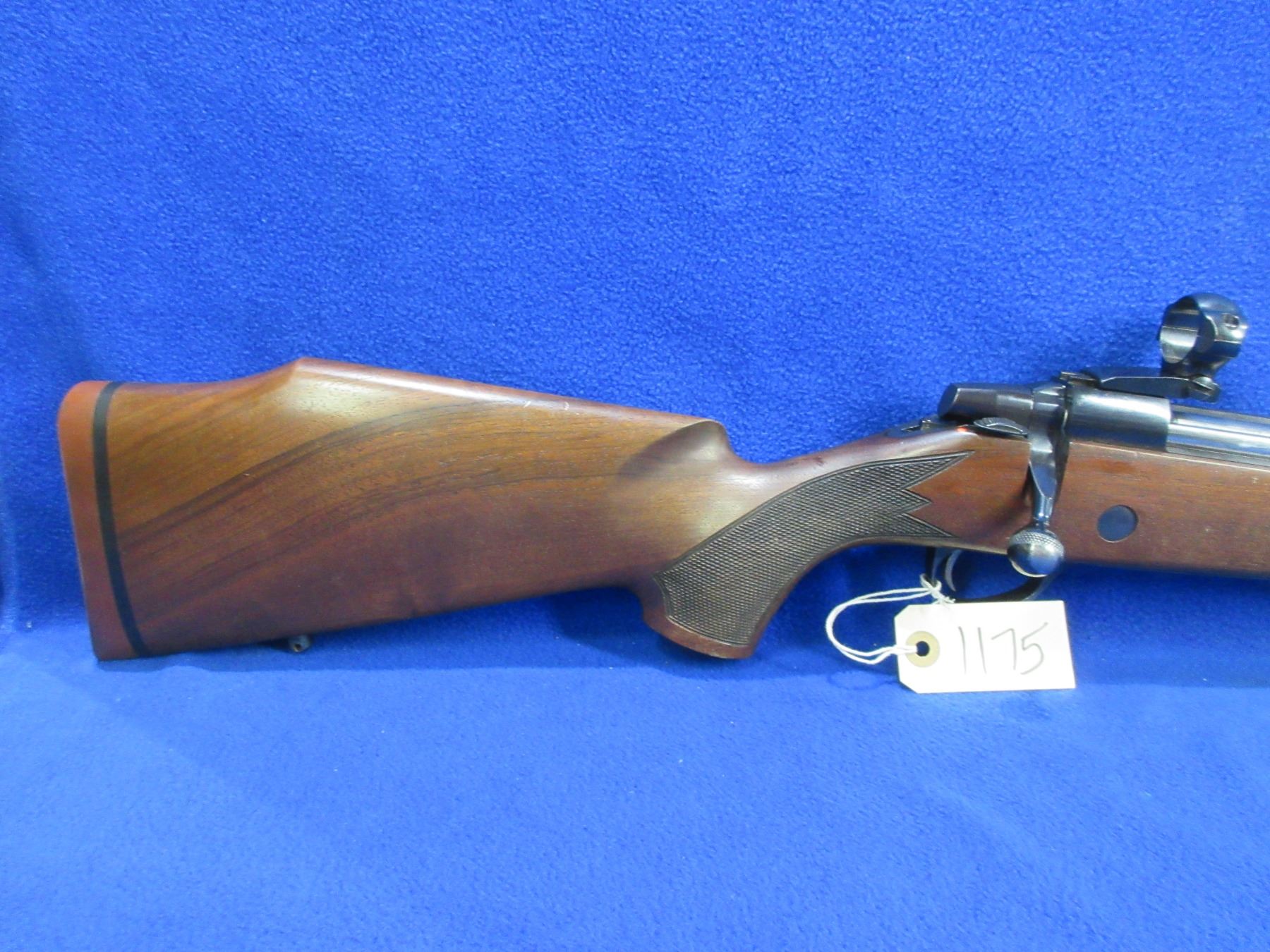 Non-Restricted - Sako Model AV in 375 H&H - This is a bolt action rifle with floorplate magazine, action appears to be in good to very good working order. Barrel is 23", rifling is good to very good, bluing is good with some light speckling, sights are missing but has Redfield 1" rings, stock is good to very good with usage marks, length of pull is 14", rubber recoil pad good, comes with swivel studs. Ser # 597957