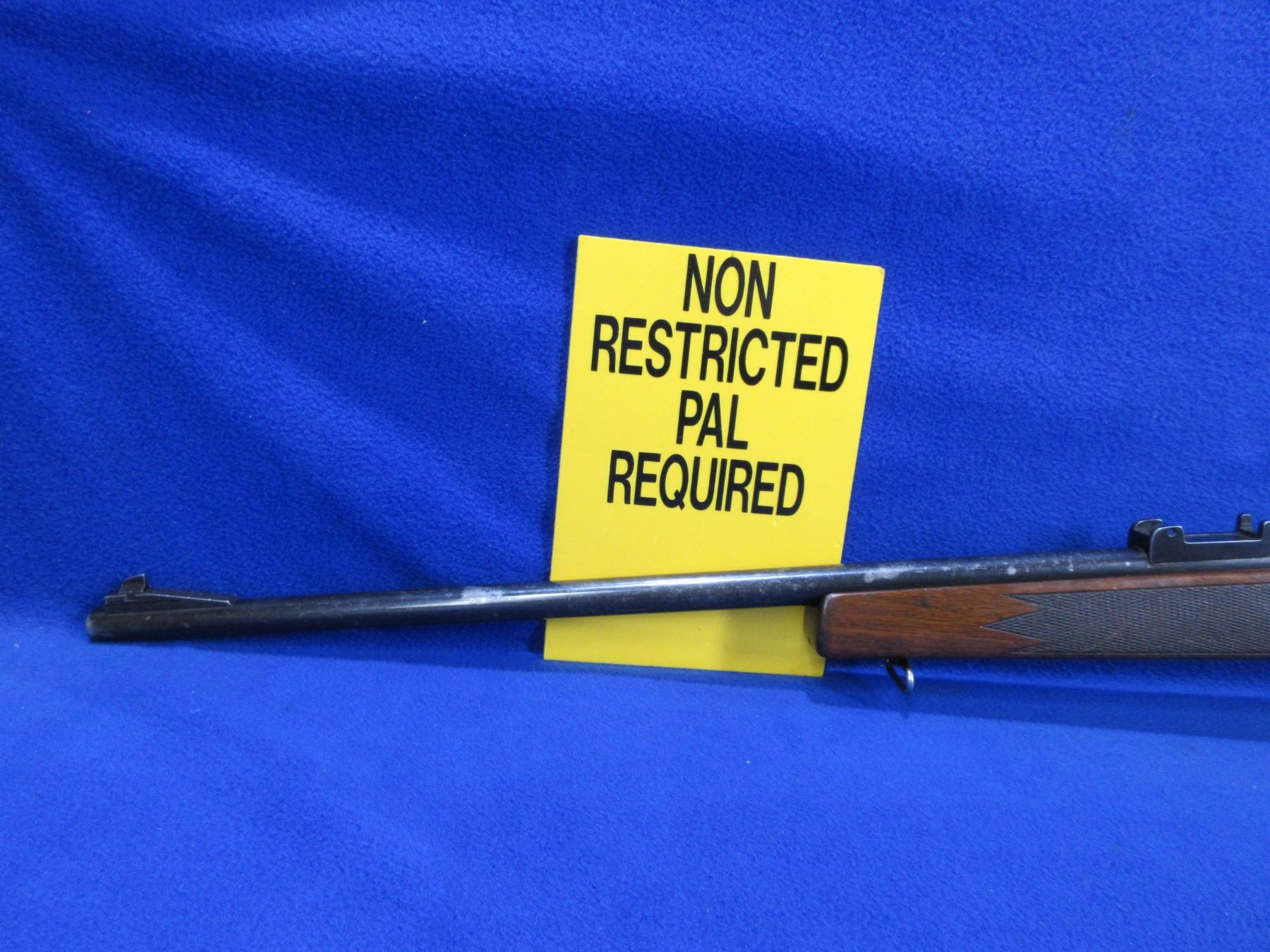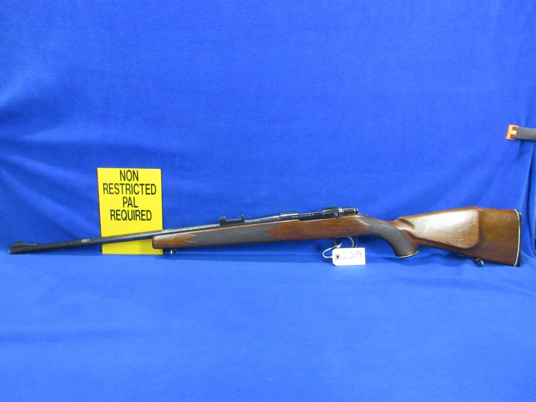 Non-Restricted - Sako Vixen Model L461 in 222 Rem - This bolt action rifle with floorplate magazine appears to be in good to very good working order. Barrel is 23 1/2", rifling is good, bluing is speckling, has front both sight missing rear sight and has integral rail, stock is good with many usage marks, butt plate good, comes with swivels, grip cap is chipped. Ser #106584
