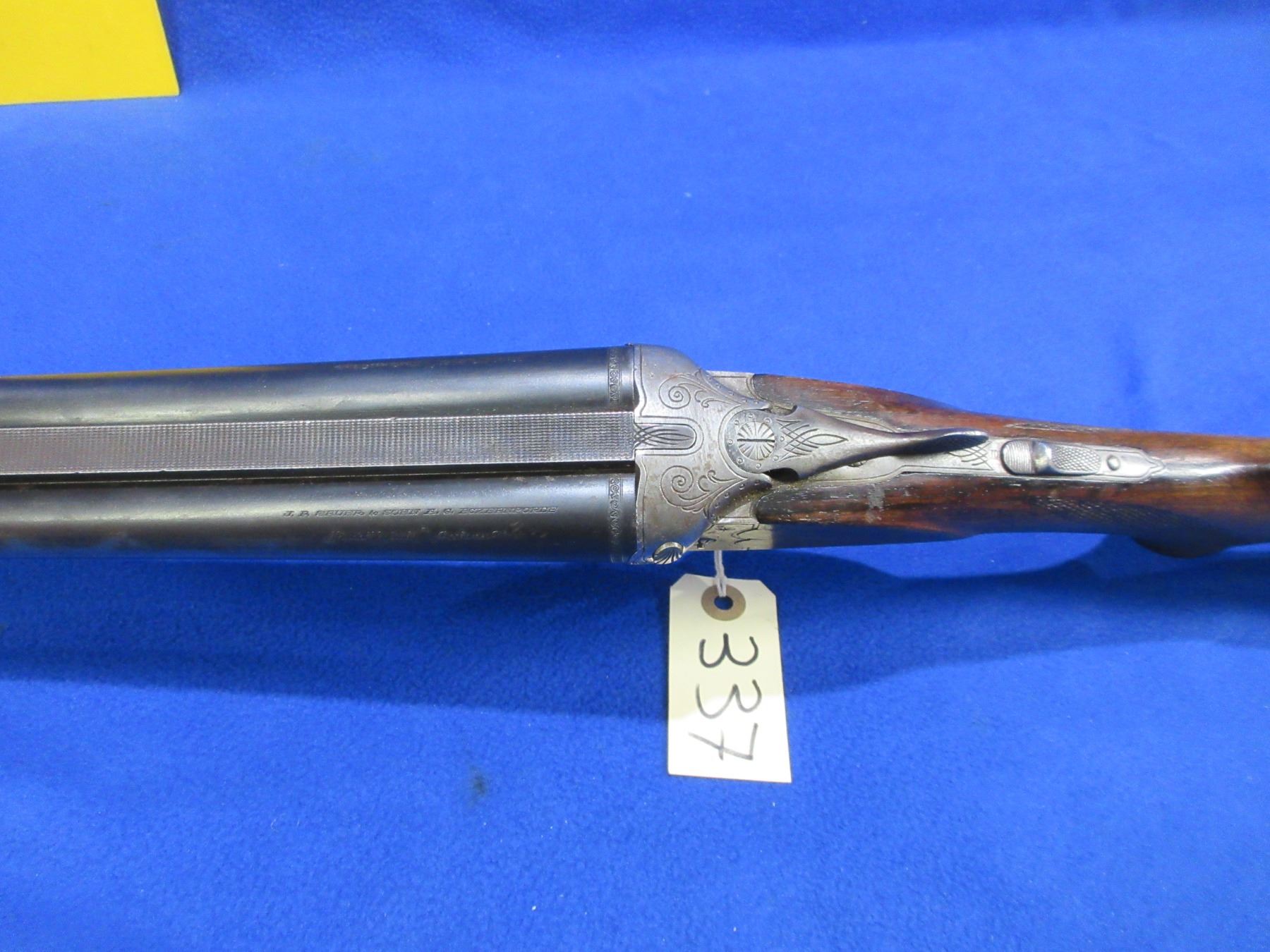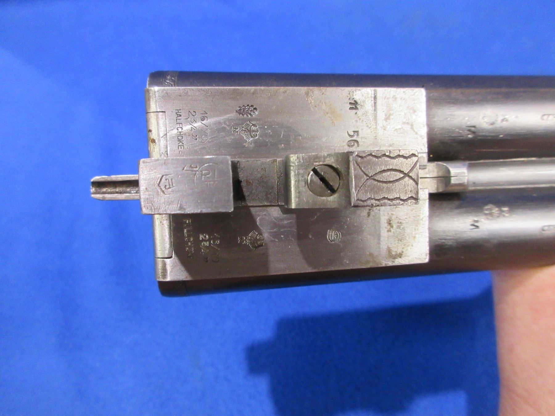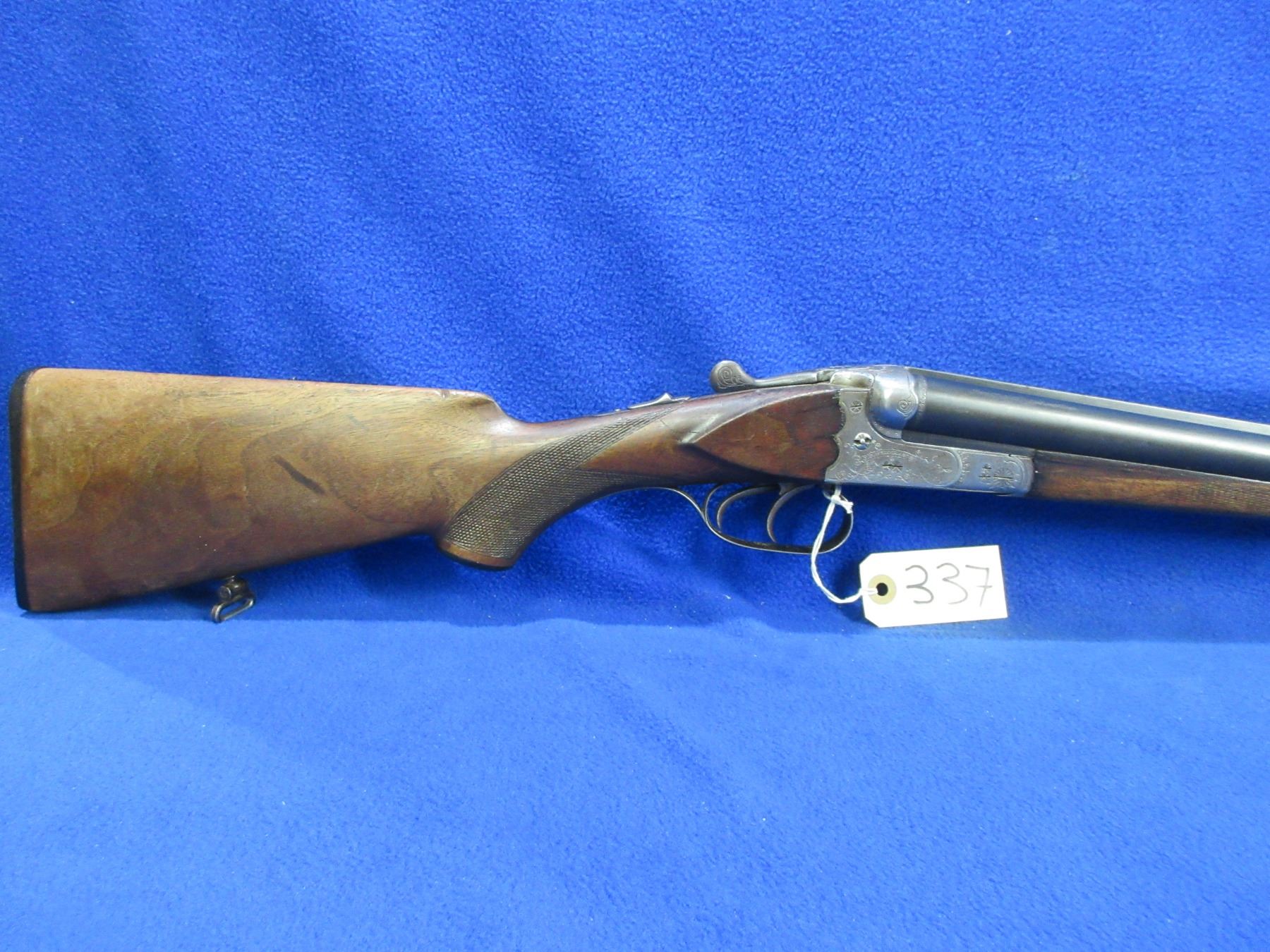Non-Restricted - Sauer & Sohn SXS in 16 Ga. 2 3/4" - This is a tip up SXS shotgun, action is tight and appears to be in good to very good working order. Barrels are 28", bores are good, bluing is good, has bead front sight, stock has a chip on the toe and has hairline cracks on both sides behind the action, forearm is good usage marks, length of pull is 13 3/4", butt plate has a chip on the toe, comes with swivels. Ser # 235023